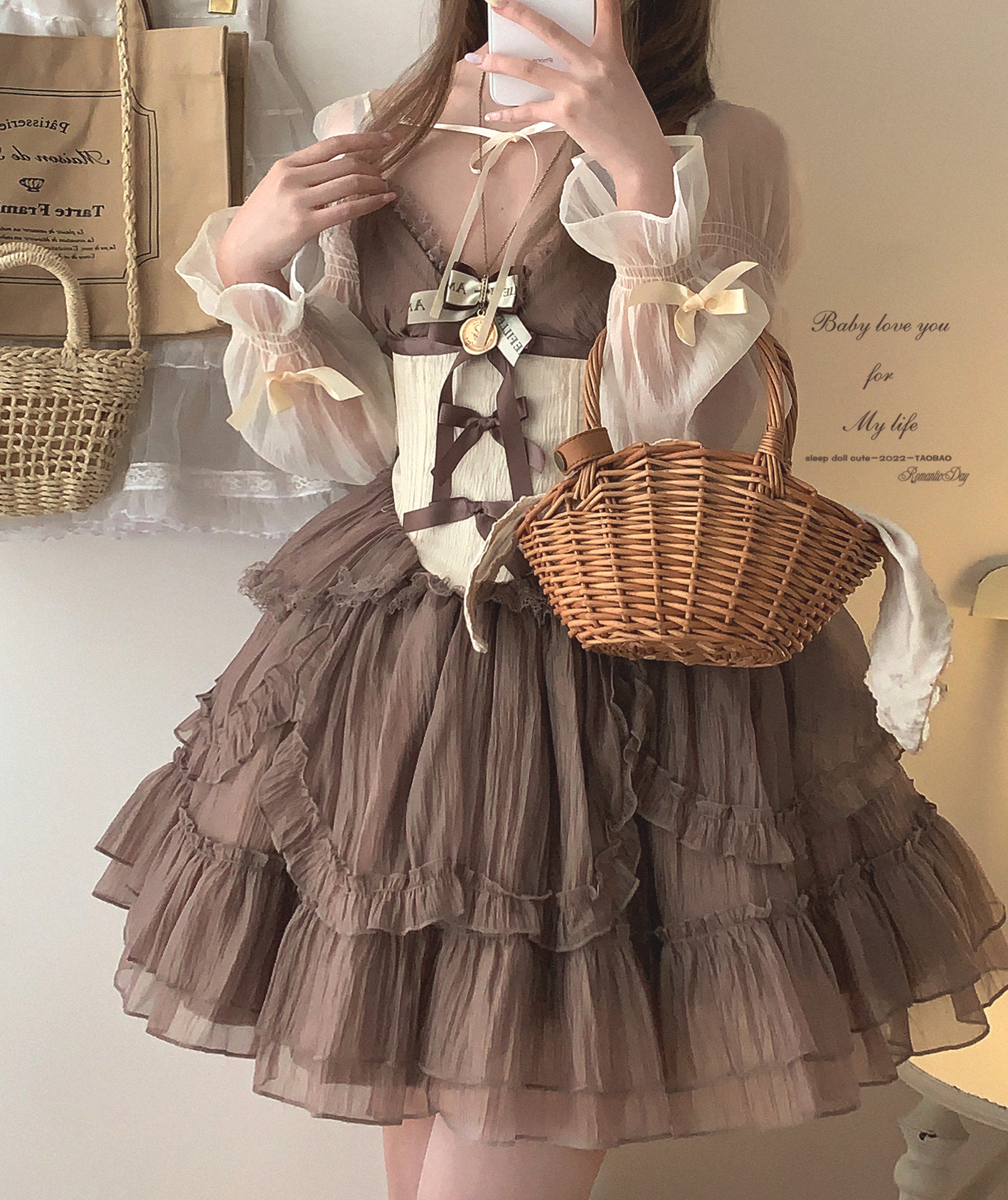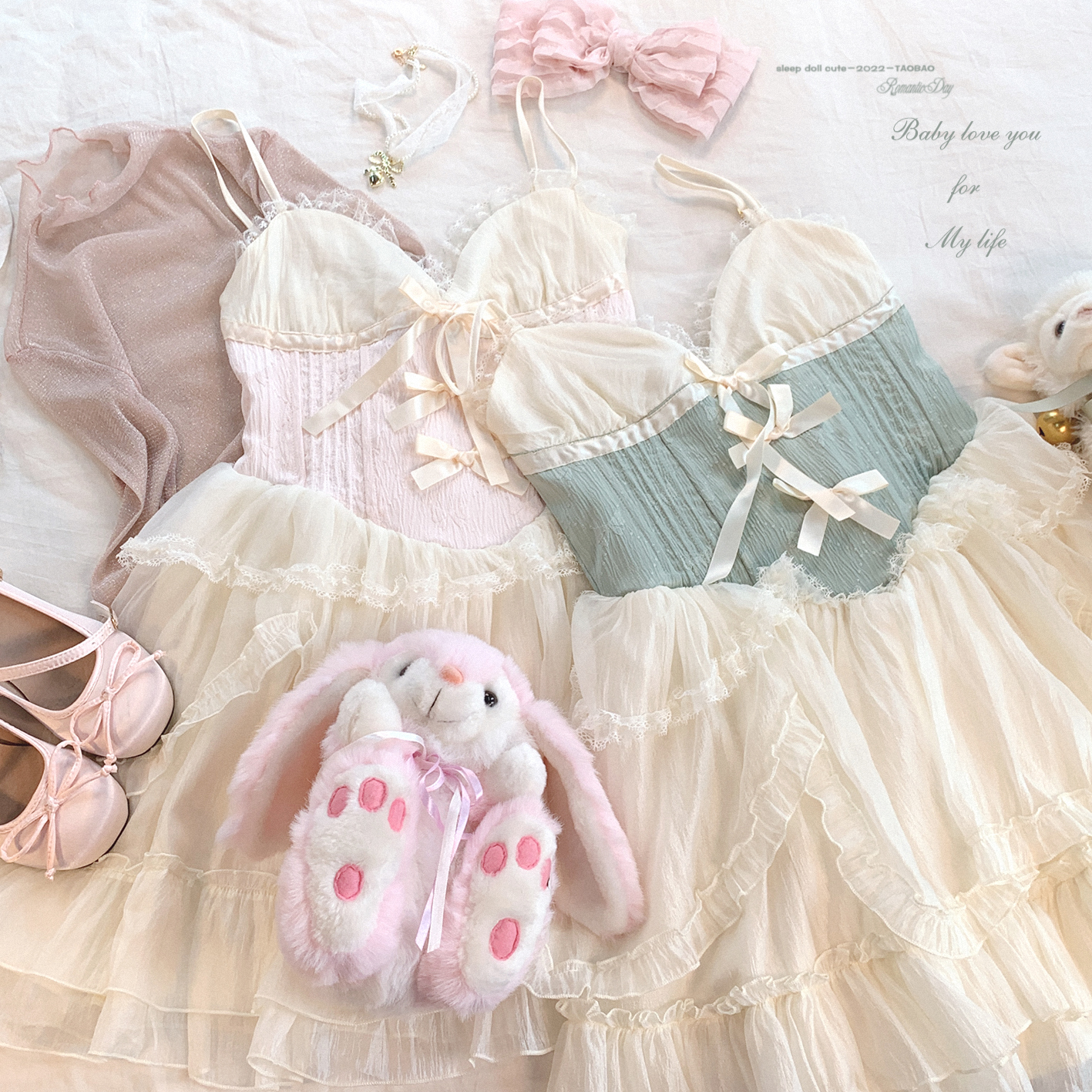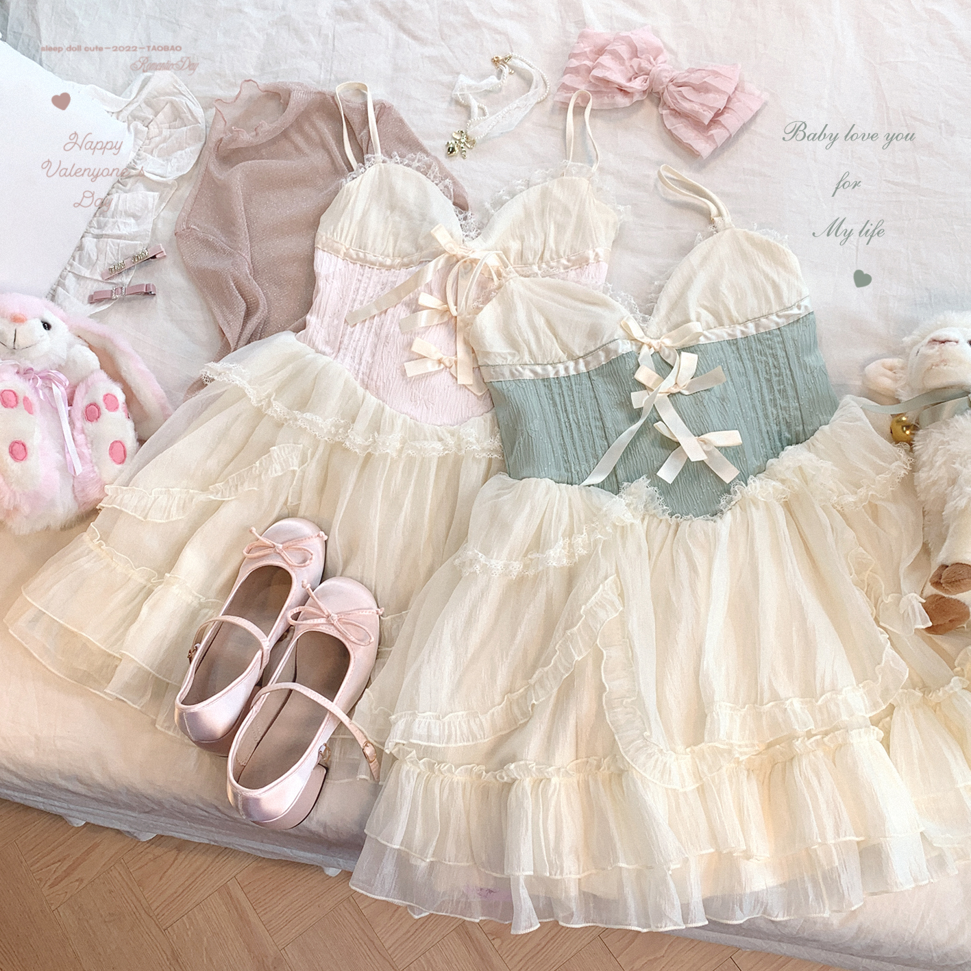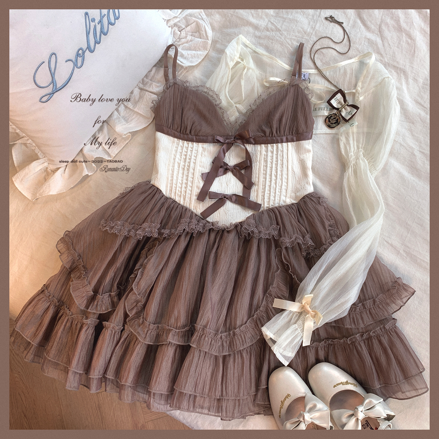 *sleepingdoll自制* 雲霧之姬 蝴蝶結提花復古吊帶蓬蓬洋裝