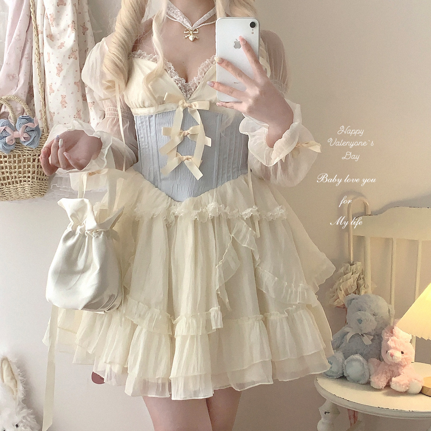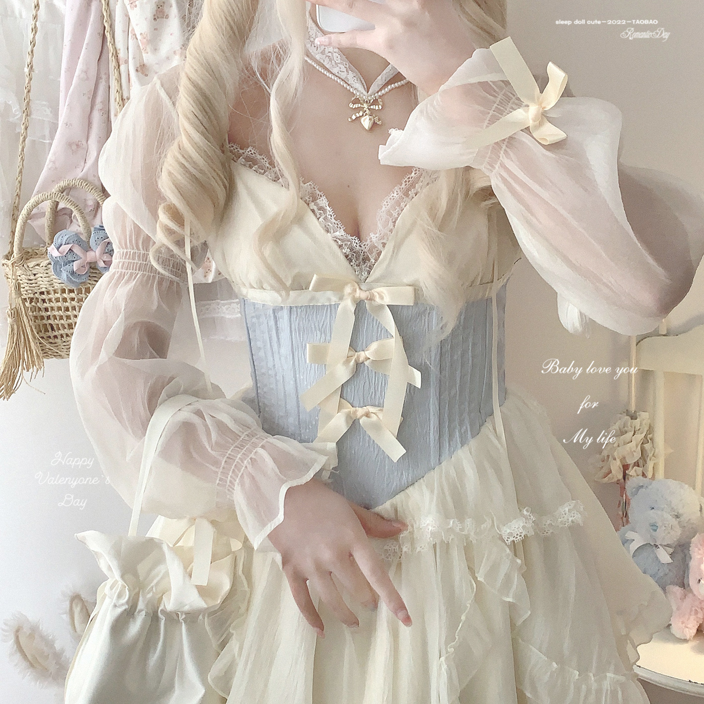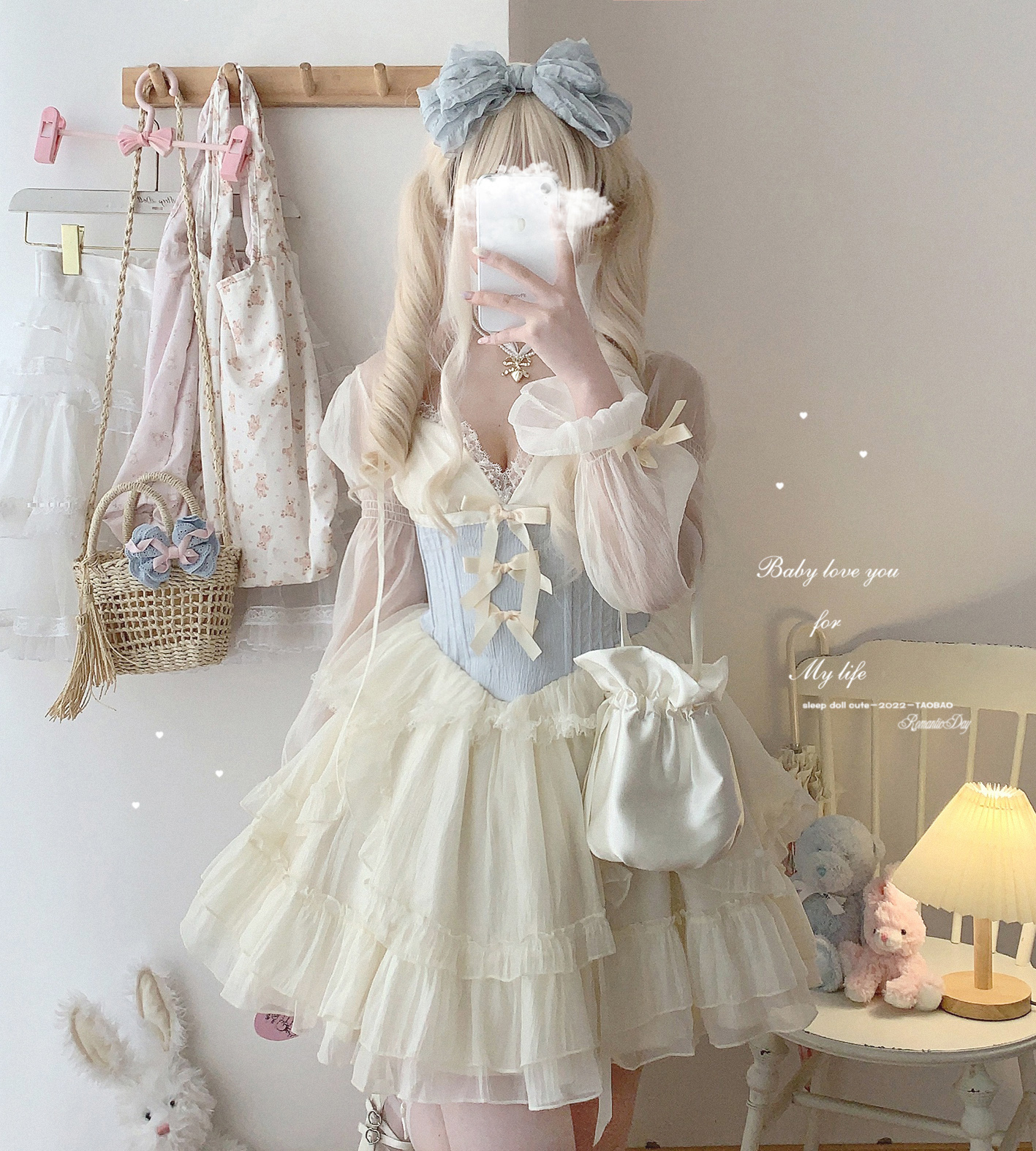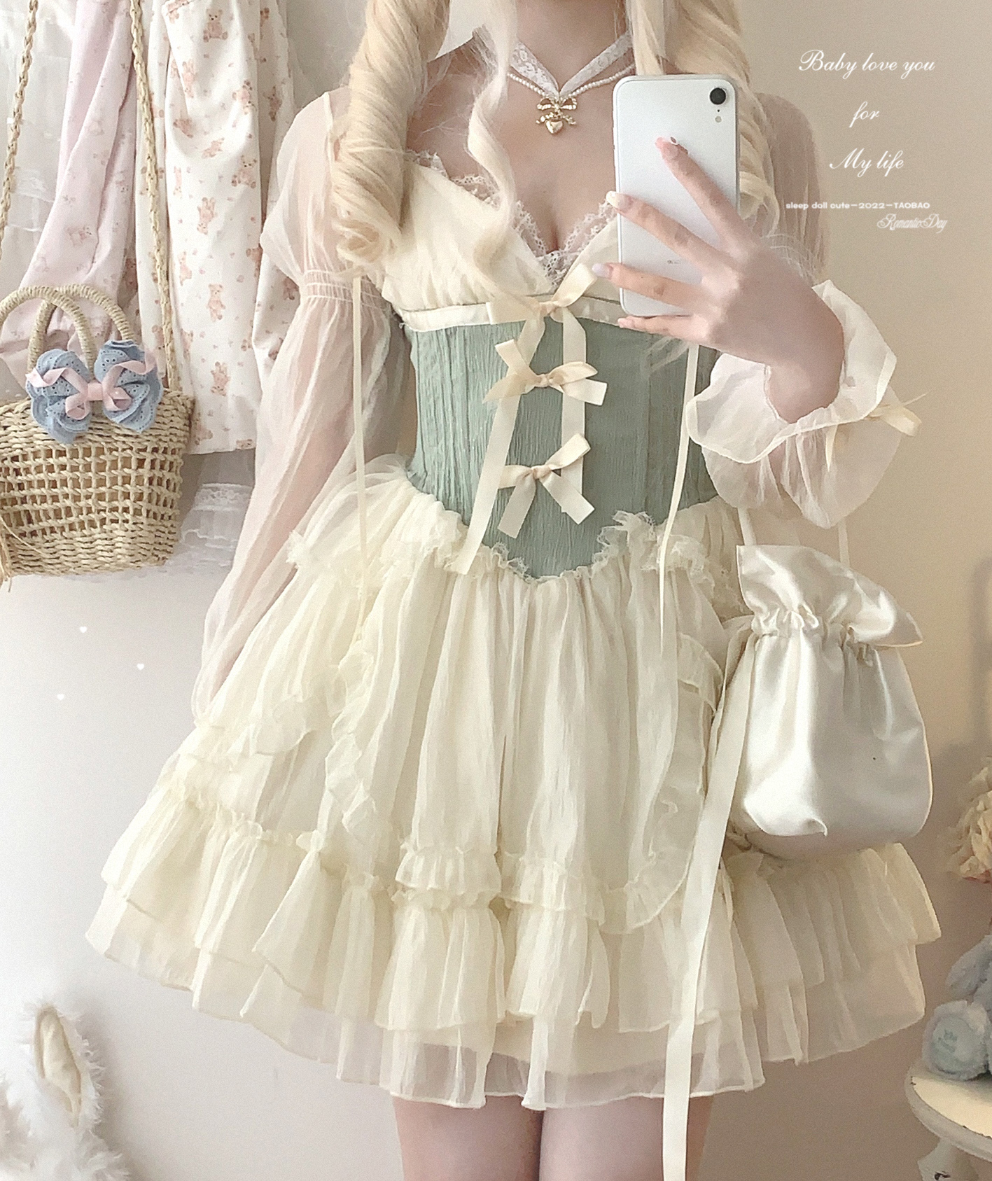 *sleepingdoll自制* 雲霧之姬 蝴蝶結提花復古吊帶蓬蓬洋裝
