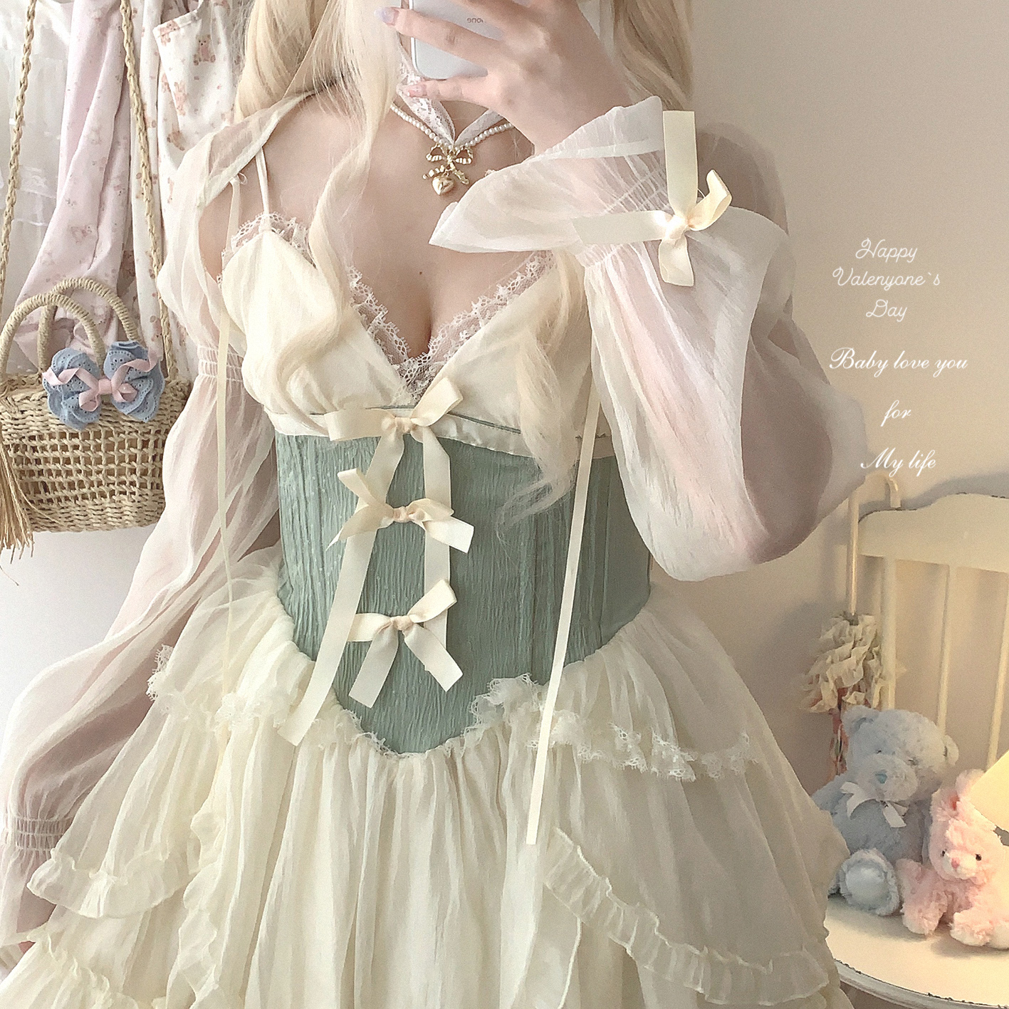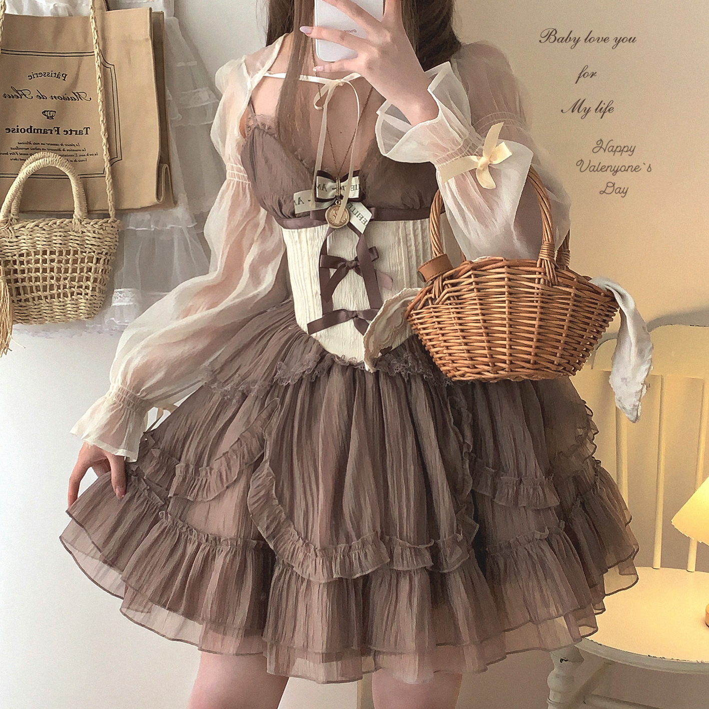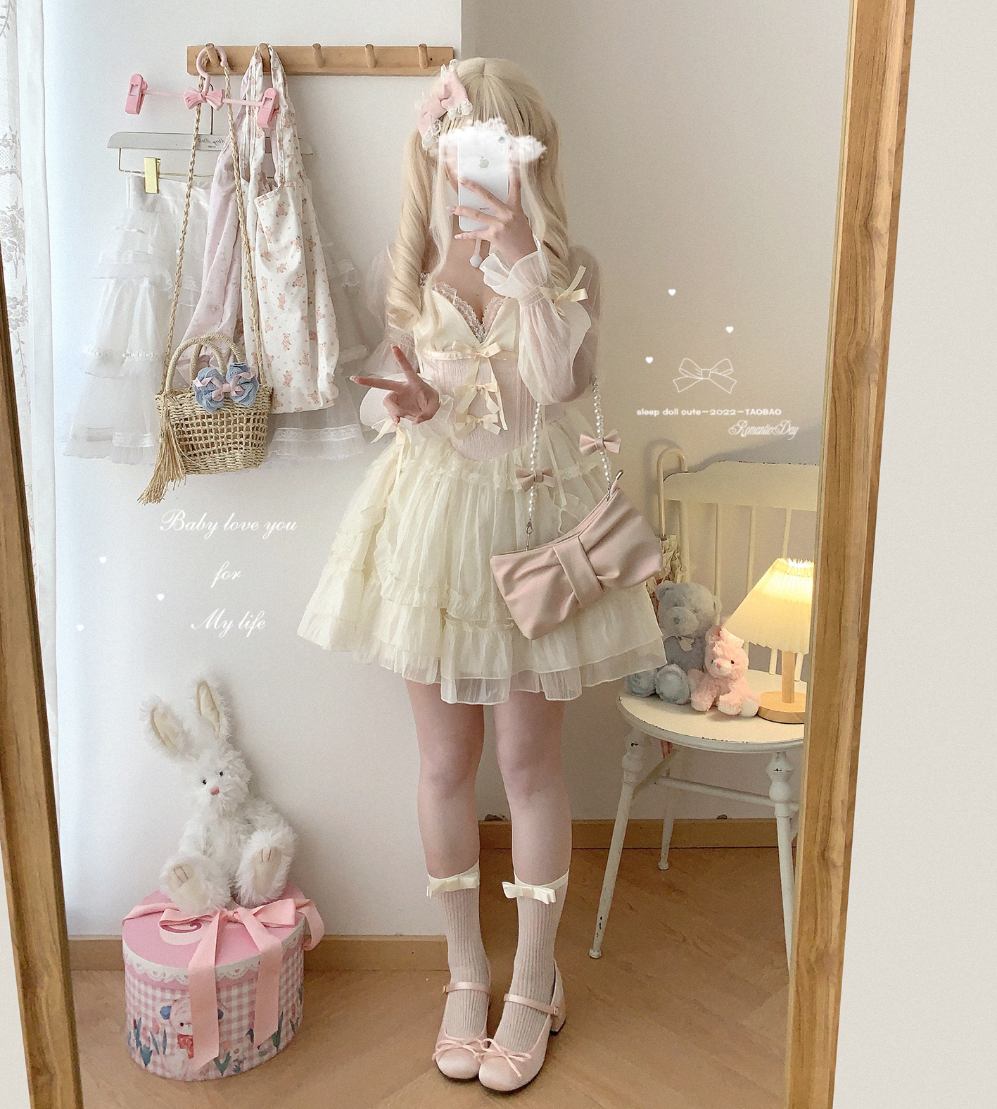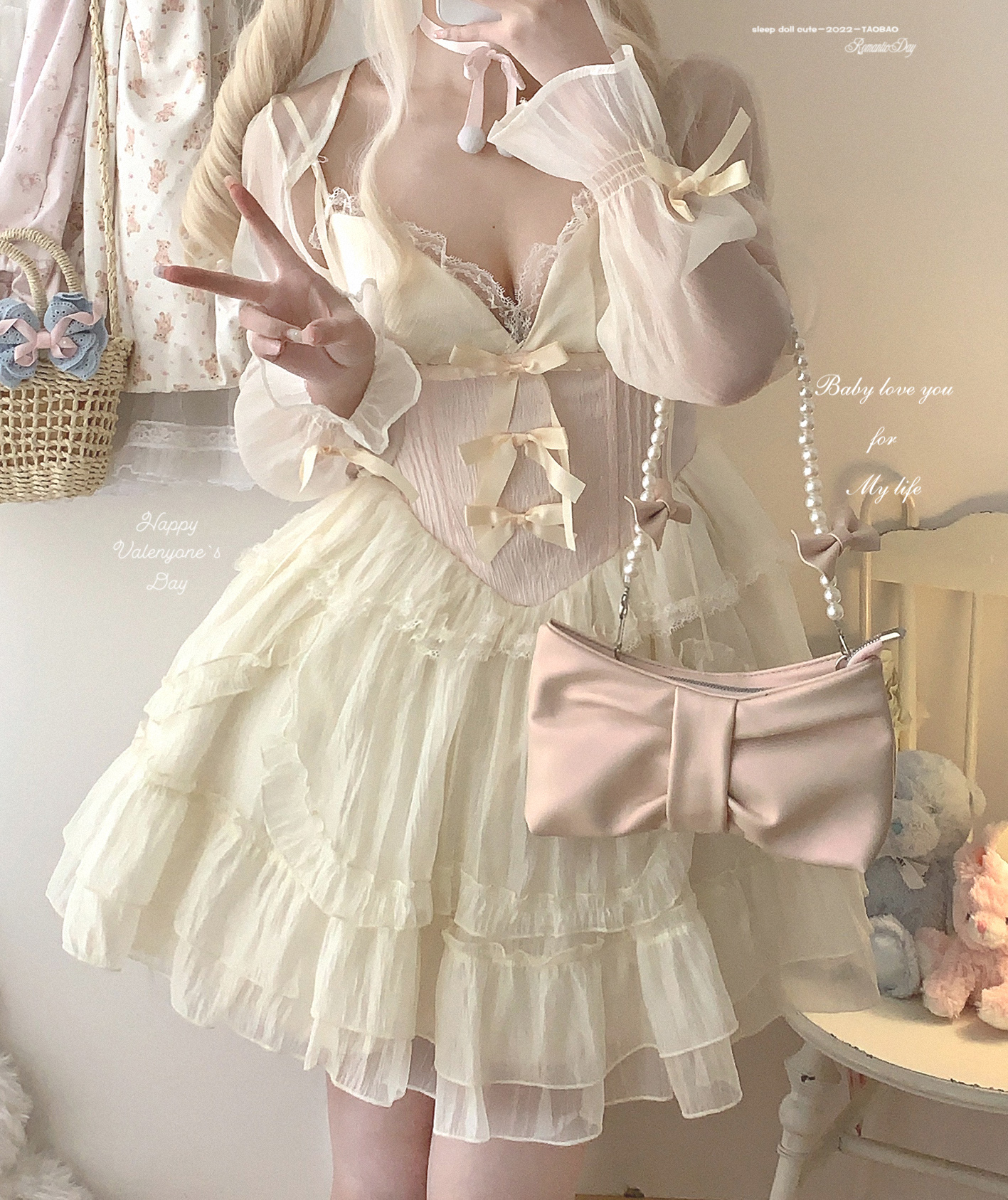 *sleepingdoll自制* 雲霧之姬 蝴蝶結提花復古吊帶蓬蓬洋裝