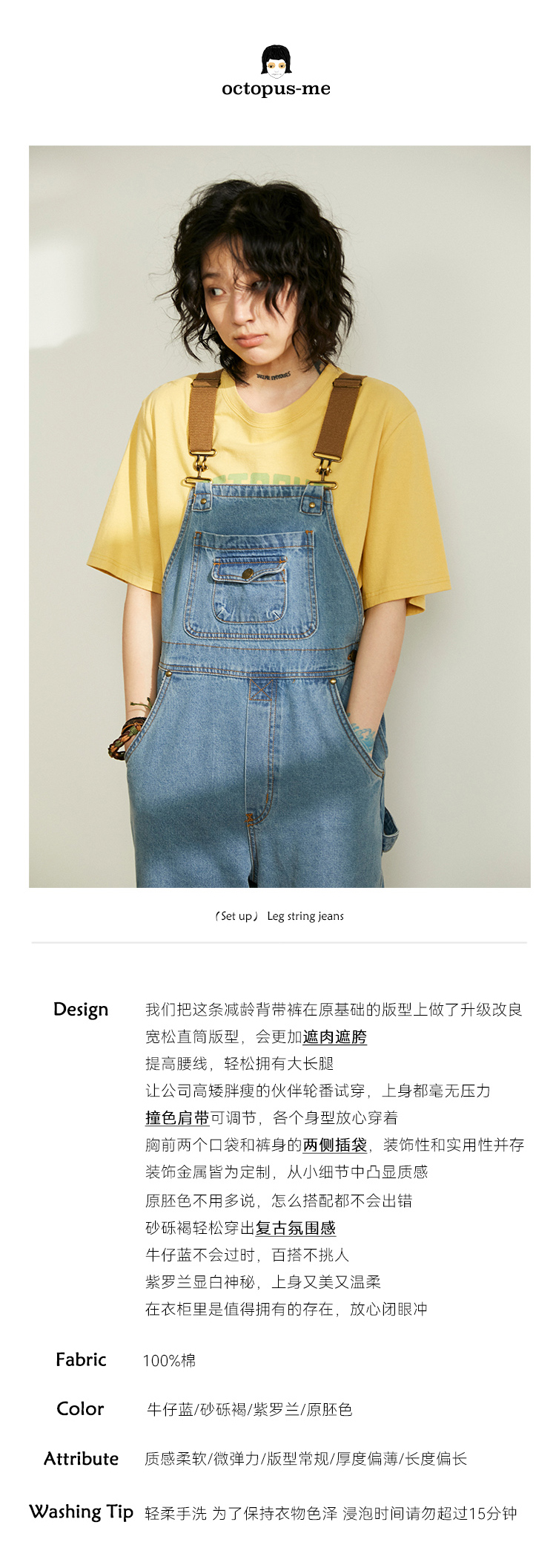 octopusme章魚家抱嬰袋褲夏季女薄款顯瘦小個子日系工裝牛仔休閒褲