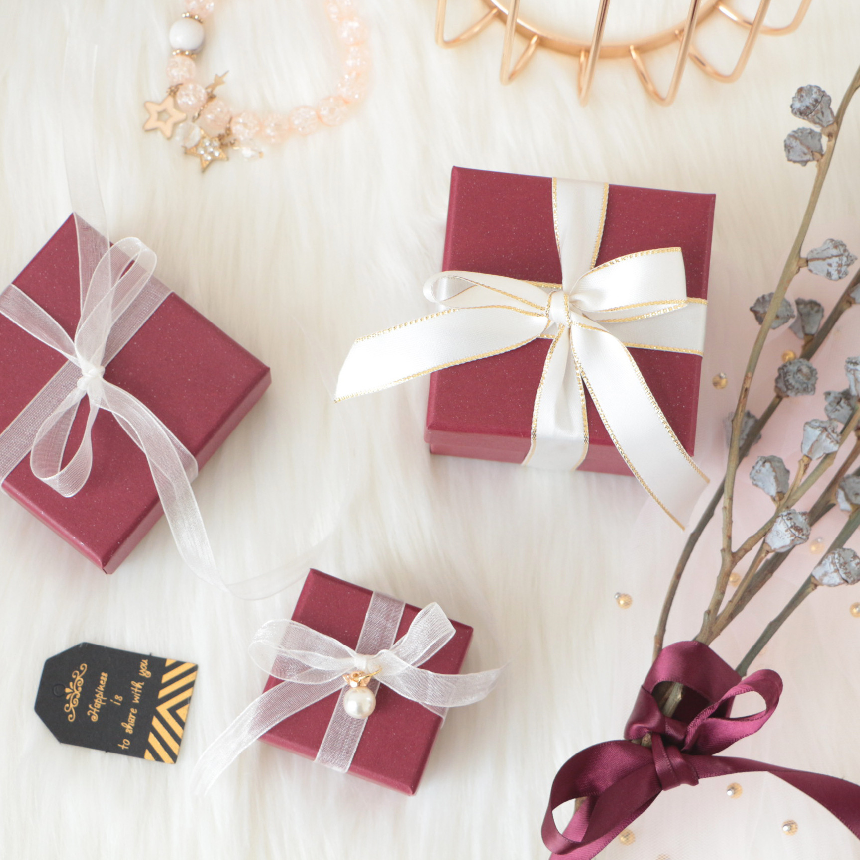 现货品质款酒红色蝴蝶结首饰盒项链戒指盒创意款饰品包装盒耳饰盒