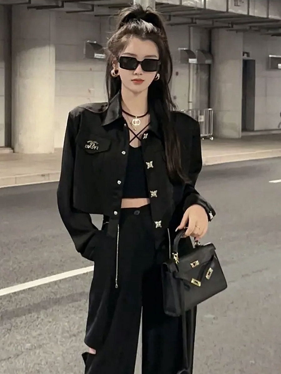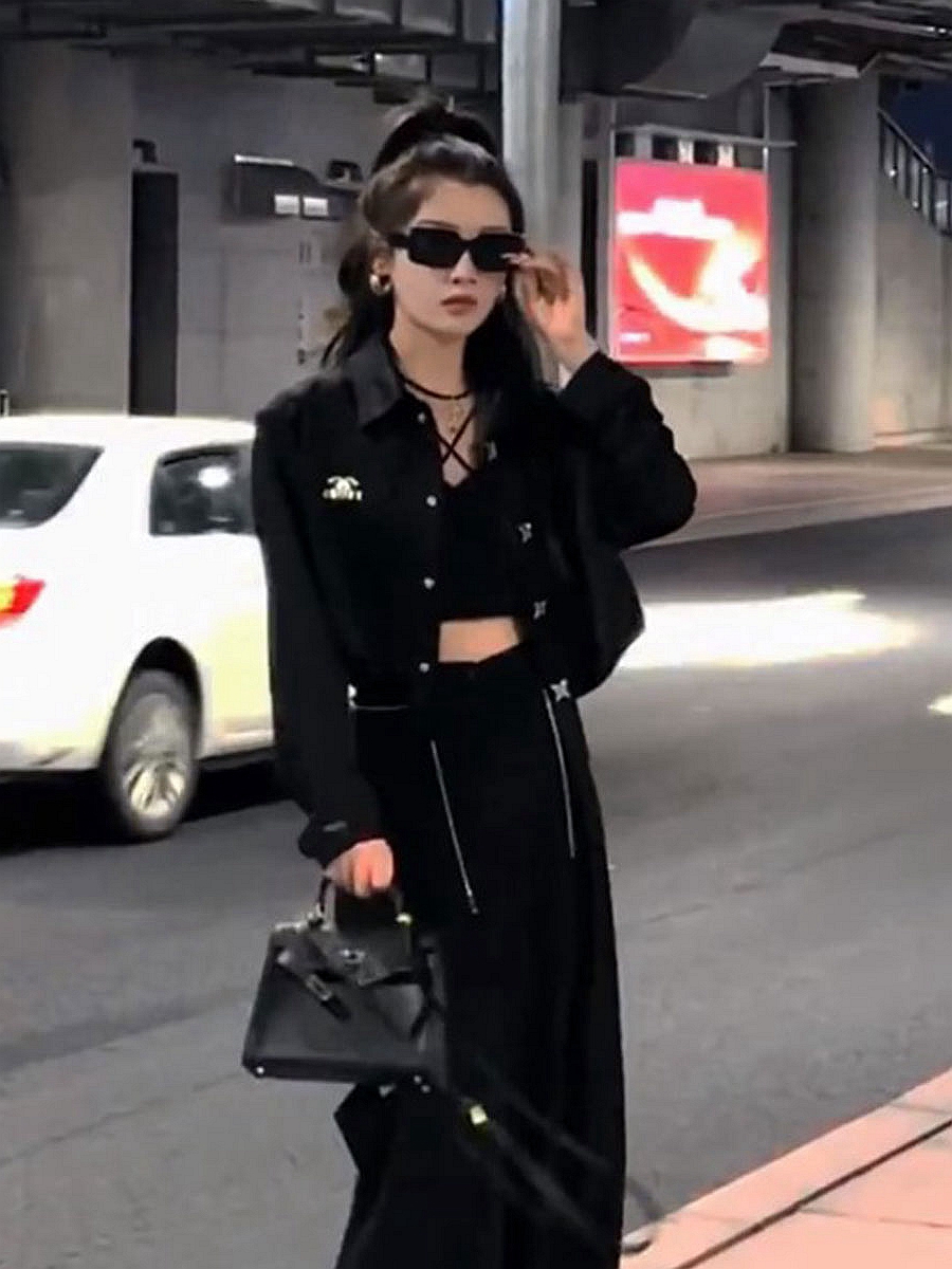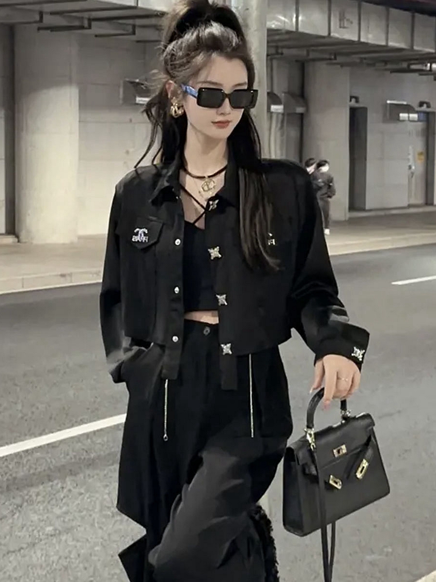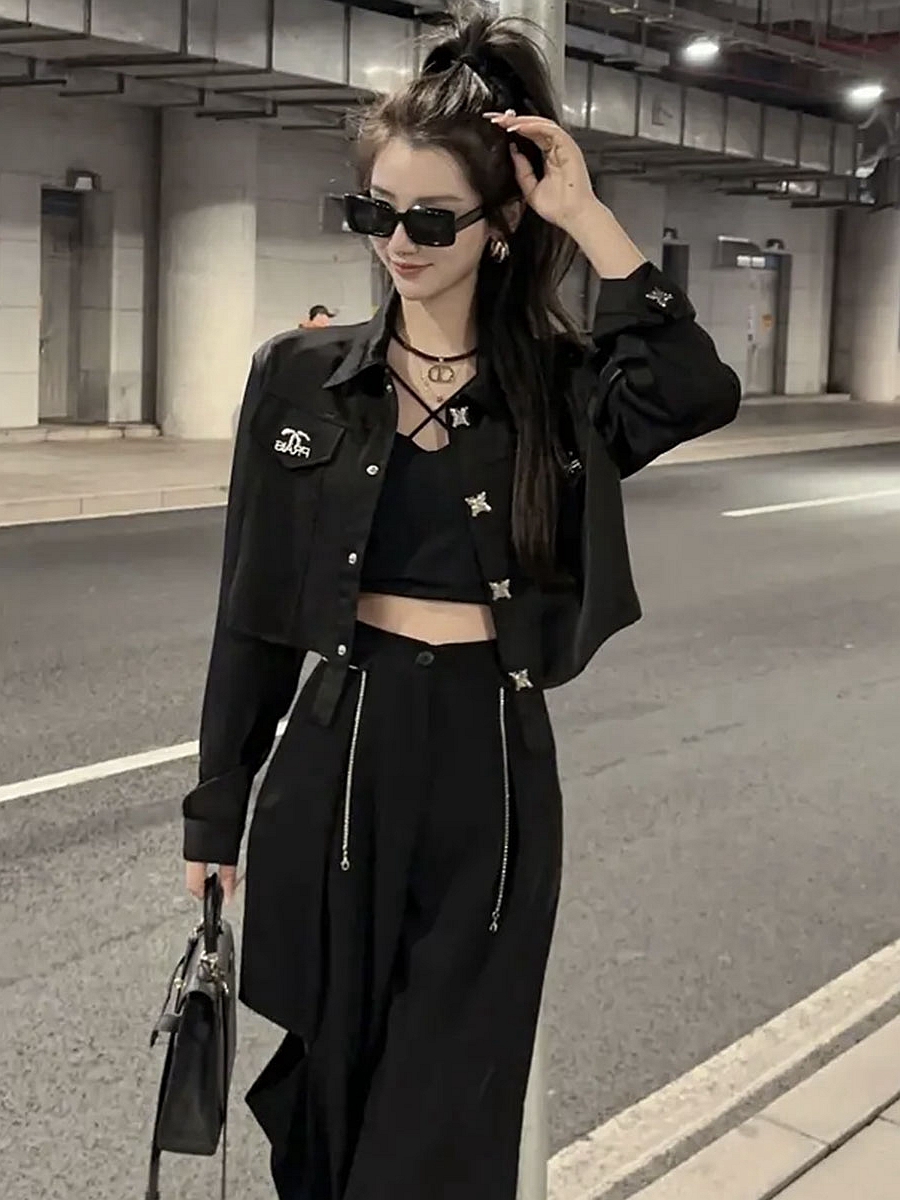 夏季休閒黑色長袖精緻防曬襯衫韓版洋派短款顯瘦設計感襯衫外套女