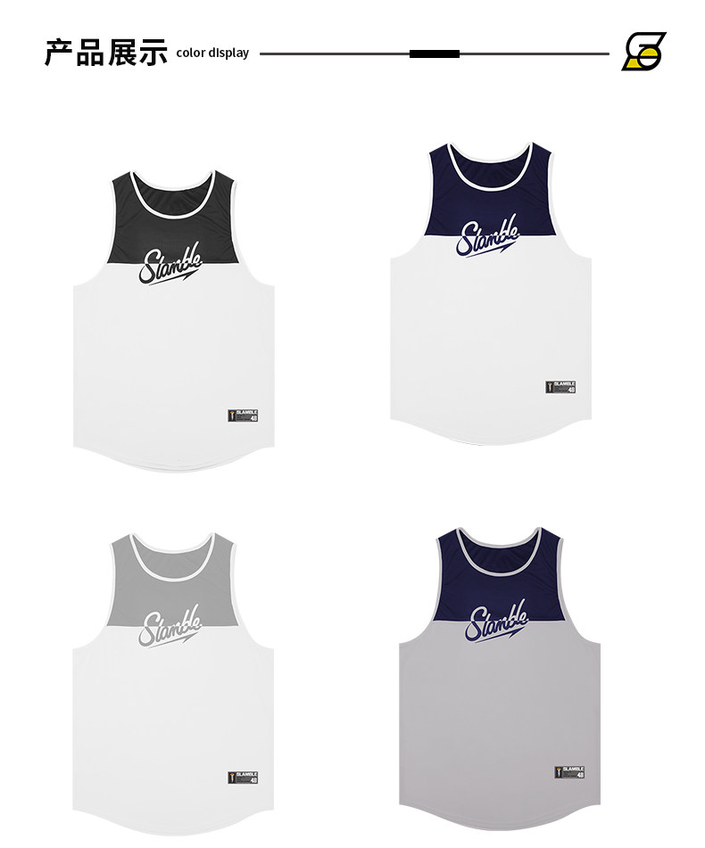 SLAMBLE新款夏季運動拼色背心男無袖籃球服速乾透氣健身訓練上衣