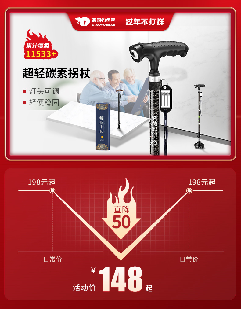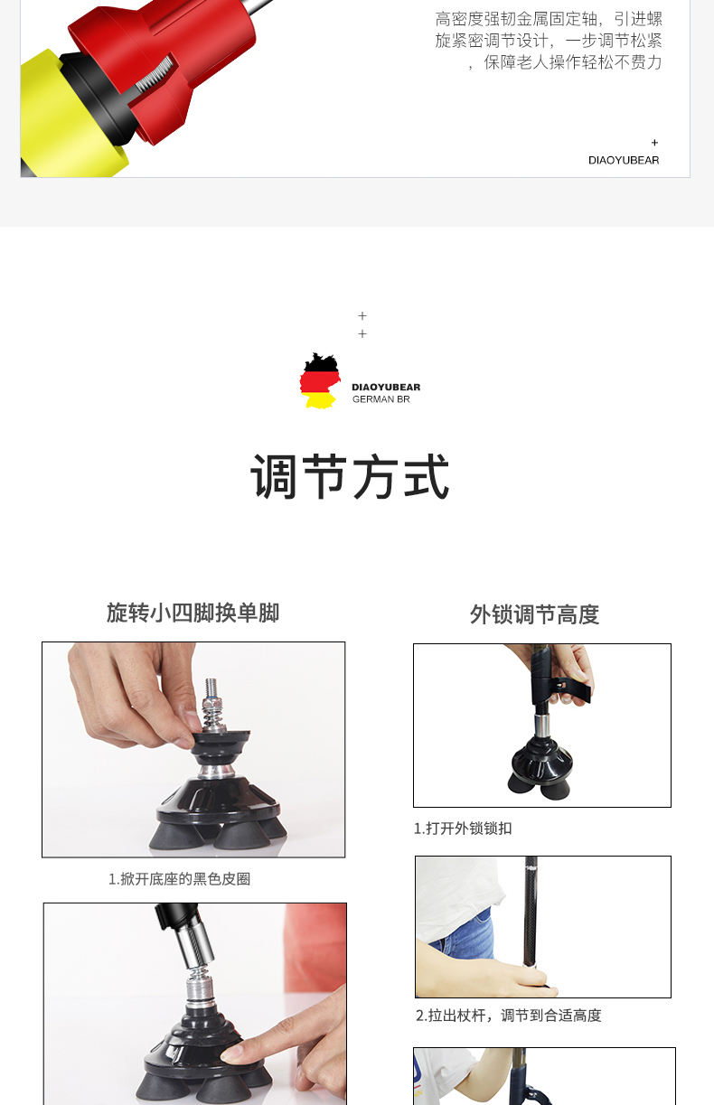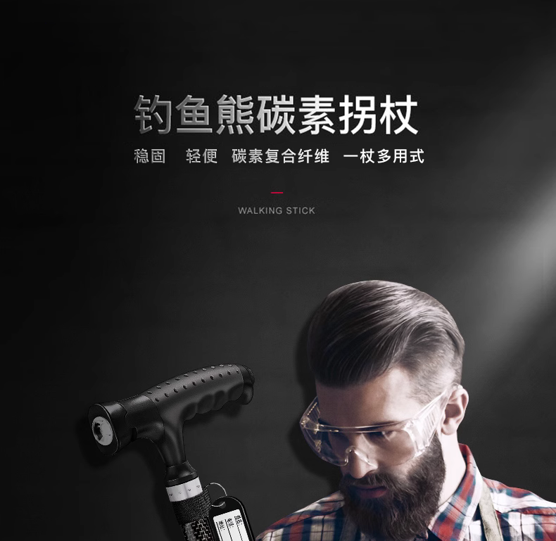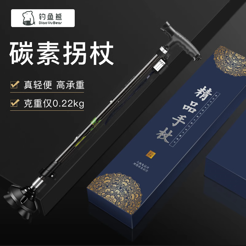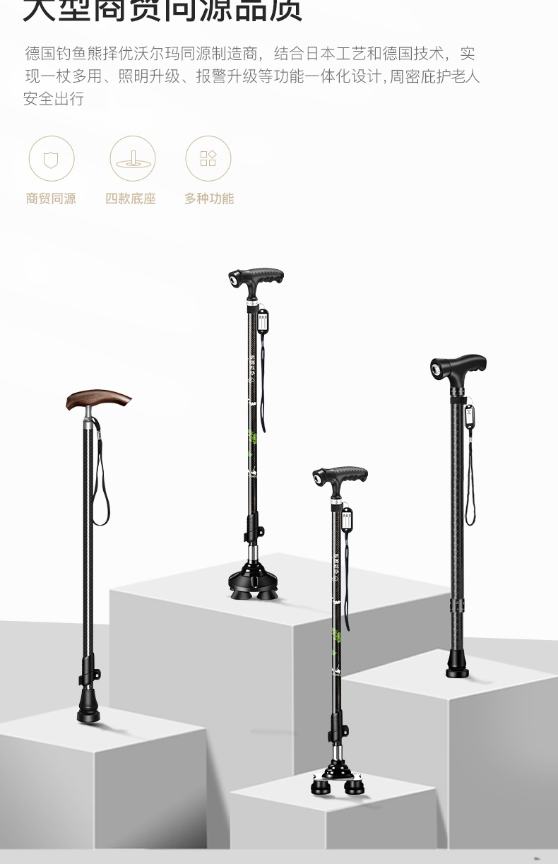 釣魚熊老人柺杖碳素超輕伸縮手杖四腳防滑輕便老年人碳纖維柺棍扙