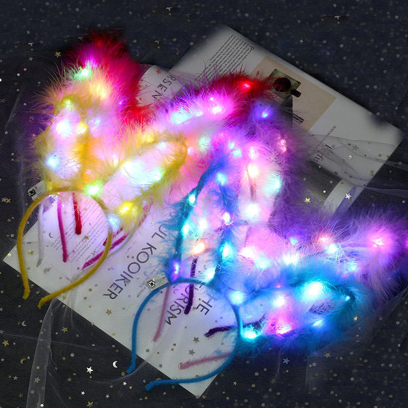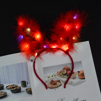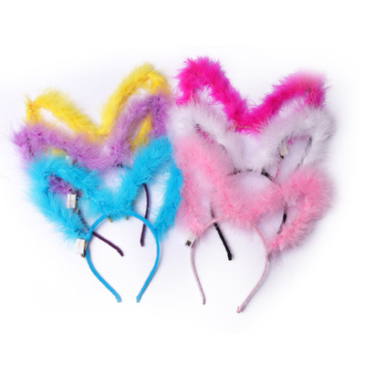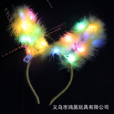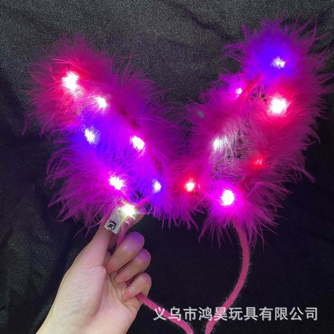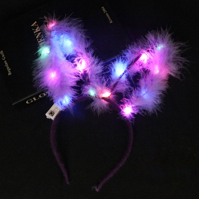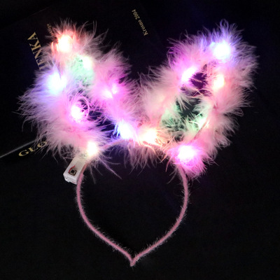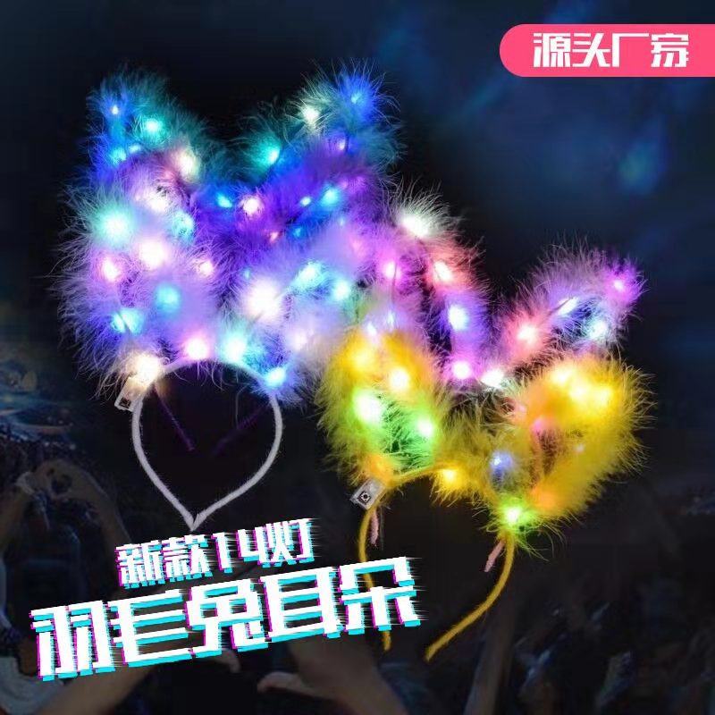 新款发光发箍羽毛兔耳朵加长14灯发箍夜市景区演唱会热卖厂家批发