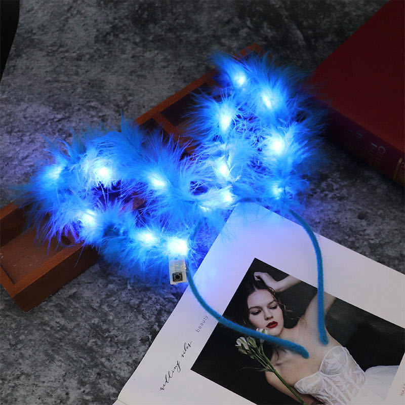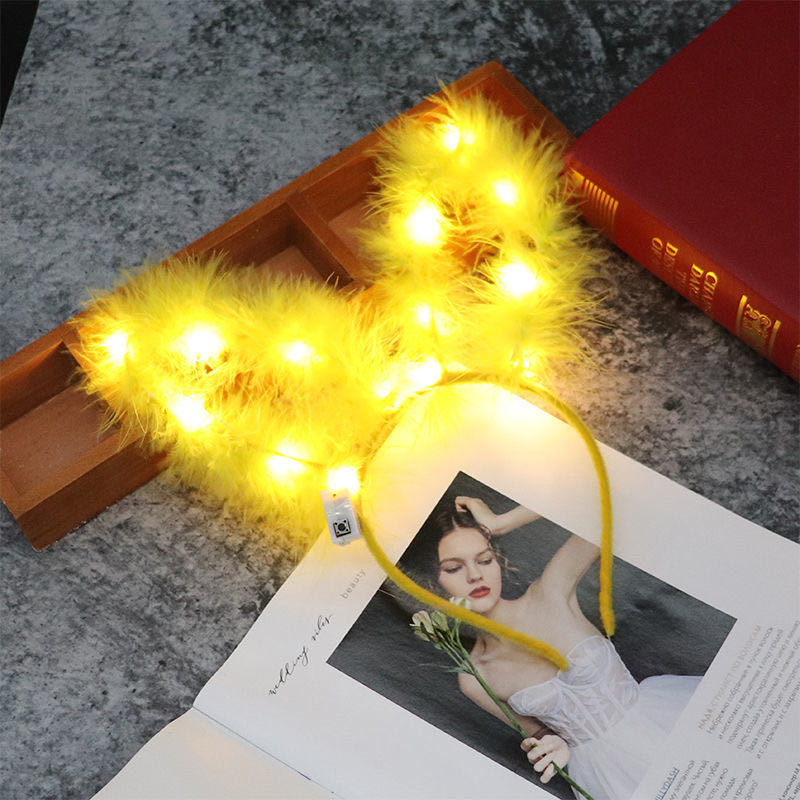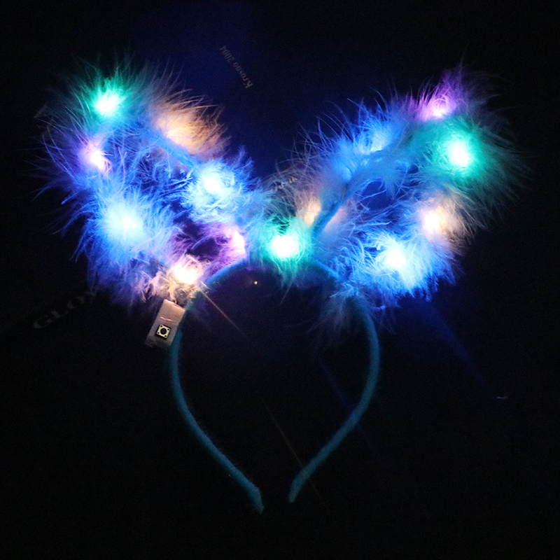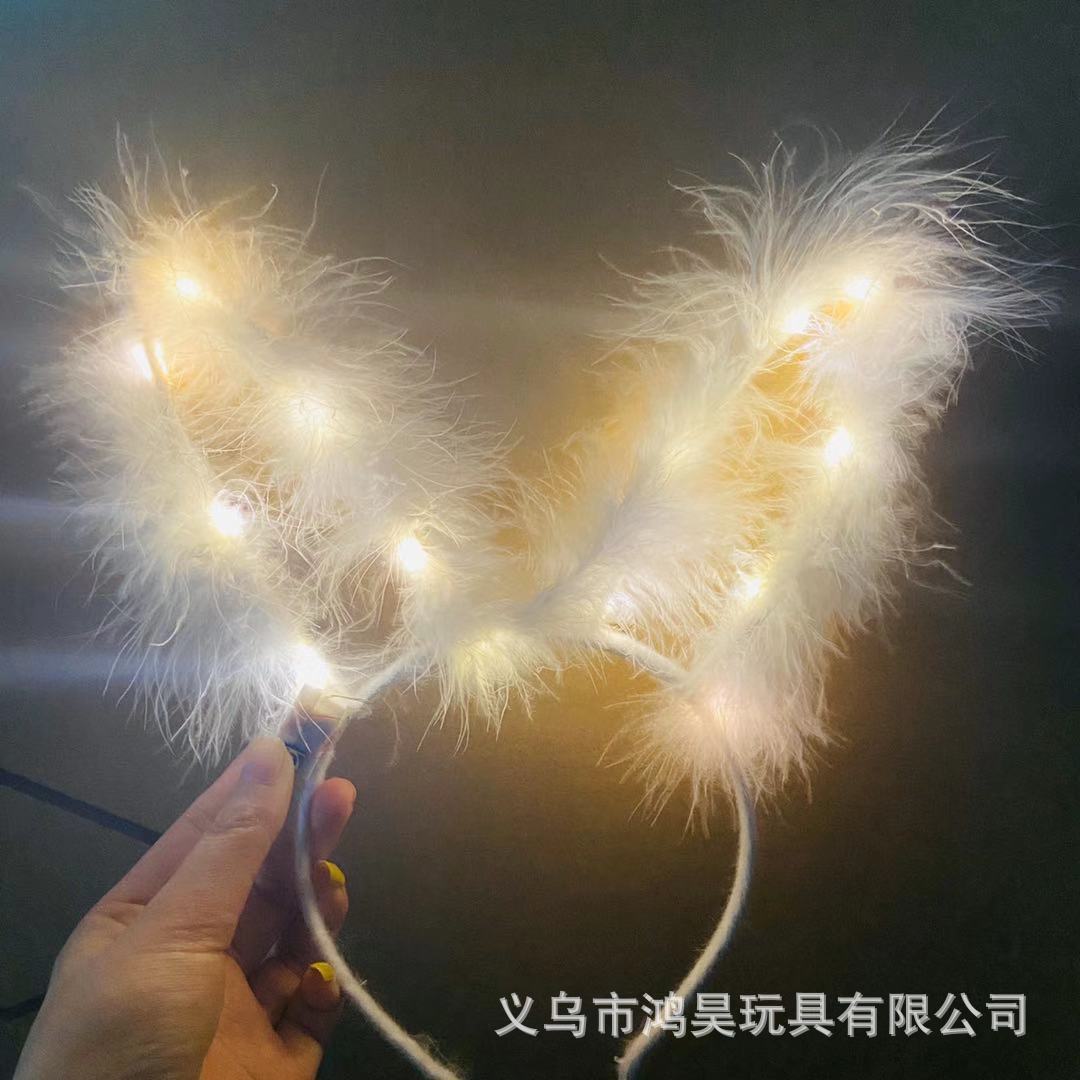 新款发光发箍羽毛兔耳朵加长14灯发箍夜市景区演唱会热卖厂家批发