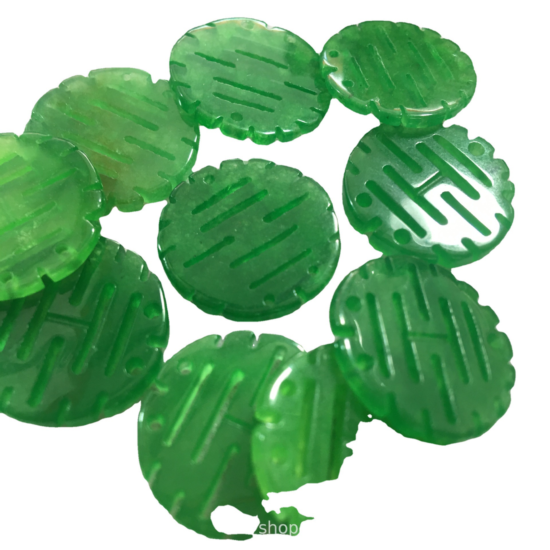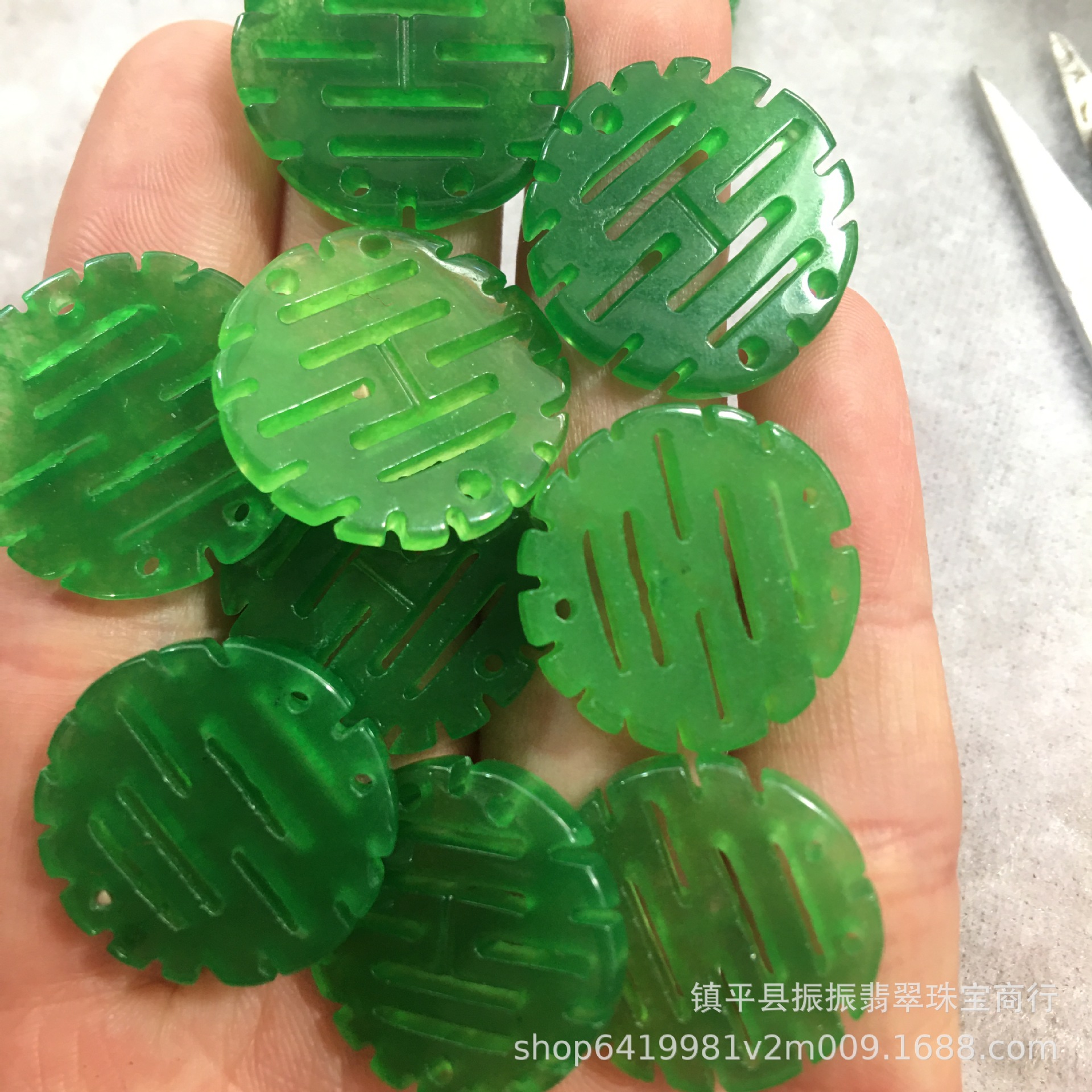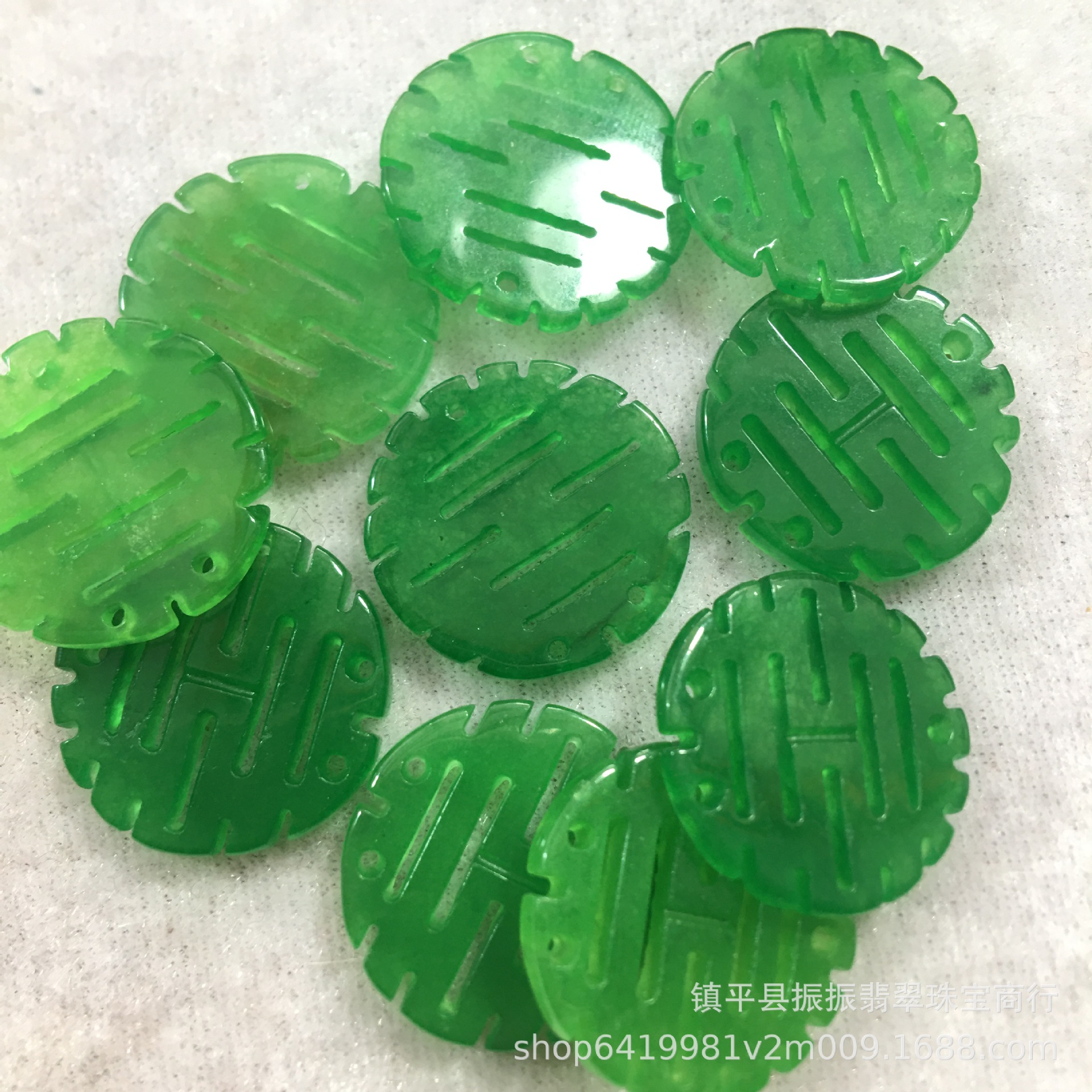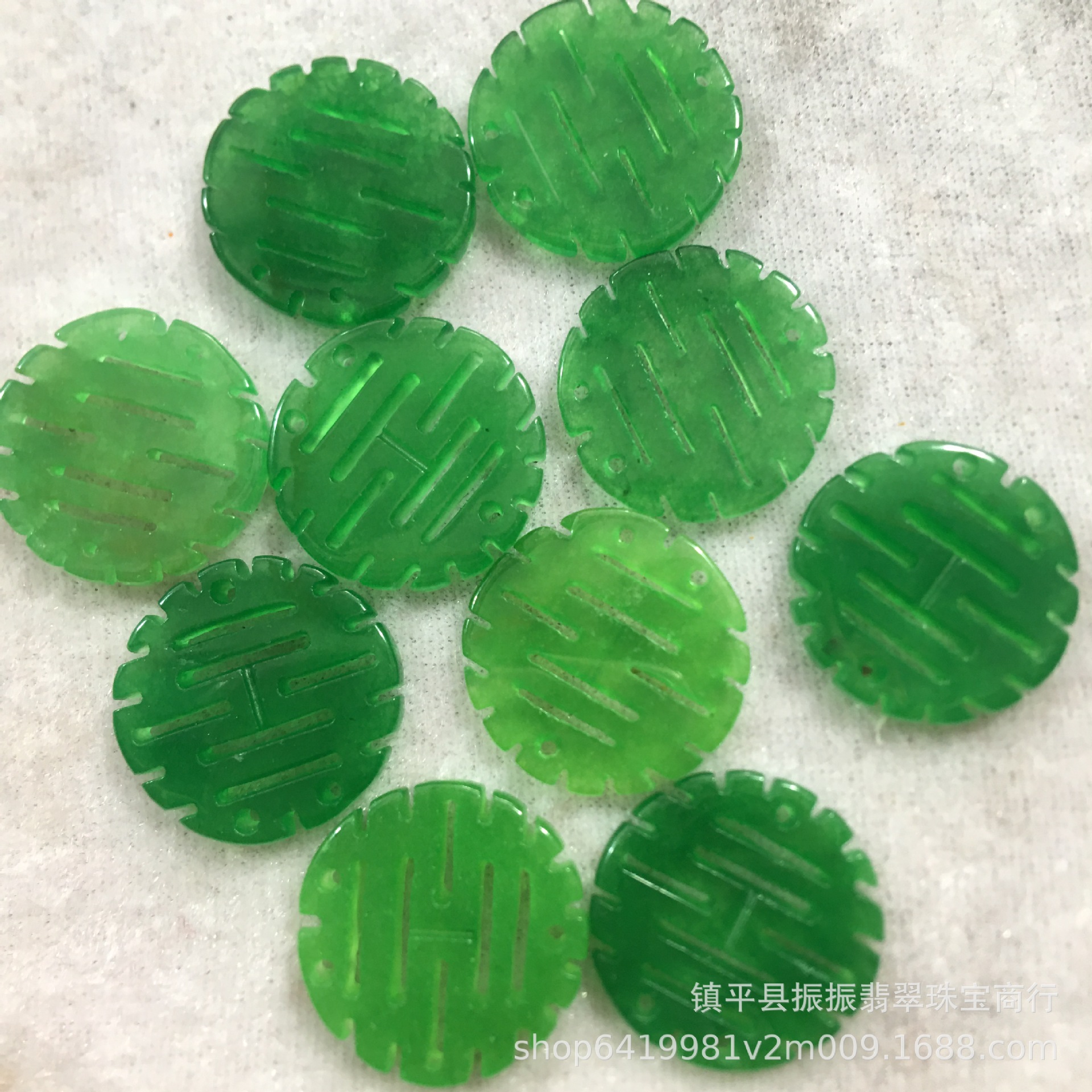 缅甸翡翠干青喜字圆双喜牌子 DIY饰品配饰玉石纽扣挂件耳坠批发