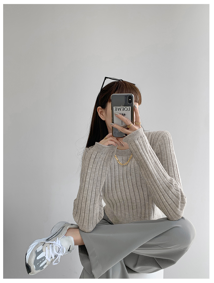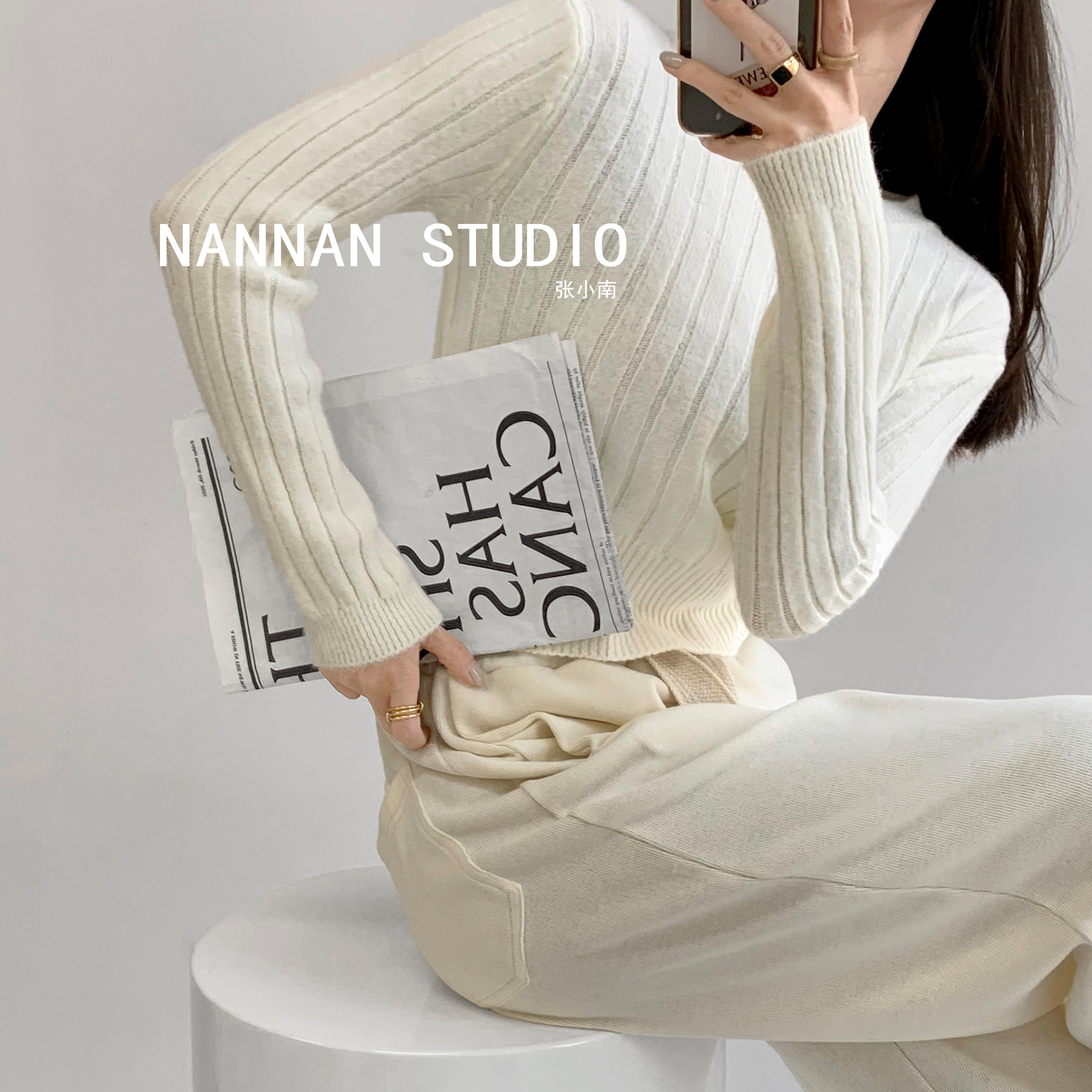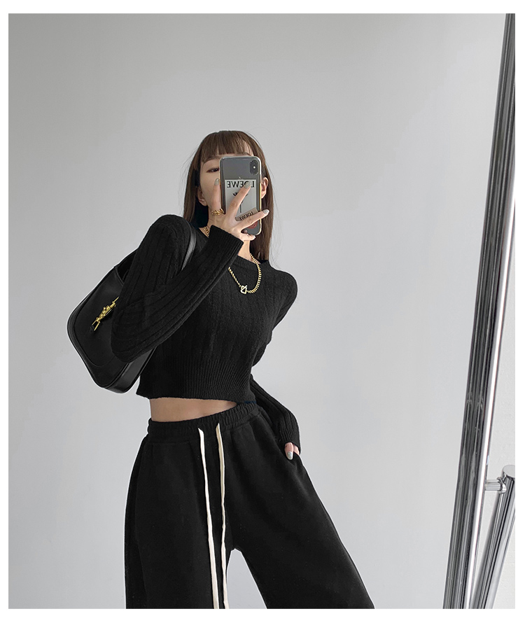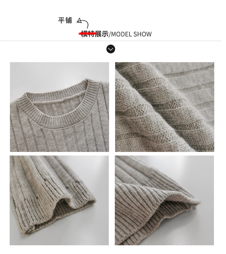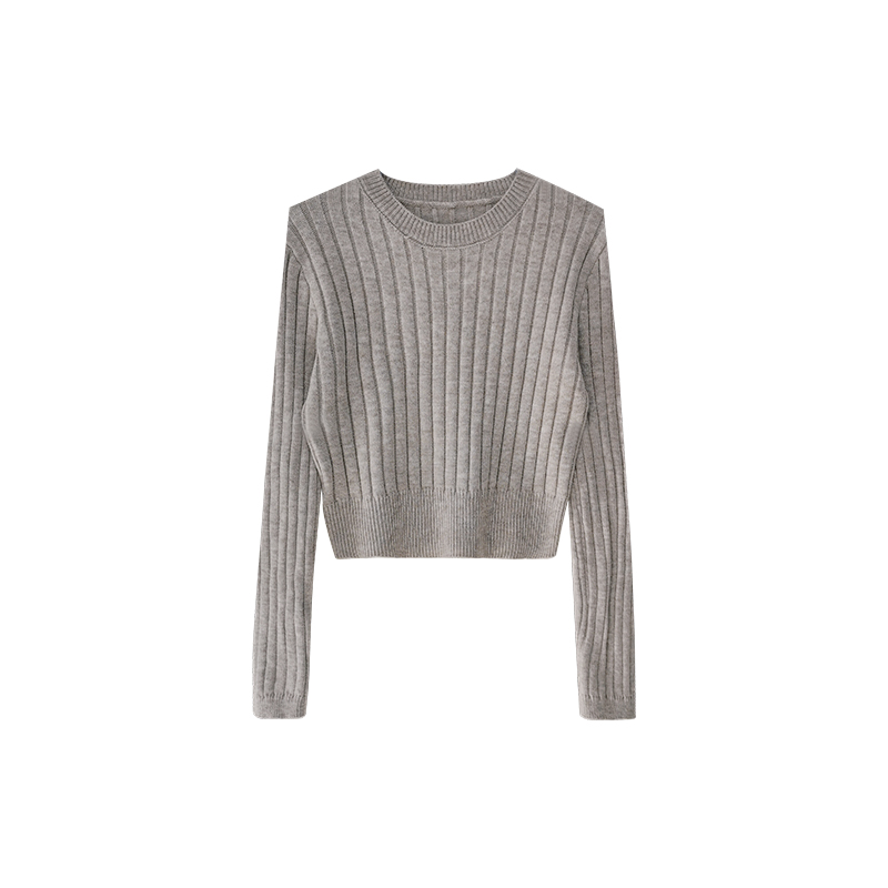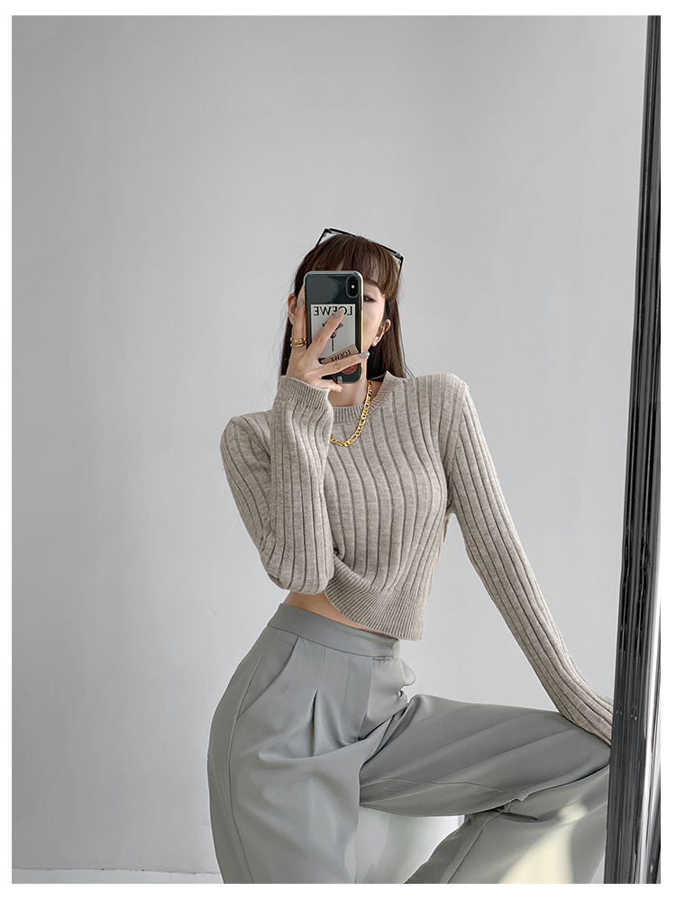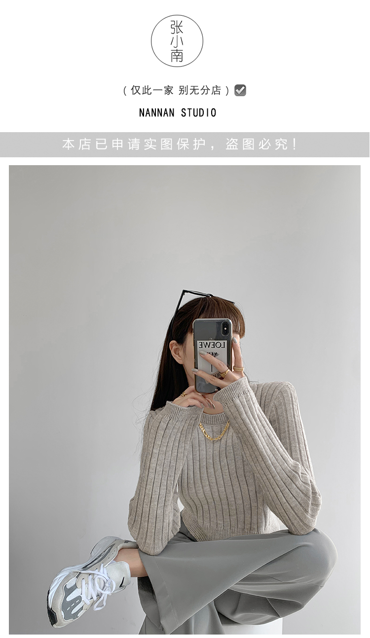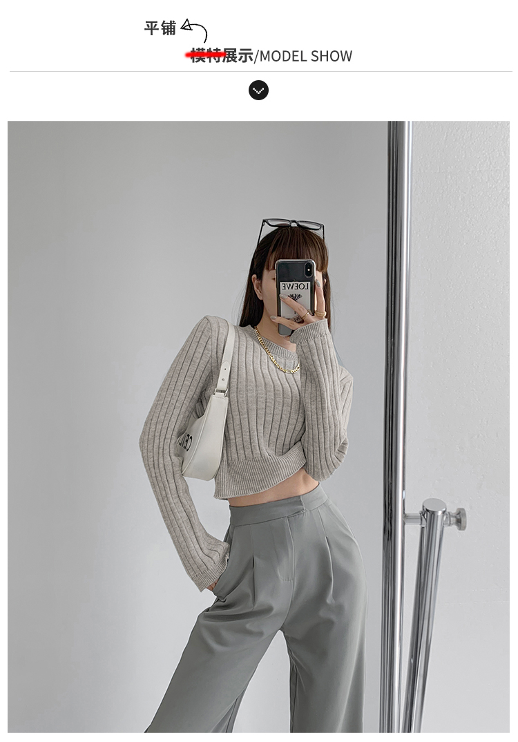 張小奈NANNAN復古軟糯高級感坑條針織衫女春秋短款圓領套頭毛衣潮