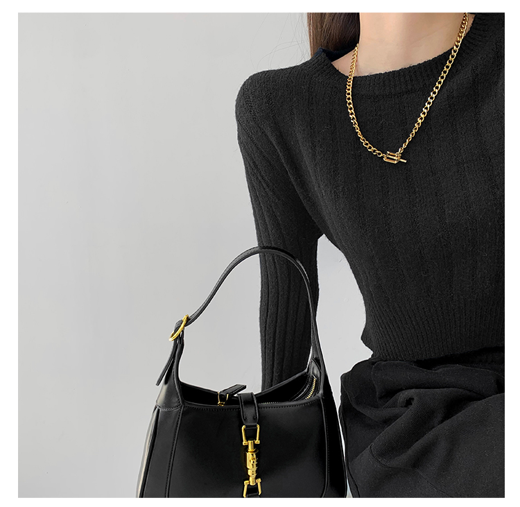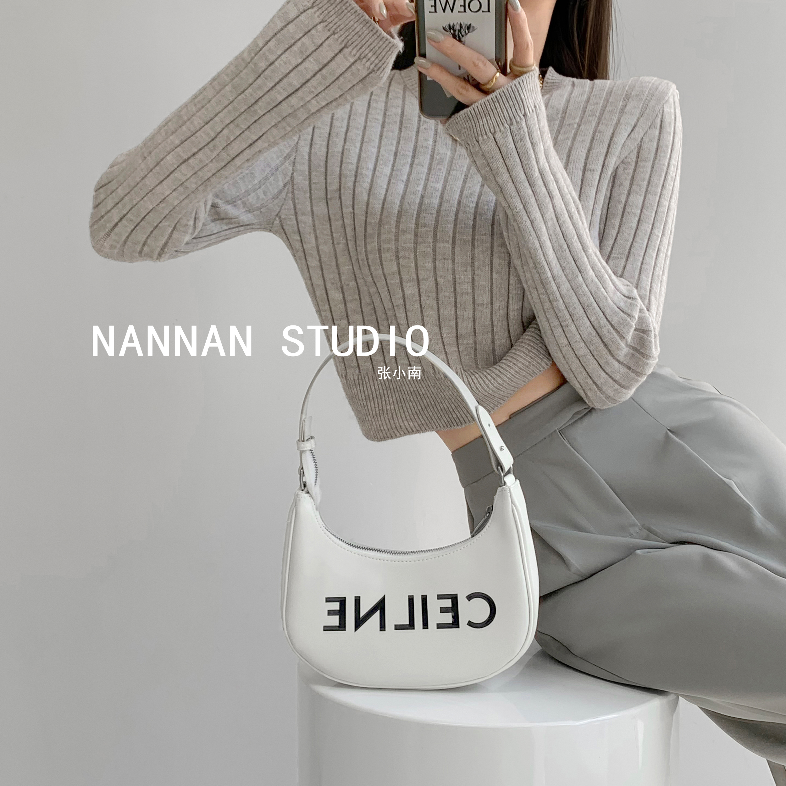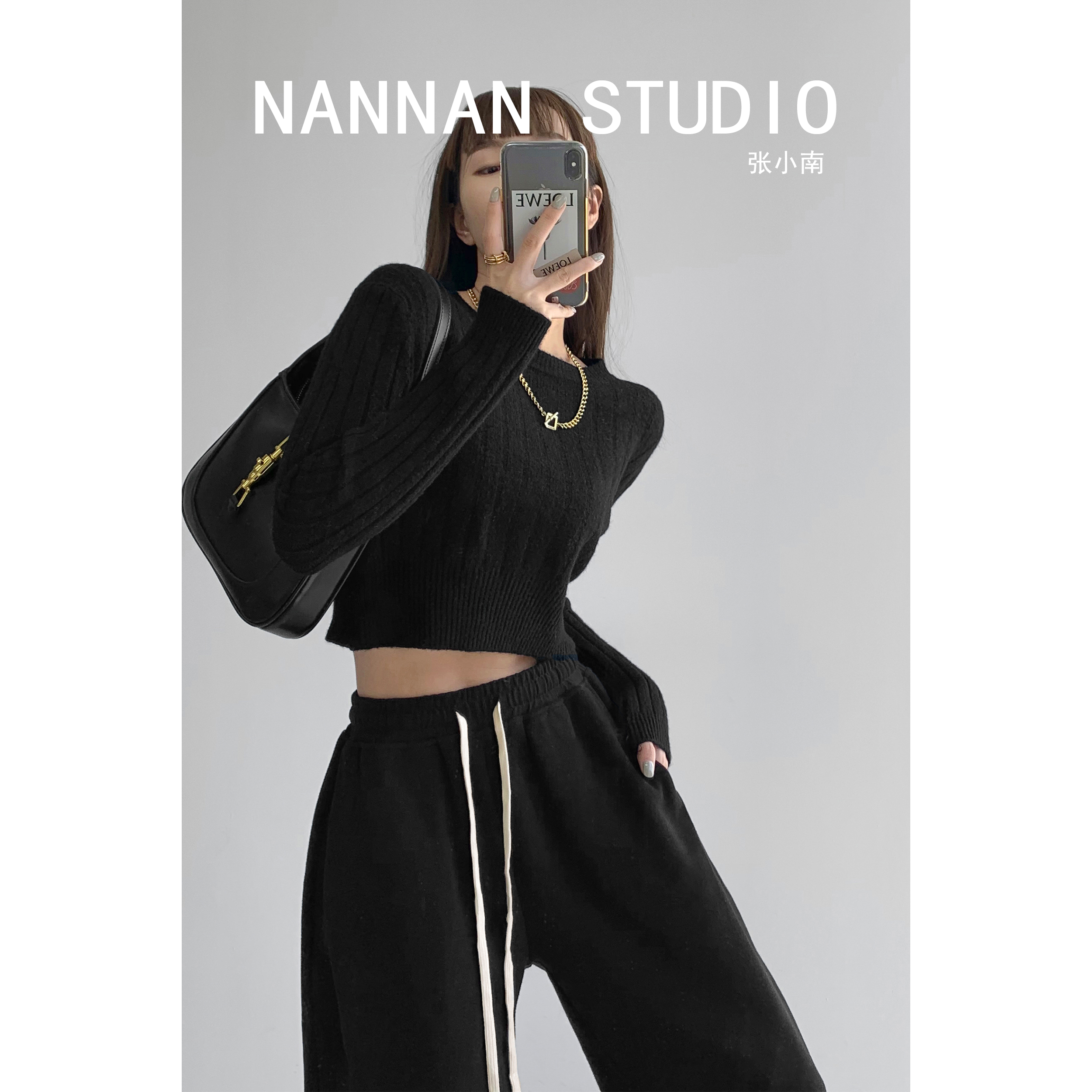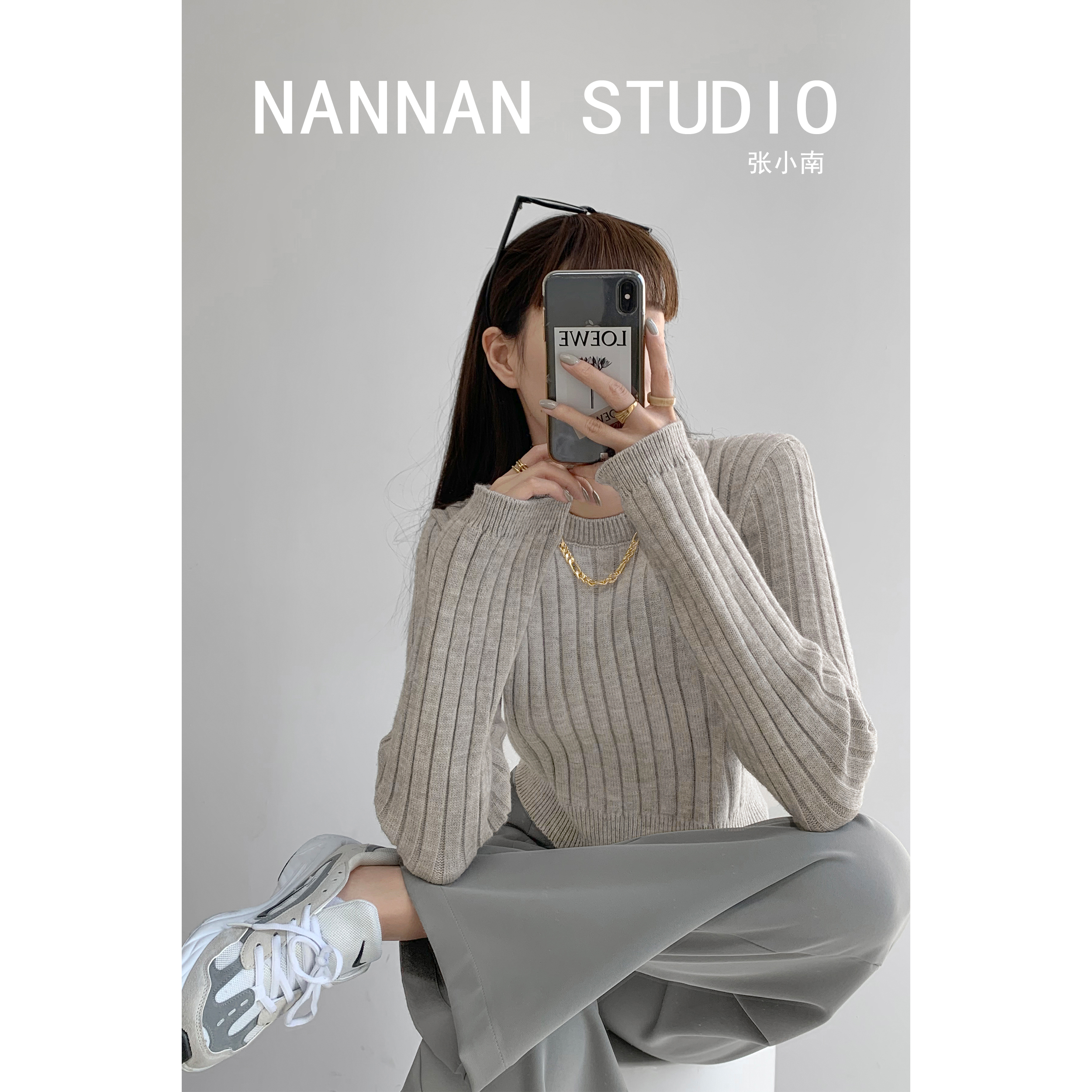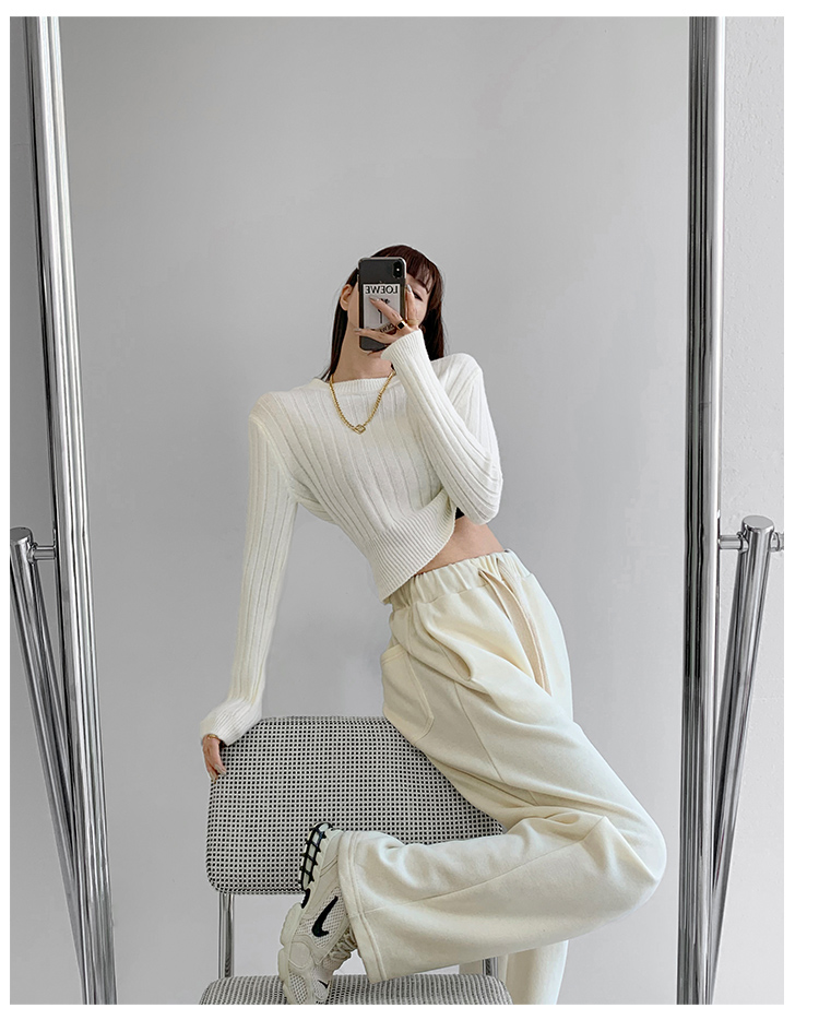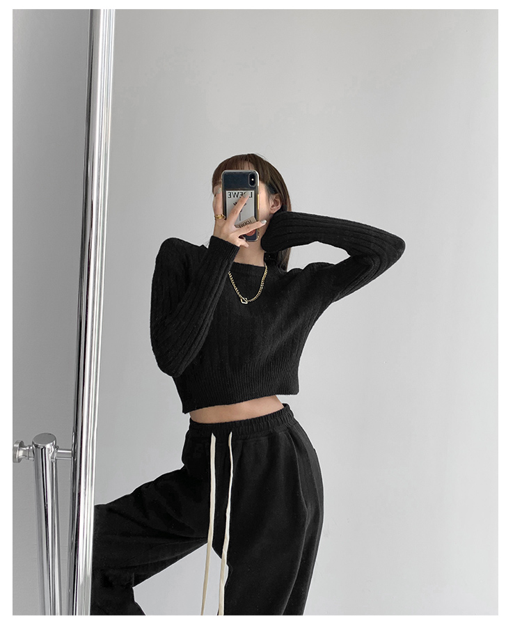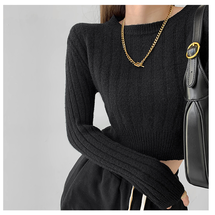 張小奈NANNAN復古軟糯高級感坑條針織衫女春秋短款圓領套頭毛衣潮