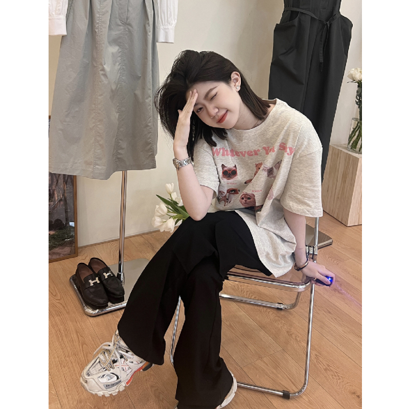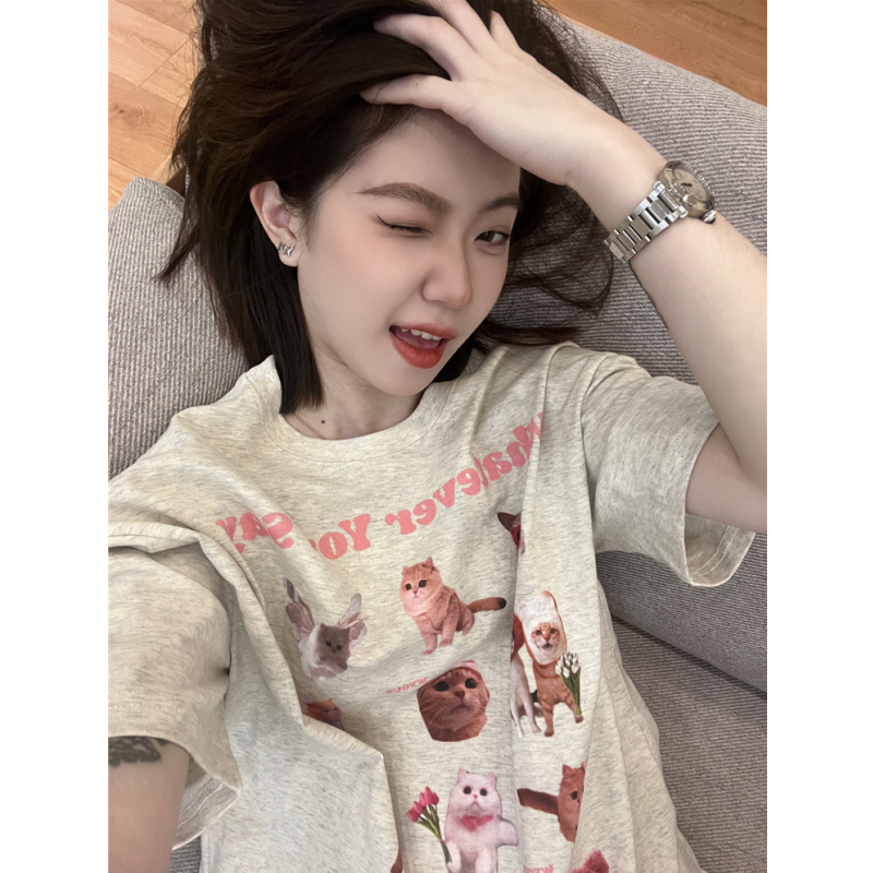 100%純棉美式潮牌卡通正肩短袖t恤女2023新款小眾設計感慵懶上衣