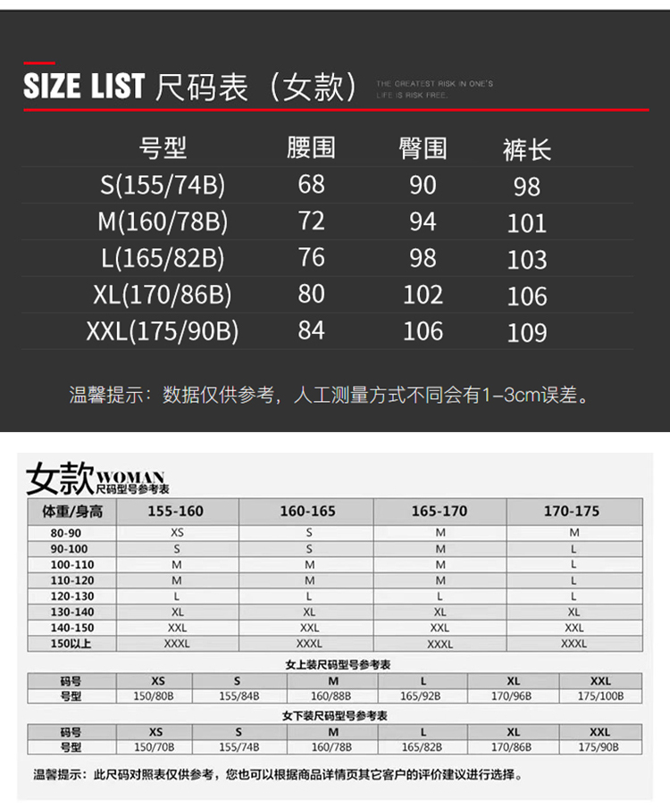 尺碼 S 155/74B,M 160/78B,L 165/82B,XL 170/86B,XXL 175/90B