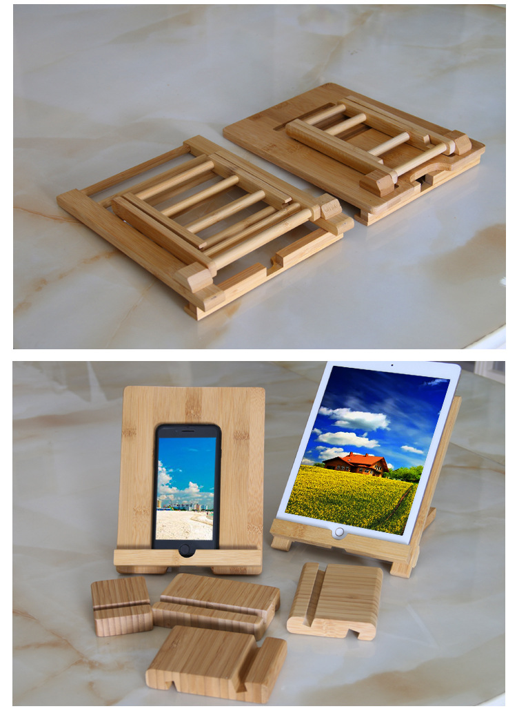 创意手机支架懒人竹木平板架平板折叠支架手机座公司礼品可制LOGO