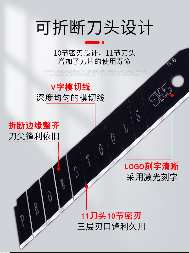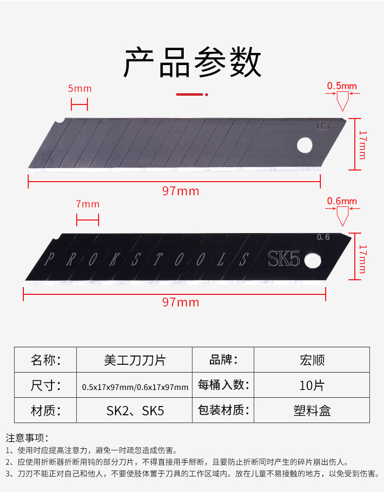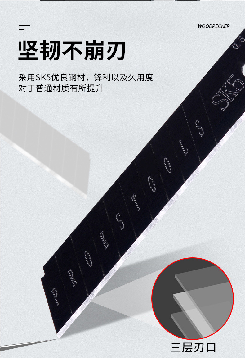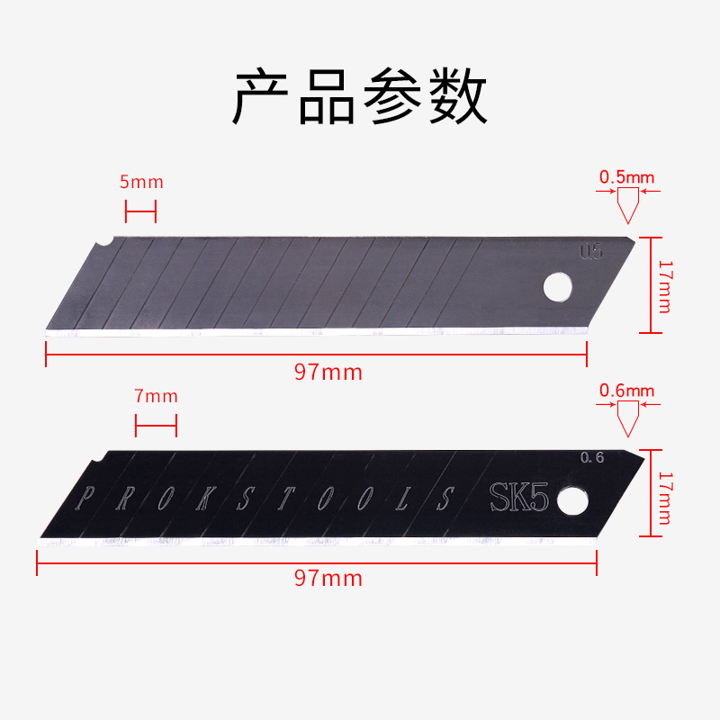 厂家批发 美工刀片 黑白高碳钢刀片 0.5m 美工刀具SK5材质刀片