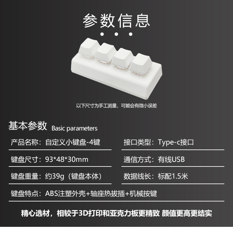 4键迷你机械小键盘全选复制粘贴一键密码自定义快捷键音游osu改键
