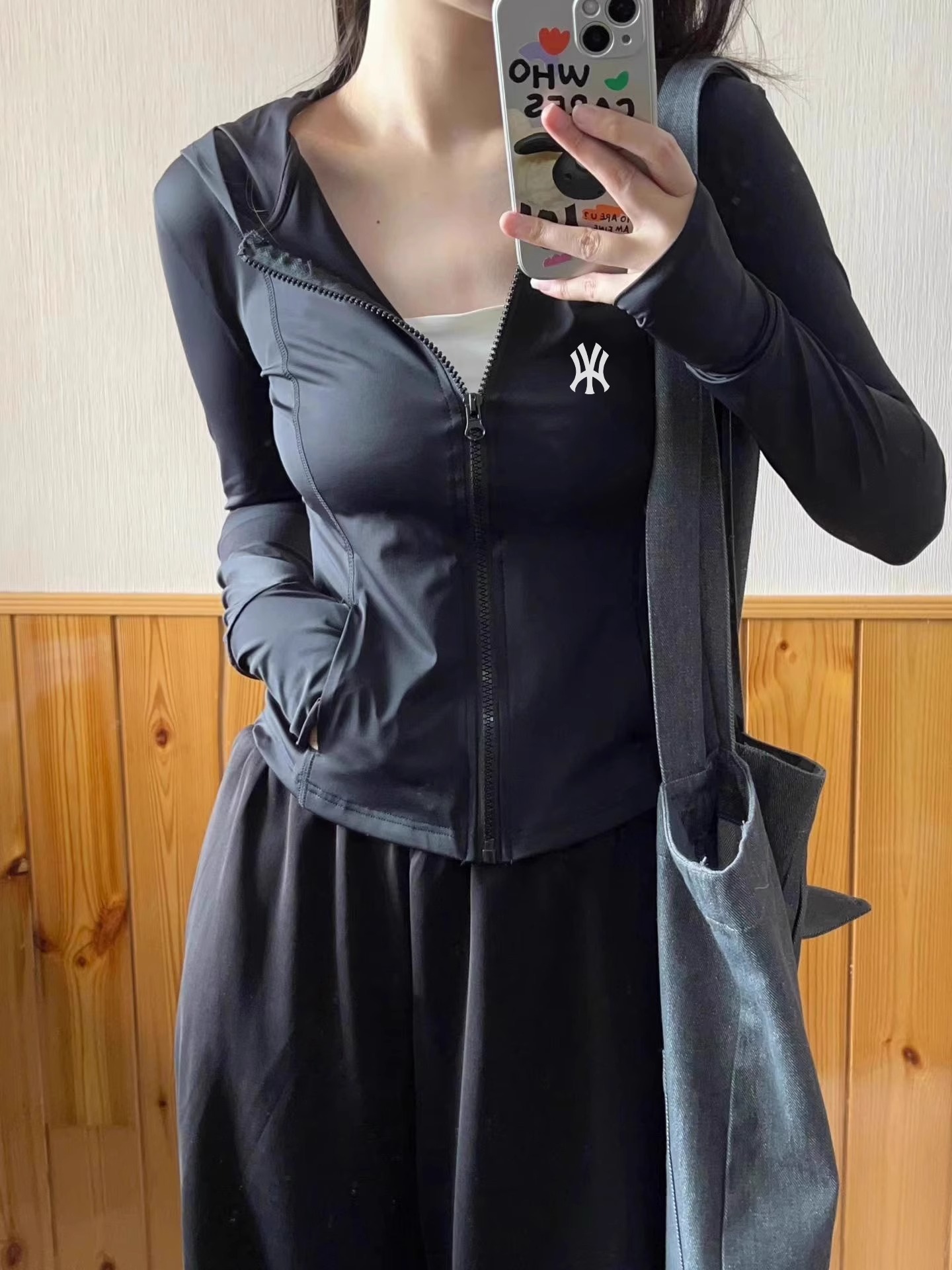 NY潮牌黑色防曬衣女款夏季輕薄冰絲修身抗UV運動瑜伽服短外套