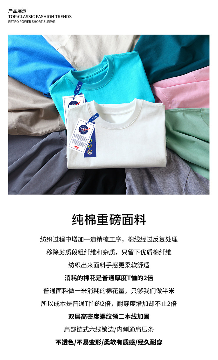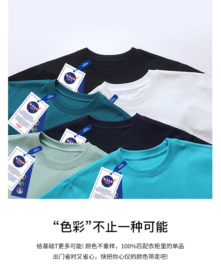 NASA白色T恤女短袖純棉內搭純白色簡約打底衫女生上衣T恤男大尺碼