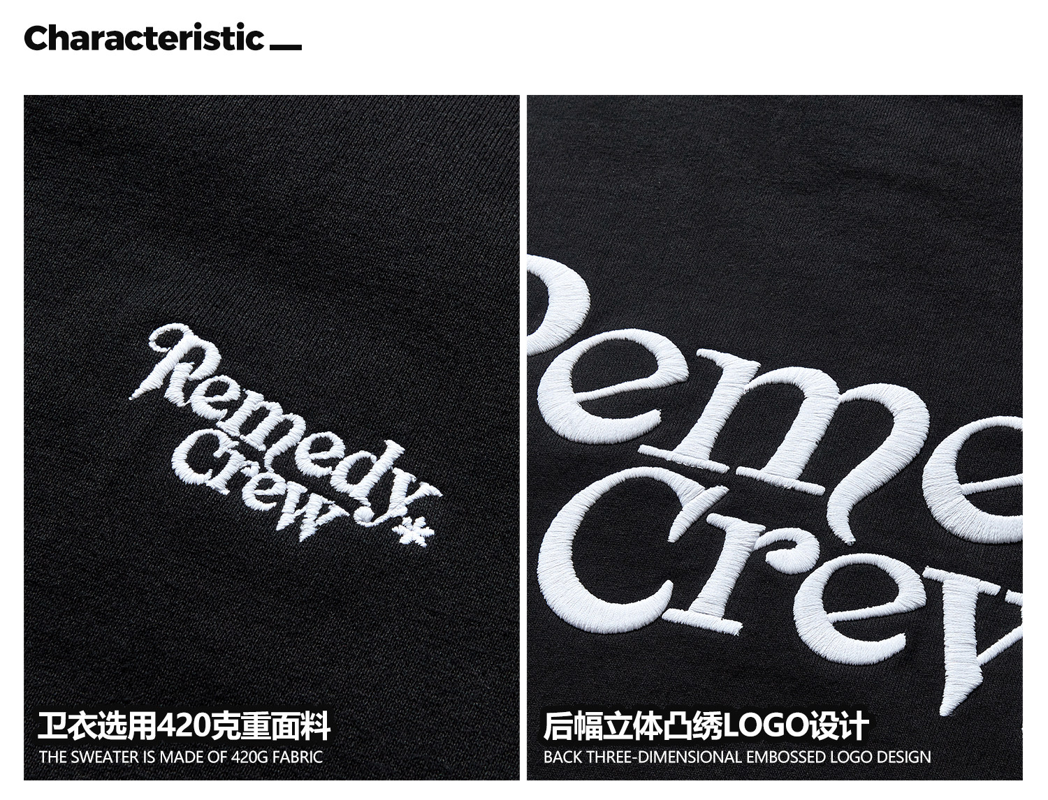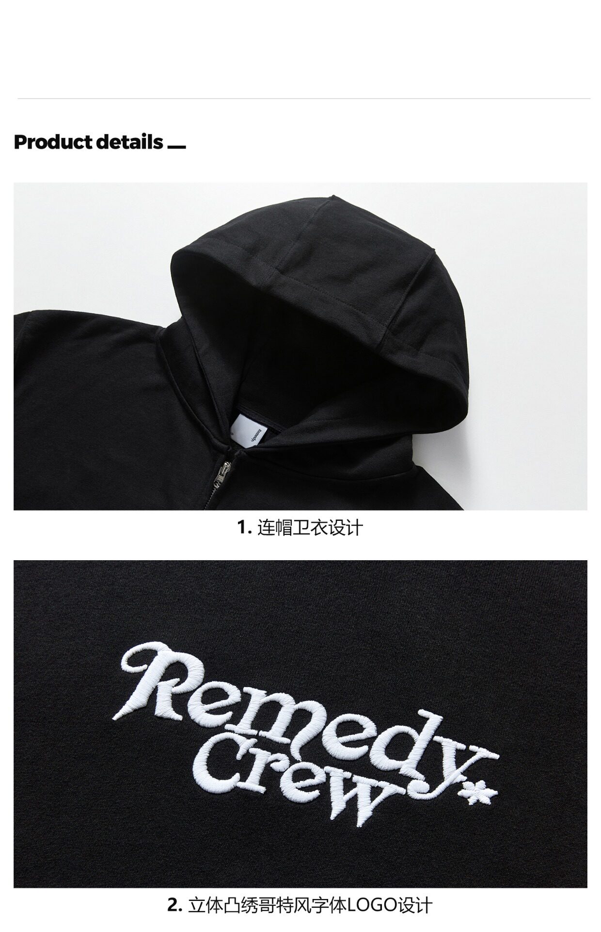 Remedy 22AW秋冬原創Remedy Crew基礎LOGO拉鍊帽衫休閒復古男潮牌
