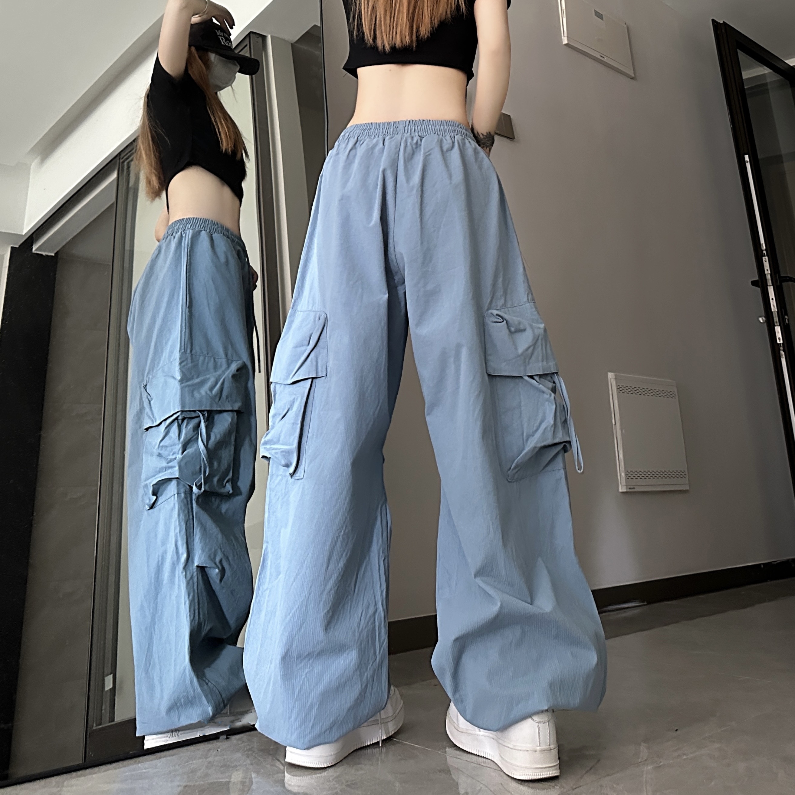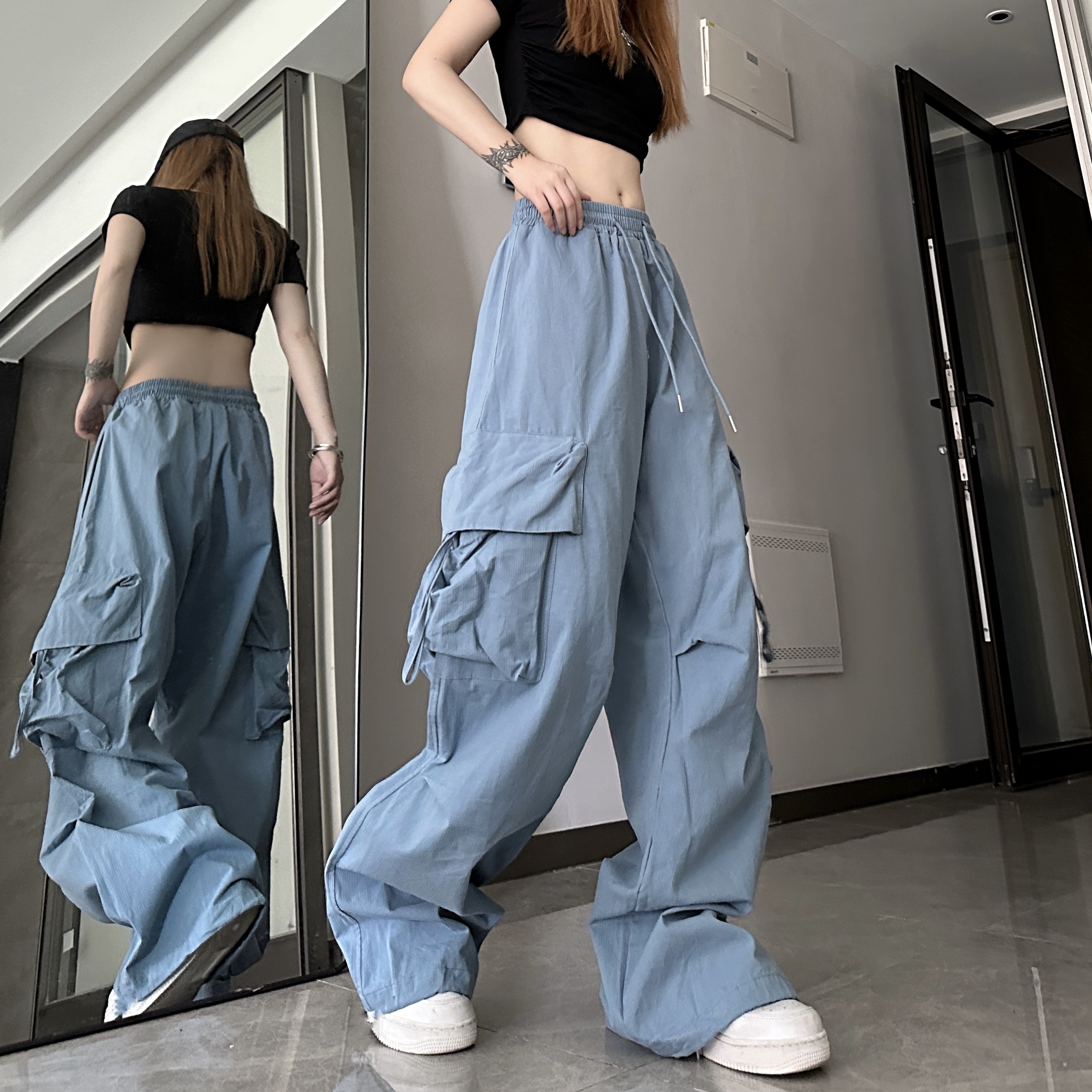 美式復古工裝褲女夏季高腰直筒闊腿設計感小眾寬鬆休閒拖地長褲潮