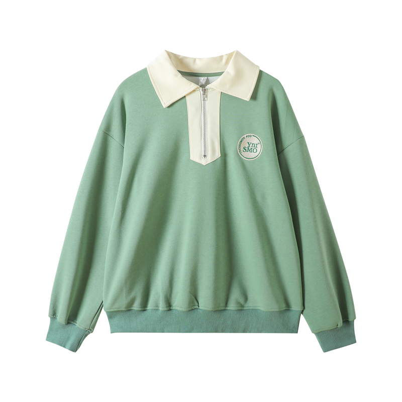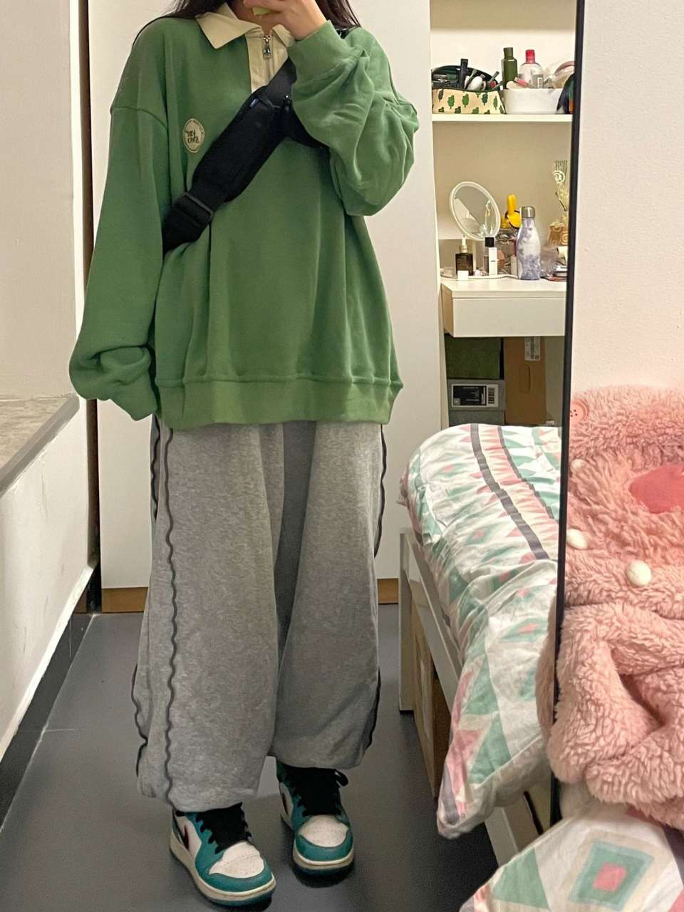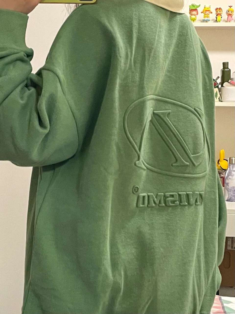 綠色polo領衛衣女春秋冬美式復古oversize寬鬆慵懶風插肩長袖上衣