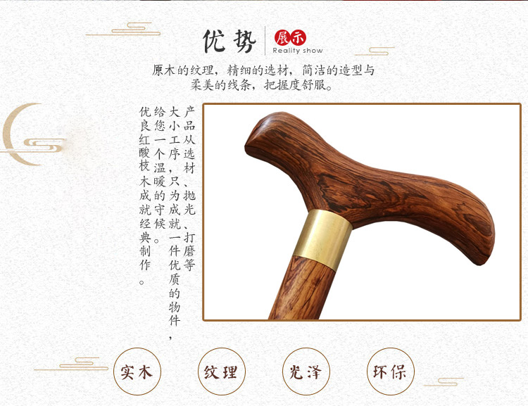 老年人實木柺杖防滑木質手杖輕便木頭柺棍紳士登山文明杖黃花梨木