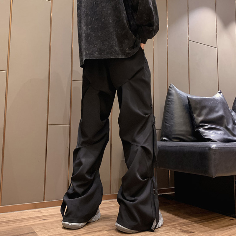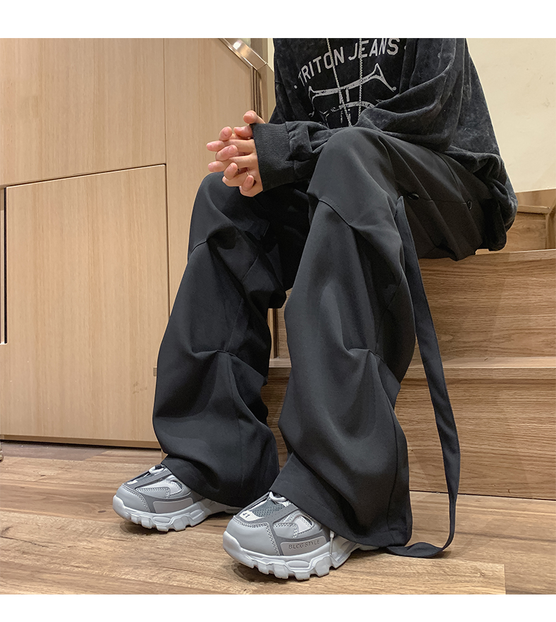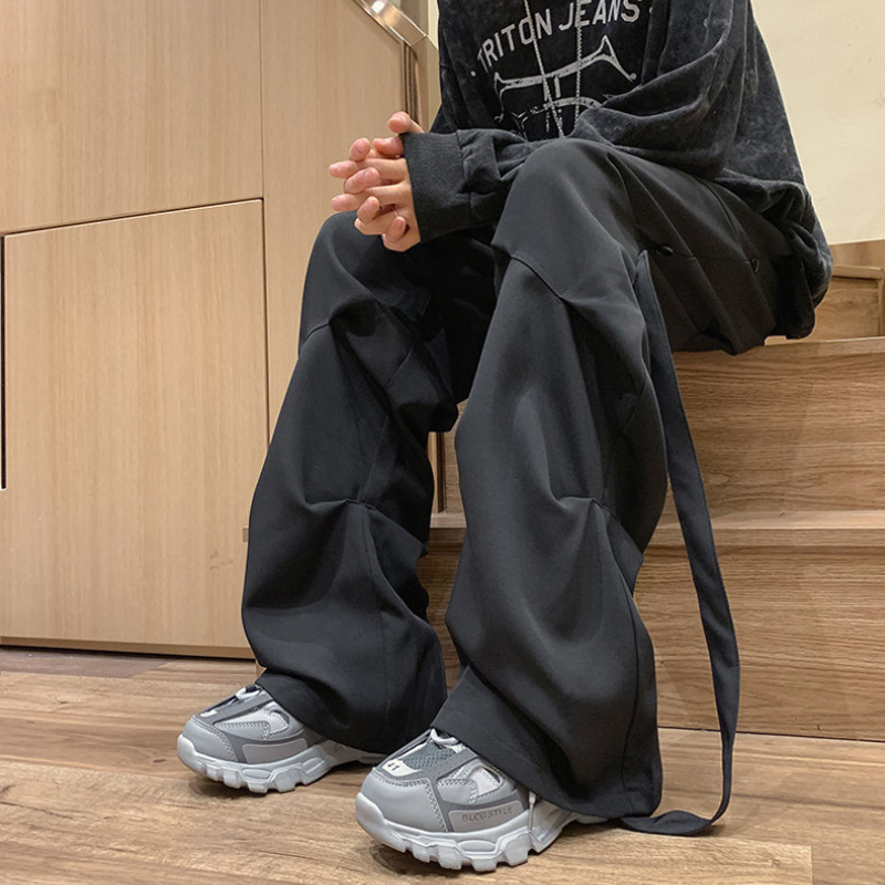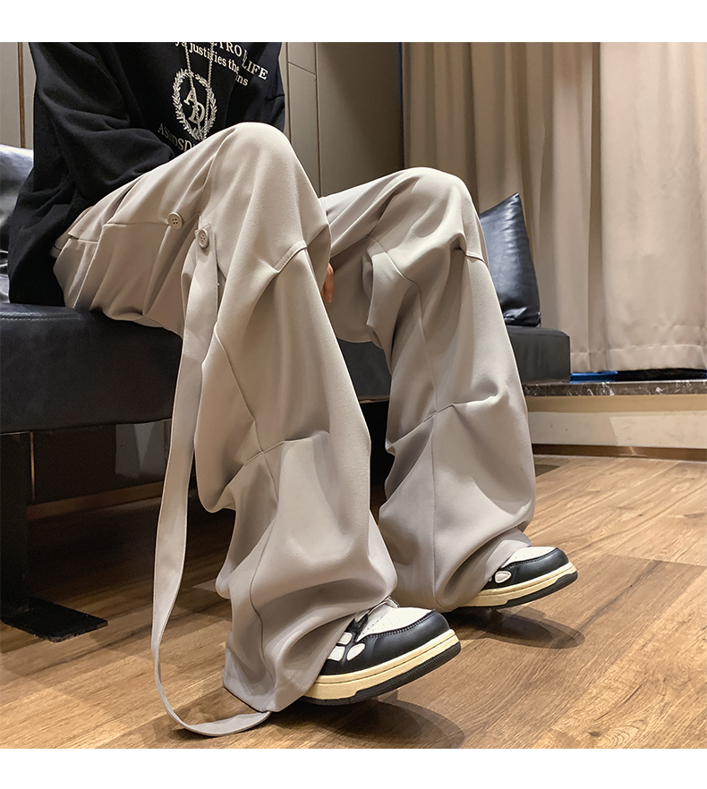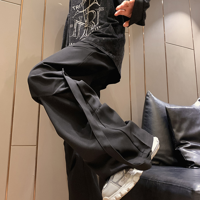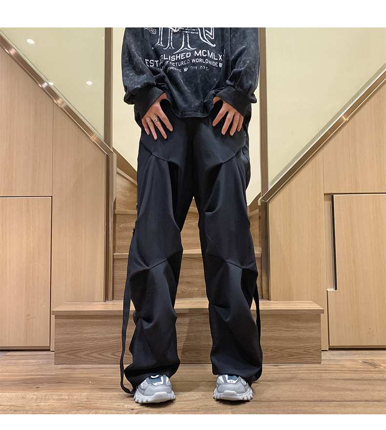 山本耀司男裝高級設計感解構褲子男春秋綁帶褶皺微喇工裝褲直筒褲