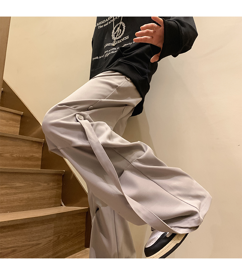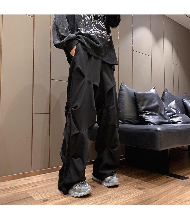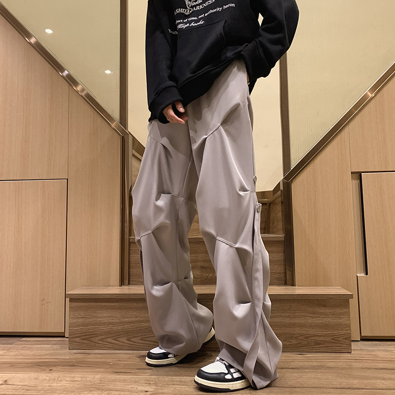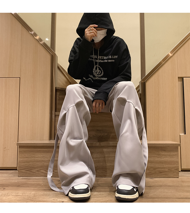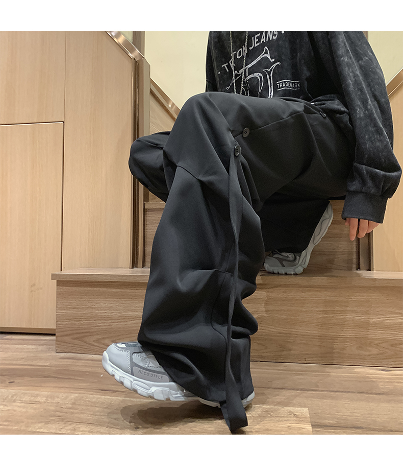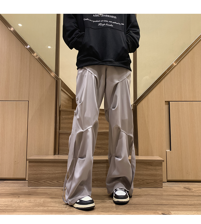 山本耀司男裝高級設計感解構褲子男春秋綁帶褶皺微喇工裝褲直筒褲