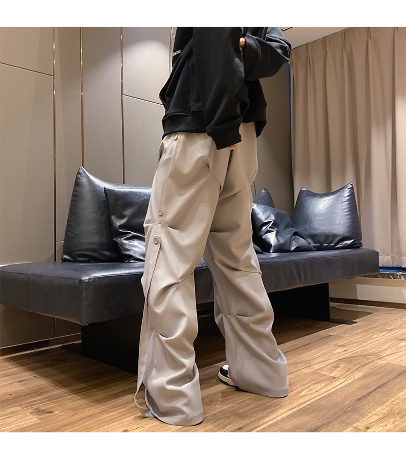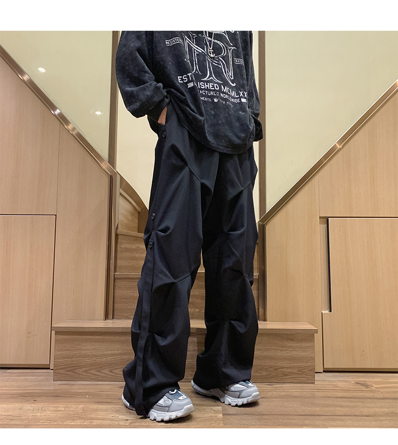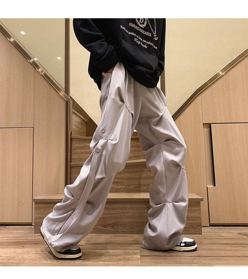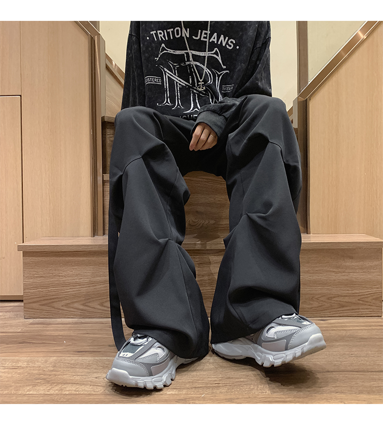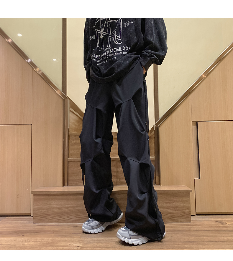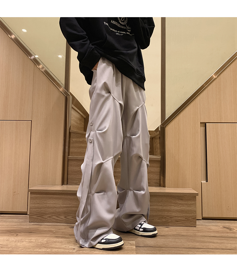 山本耀司男裝高級設計感解構褲子男春秋綁帶褶皺微喇工裝褲直筒褲