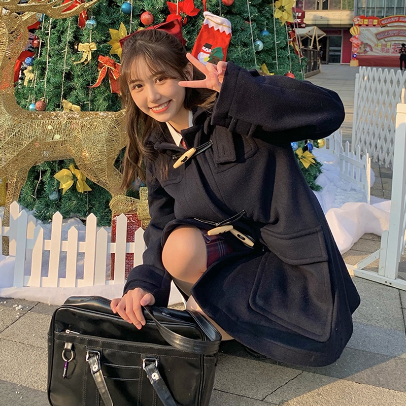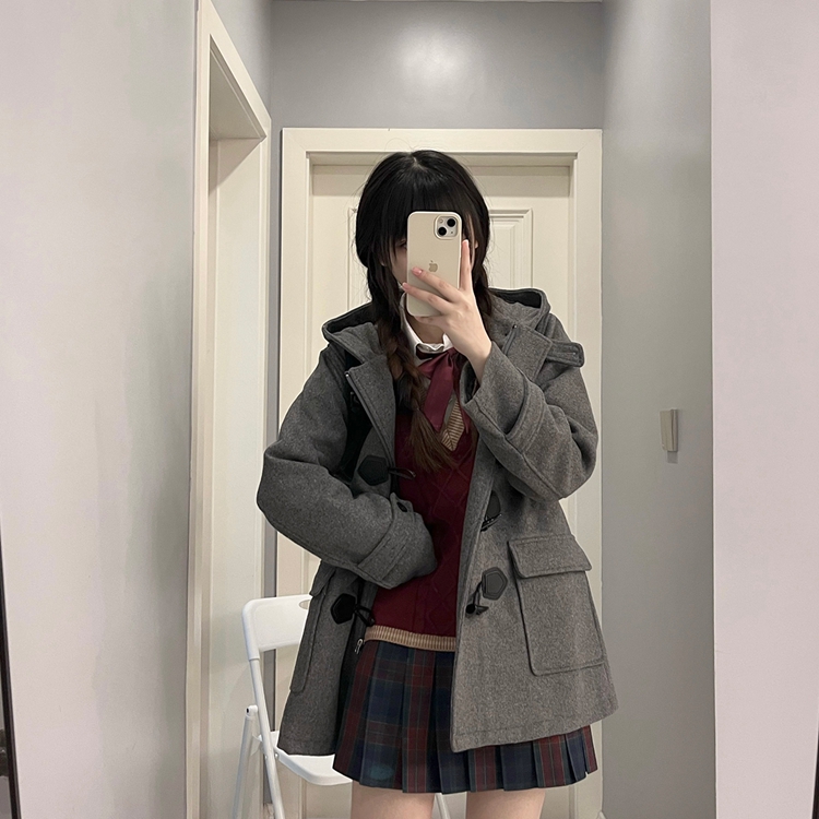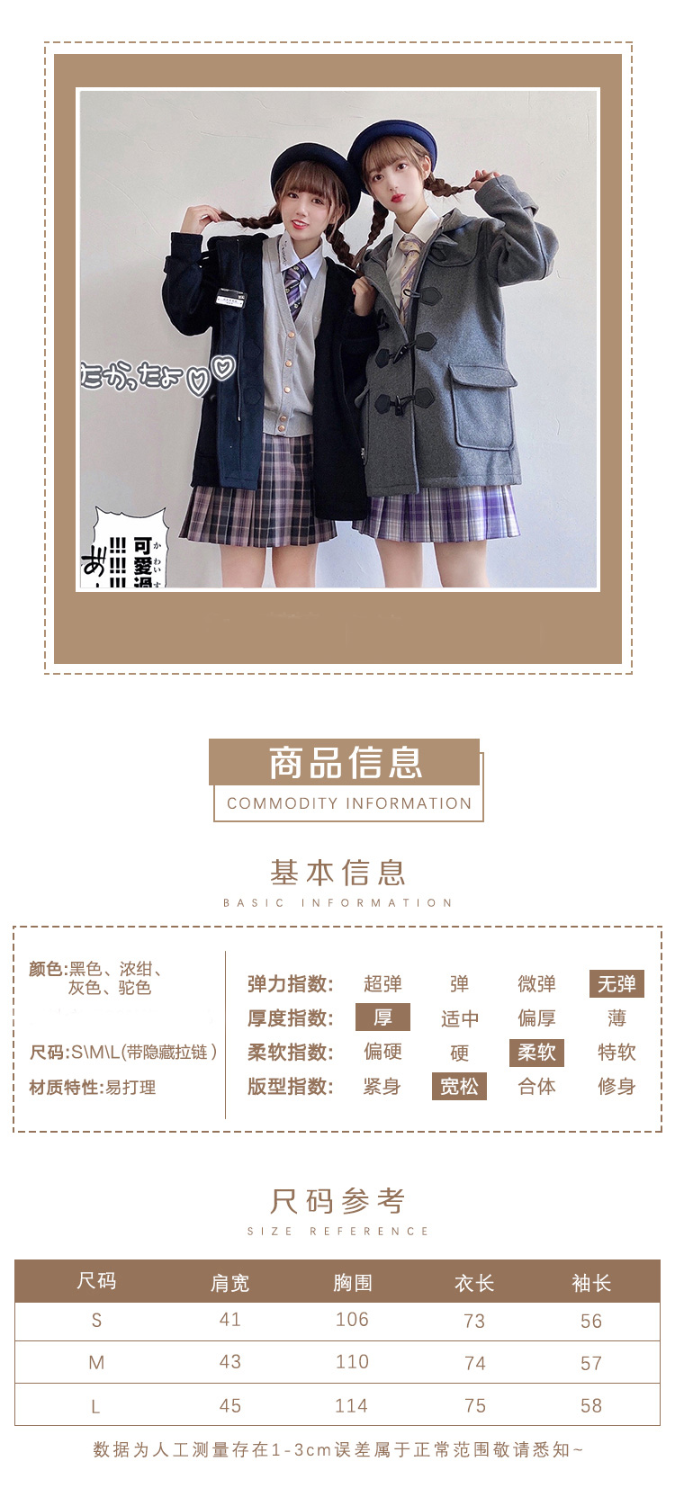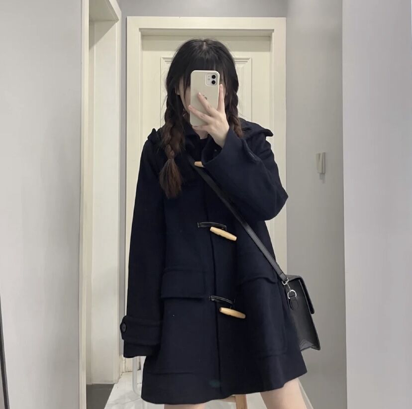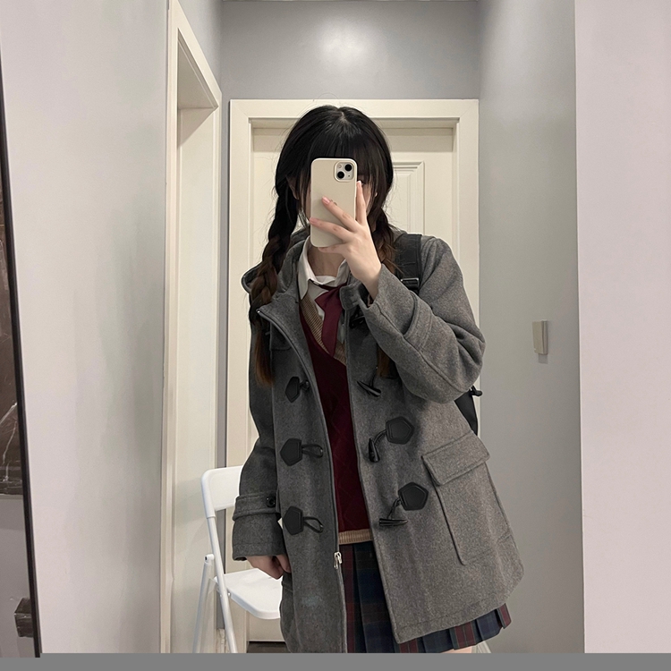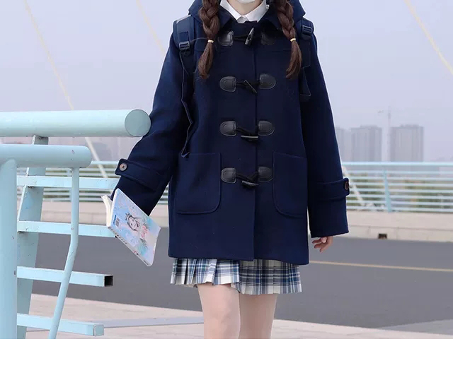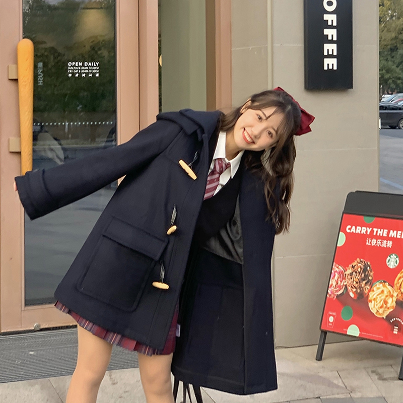 日製校供感jk制服呢子大衣牛角扣毛呢外套女小個子秋冬學院風風衣