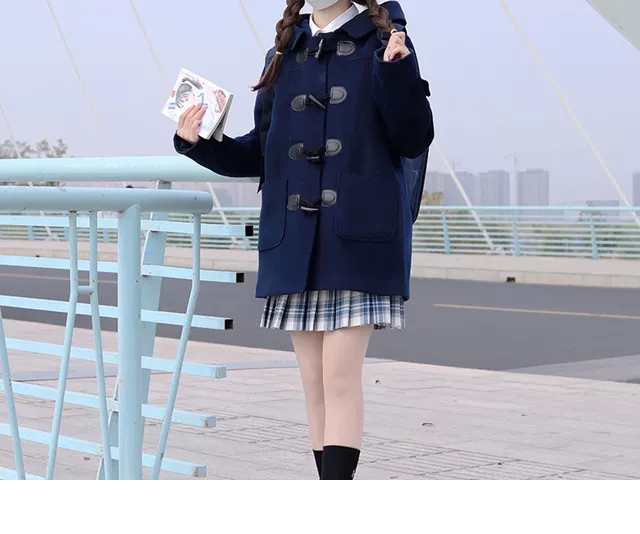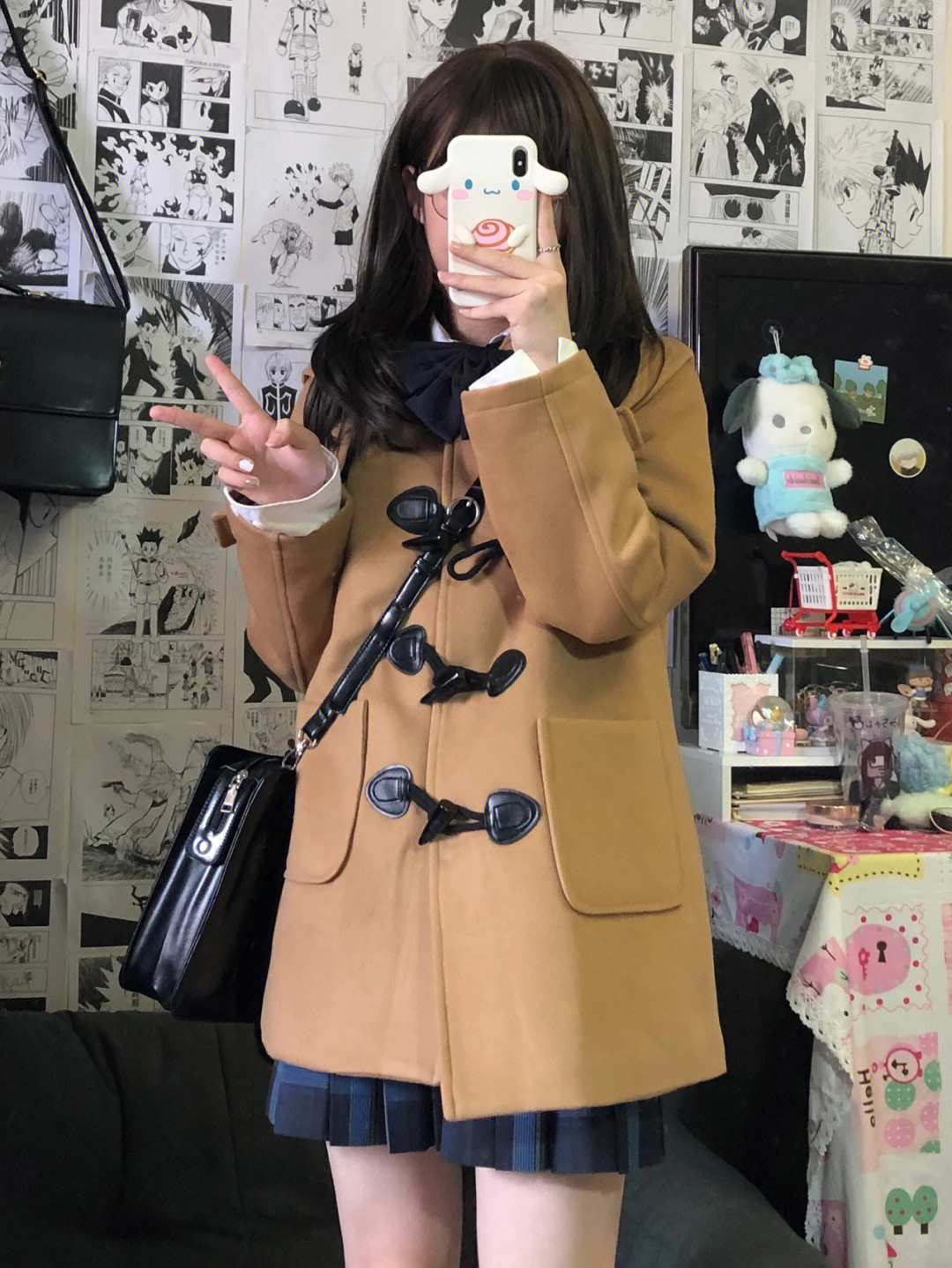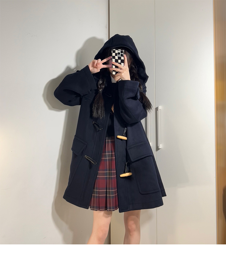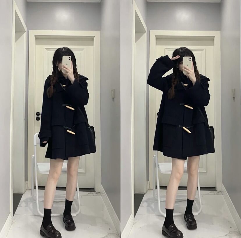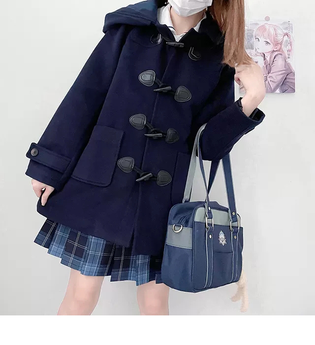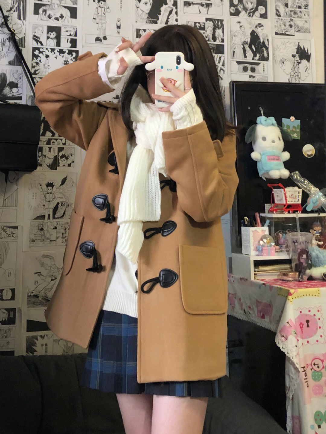 日製校供感jk制服呢子大衣牛角扣毛呢外套女小個子秋冬學院風風衣