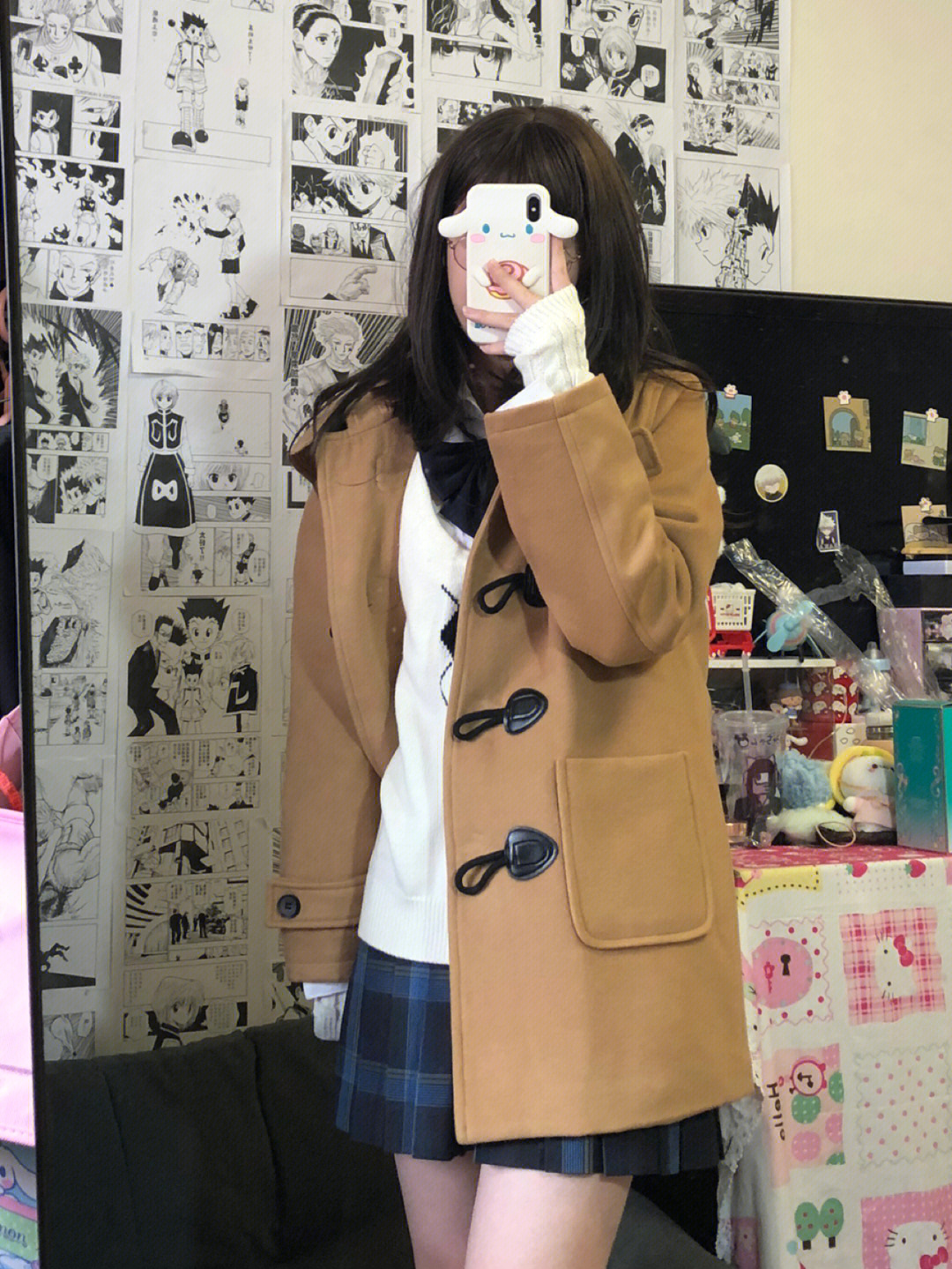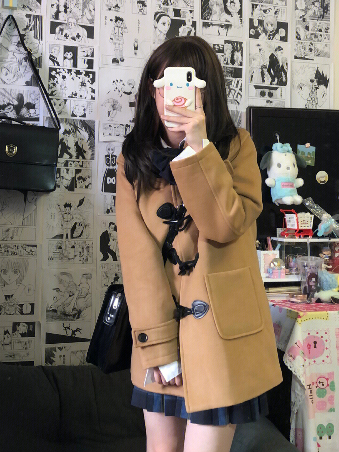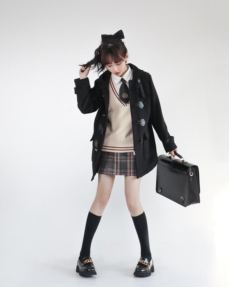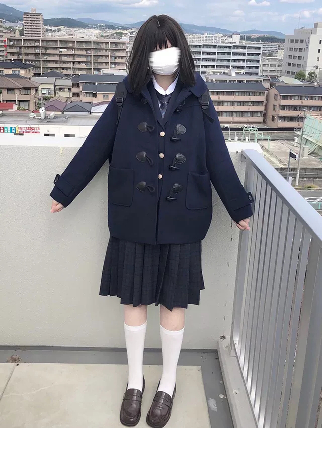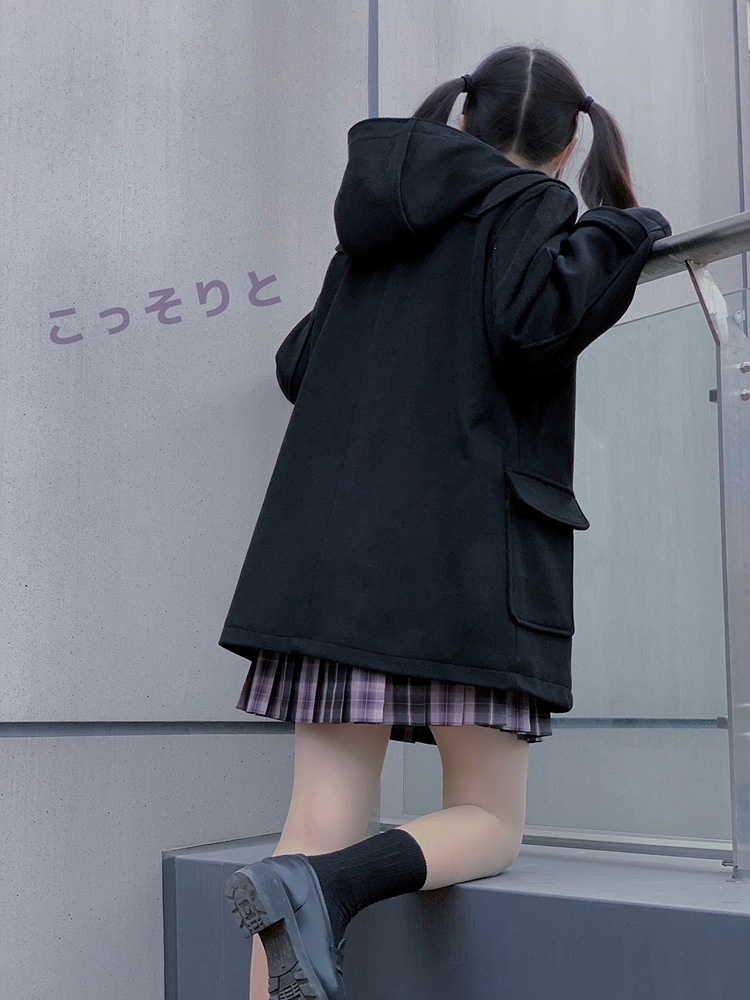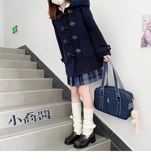 日製校供感jk制服呢子大衣牛角扣毛呢外套女小個子秋冬學院風風衣