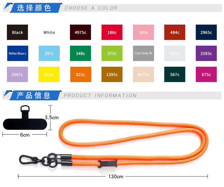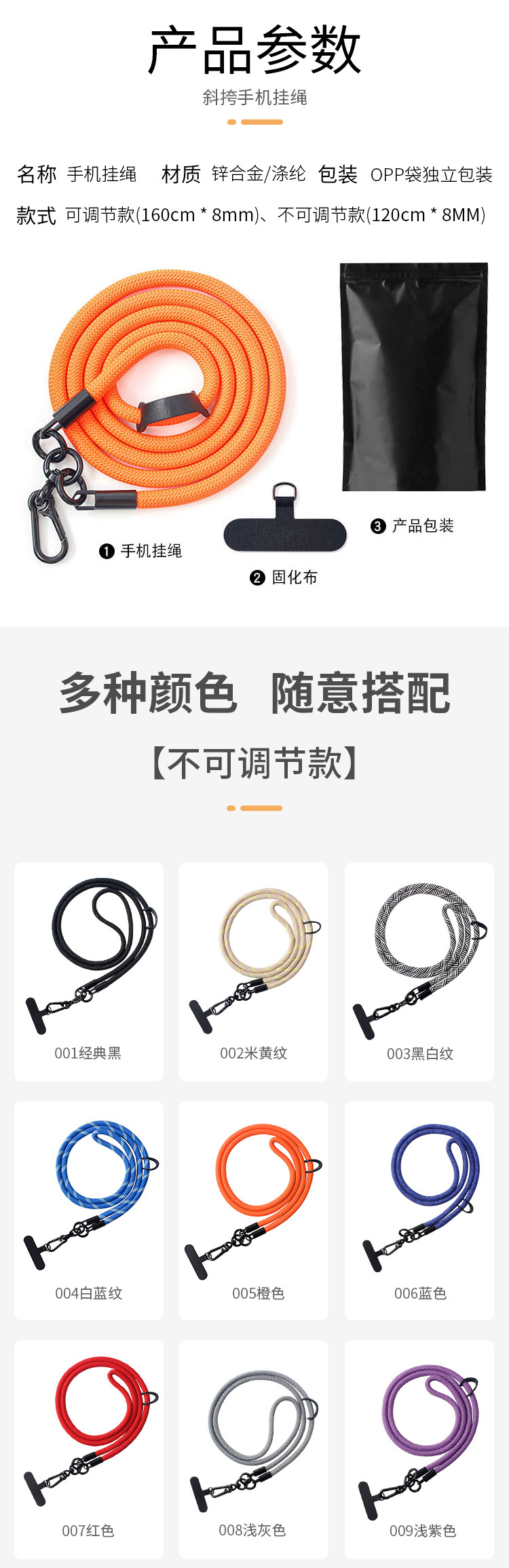 规格 120cm手机挂绳【001经典黑】48股绳芯+送夹片,120cm手机挂绳【002米黄纹】48股绳芯+送夹片,120cm手机挂绳【003黑白纹】48股绳芯+送夹片,120cm手机挂绳【004白蓝纹】48股绳芯+送夹片,120cm手机挂绳【005橙色】48股绳芯+送夹片,120cm手机挂绳【006蓝色】48股绳芯+送夹片,120cm手机挂绳【007红色】48股绳芯+送夹片,120cm手机挂绳【008浅灰色】48股绳芯+送夹片,120cm手机挂绳【009浅紫色】48股绳芯+送夹片,120cm手机挂绳【010军绿色】48股绳芯+送夹片,120cm手机挂绳【011咖色】48股绳芯+送夹片,120cm手机挂绳【012深紫色】48股绳芯+送夹片,120cm手机挂绳【013粉紫纹】48股绳芯+送夹片,120cm手机挂绳【014橙黄纹】48股绳芯+送夹片,120cm手机挂绳【015粉白纹】48股绳芯+送夹片,120cm手机挂绳【016蓝线纹】48股绳芯+送夹片,120cm手机挂绳【017蓝点纹】48股绳芯+送夹片,120cm手机挂绳【018橙白纹】48股绳芯+送夹片,160cm手机挂绳【101黑色】48股绳芯+送夹片,160cm手机挂绳【102黑白纹】48股绳芯+送夹片,160cm手机挂绳【103浅蓝白纹】48股绳芯+送夹片夹片,160cm手机挂绳【104紫白纹】48股绳芯+送夹片,160cm手机挂绳【105粉紫纹】48股绳芯+送夹片,160cm手机挂绳【106彩虹色】48股绳芯+送夹片,160cm手机挂绳【107鲜橙色】48股绳芯+送夹片