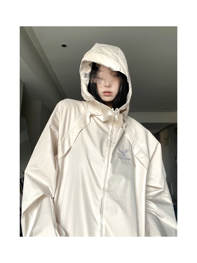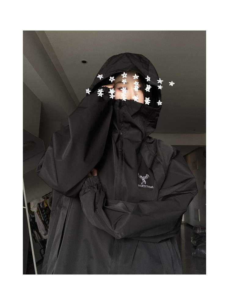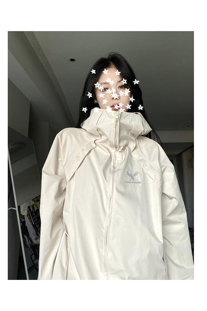 國潮簡約機能風衝鋒衣女秋冬防水寬鬆設計感潮牌刺繡戶外拉鍊外套