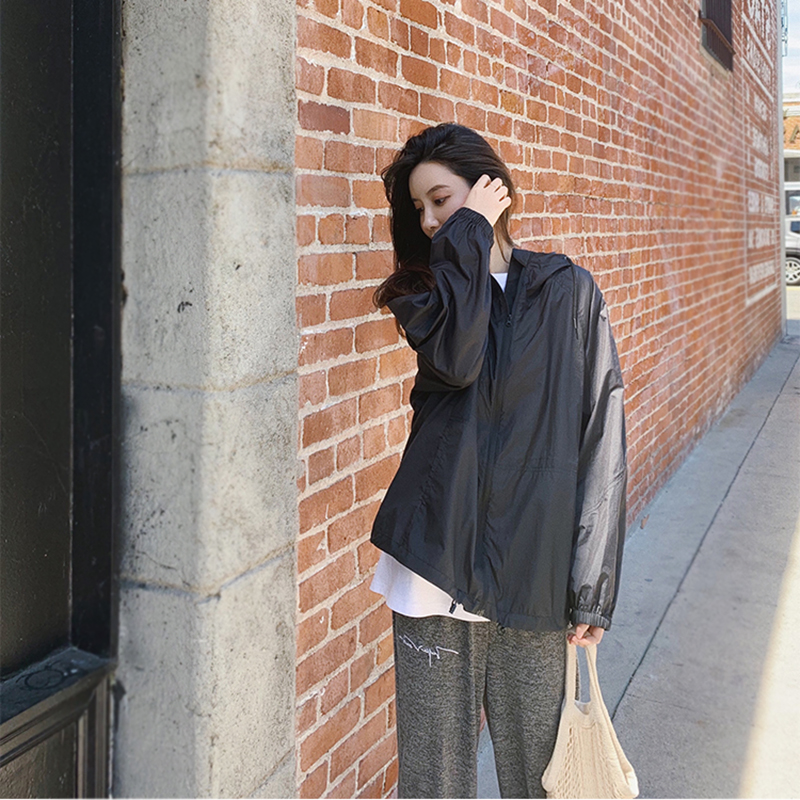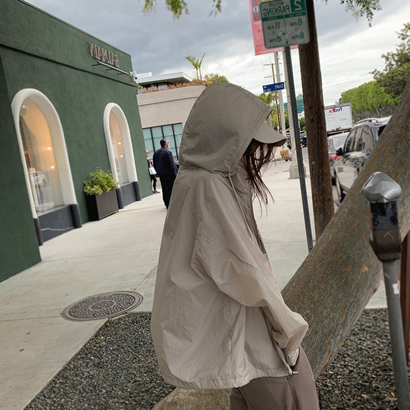 連帽開衫長袖防曬衣女夏季寬鬆抗UV透氣百搭薄款防曬服短外套