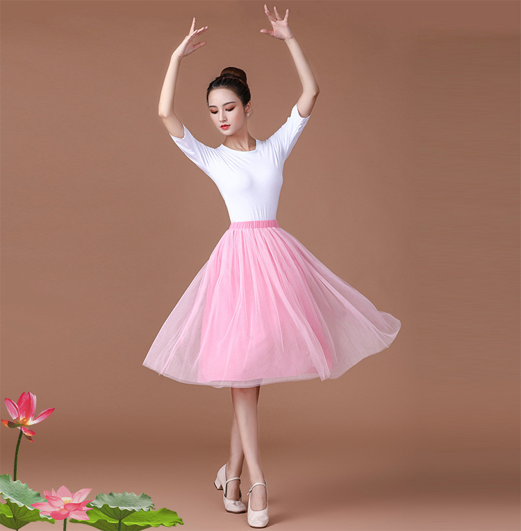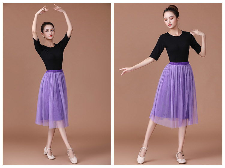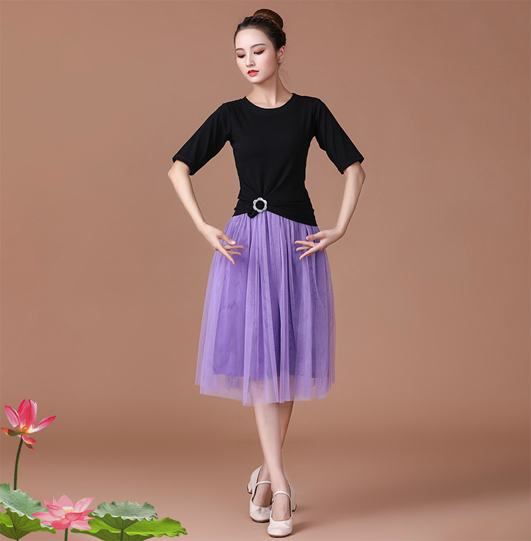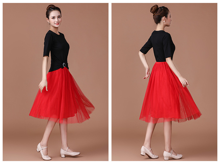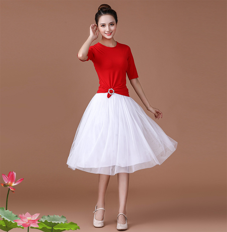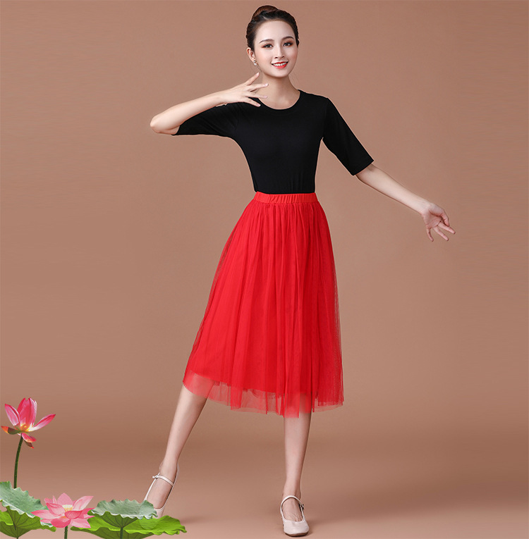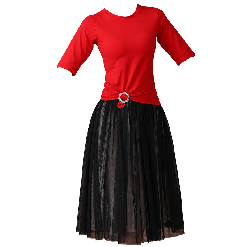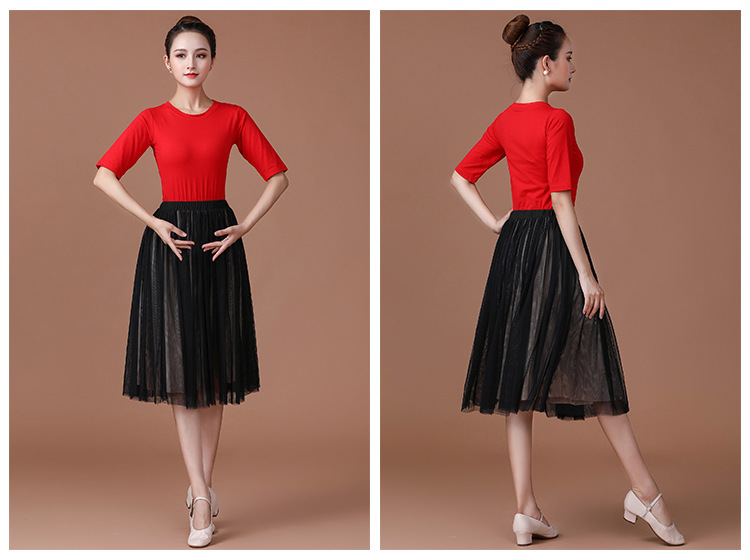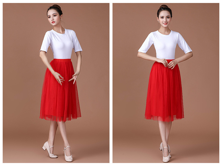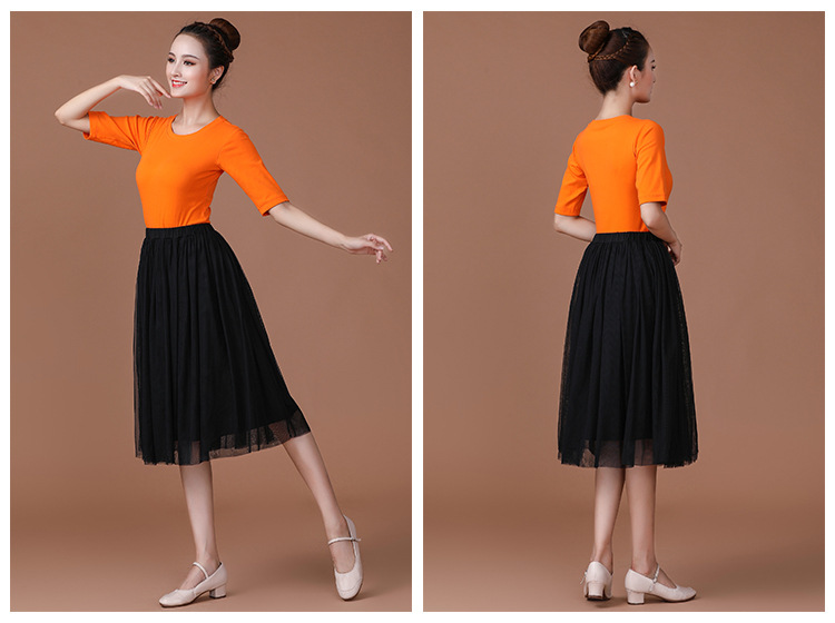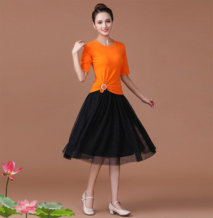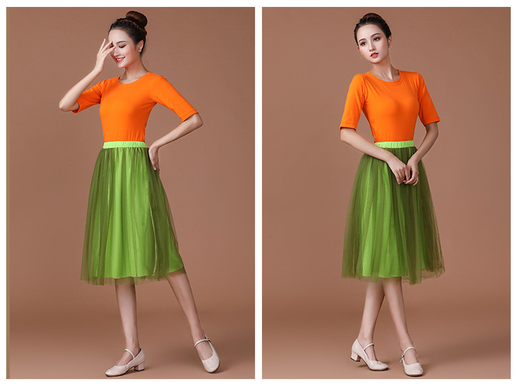 春夏中老年跳舞舞蹈服衣裙广场舞服装新款套装中袖中长网纱裙套装