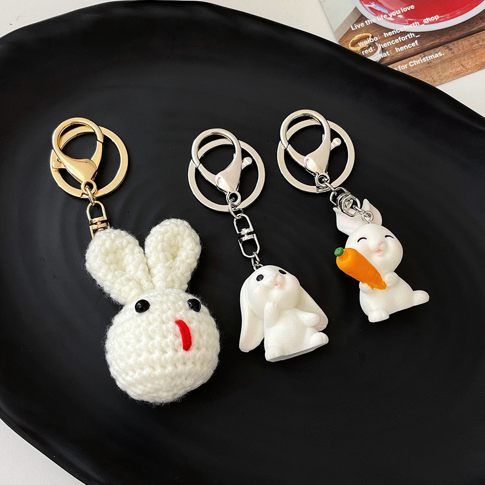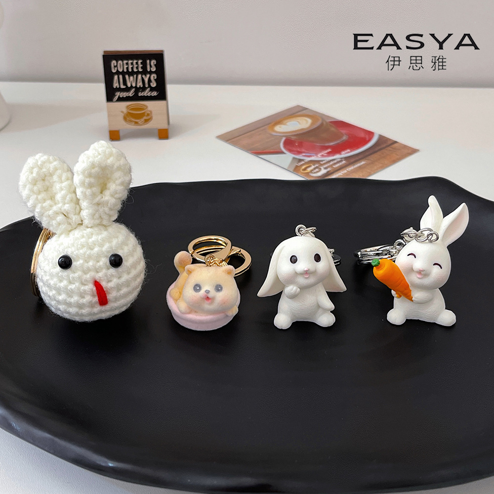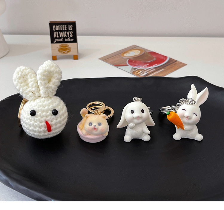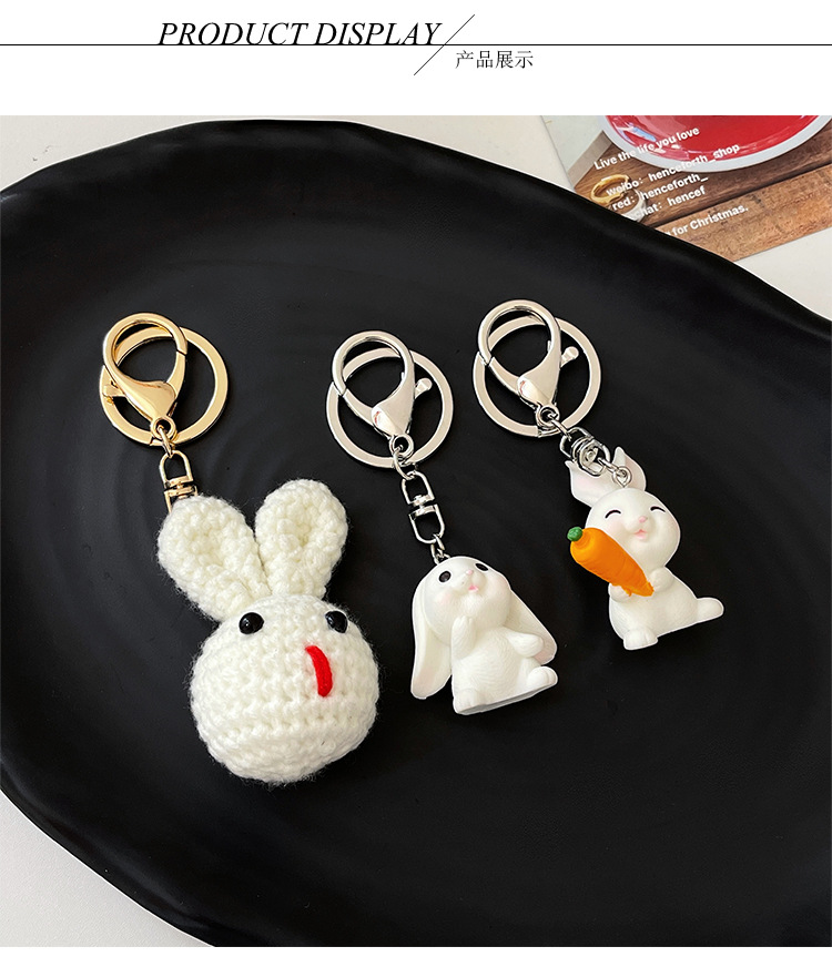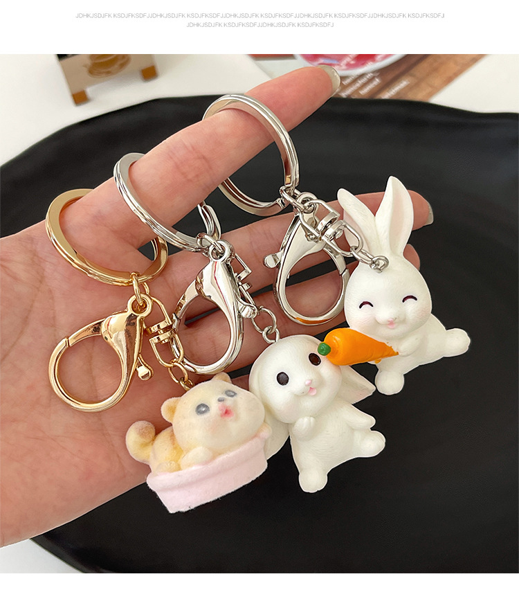 跨境卡通宠物吊坠钥匙扣可爱兔子挂件女包配饰猫咪钥匙链挂饰批发