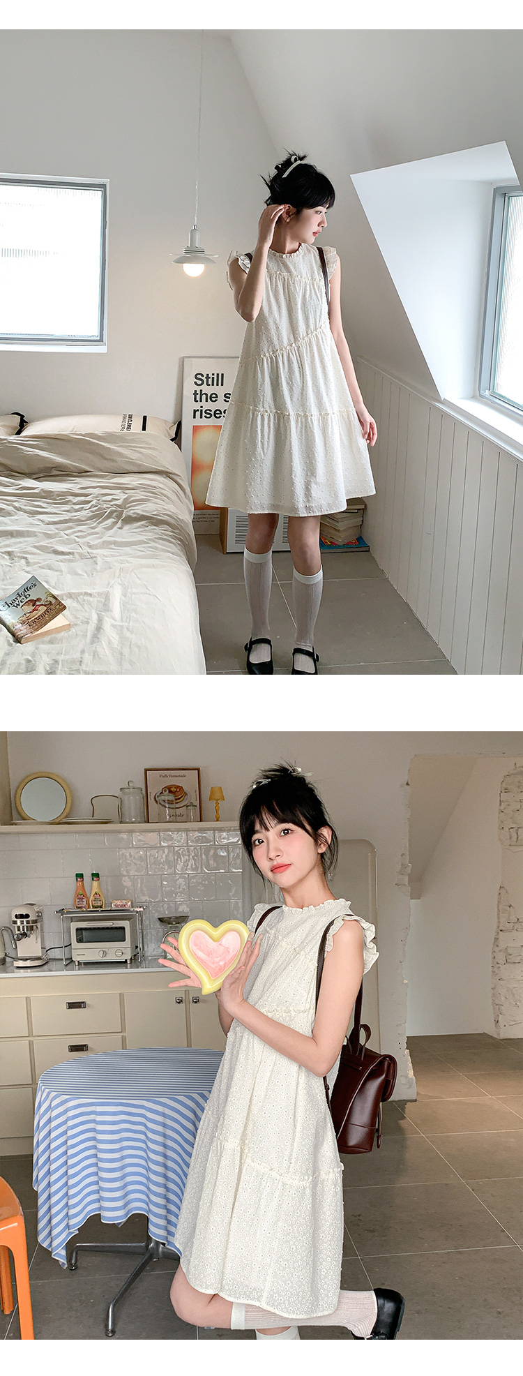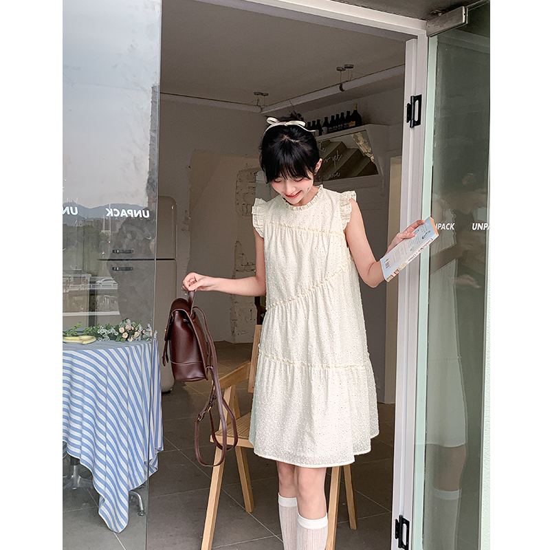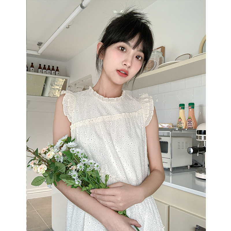 【現貨】忠犬小八梨形自制雛菊少女花邊A型顯瘦連衣中裙少女春夏