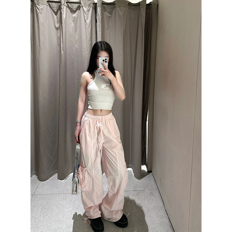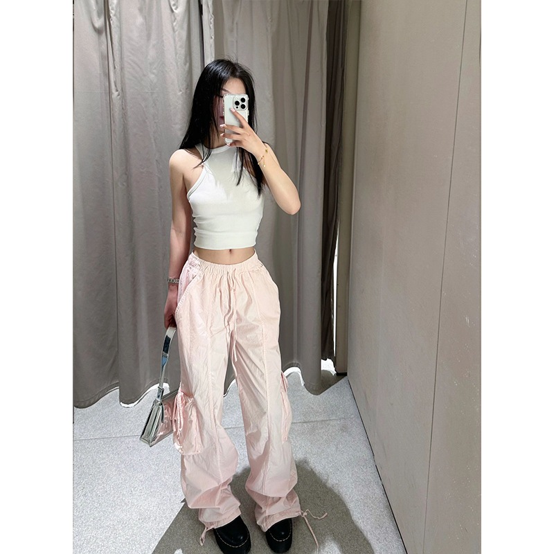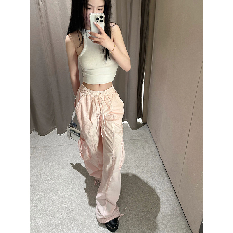 粉色辣妹高腰褲子直筒寬鬆工裝褲女款夏季薄款小個子5520005 644
