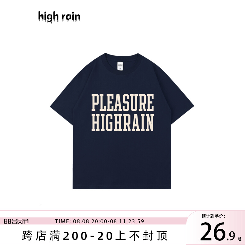high rain 小眾美式字母短袖T恤男女街頭風嘻哈情侶半袖T恤夏季