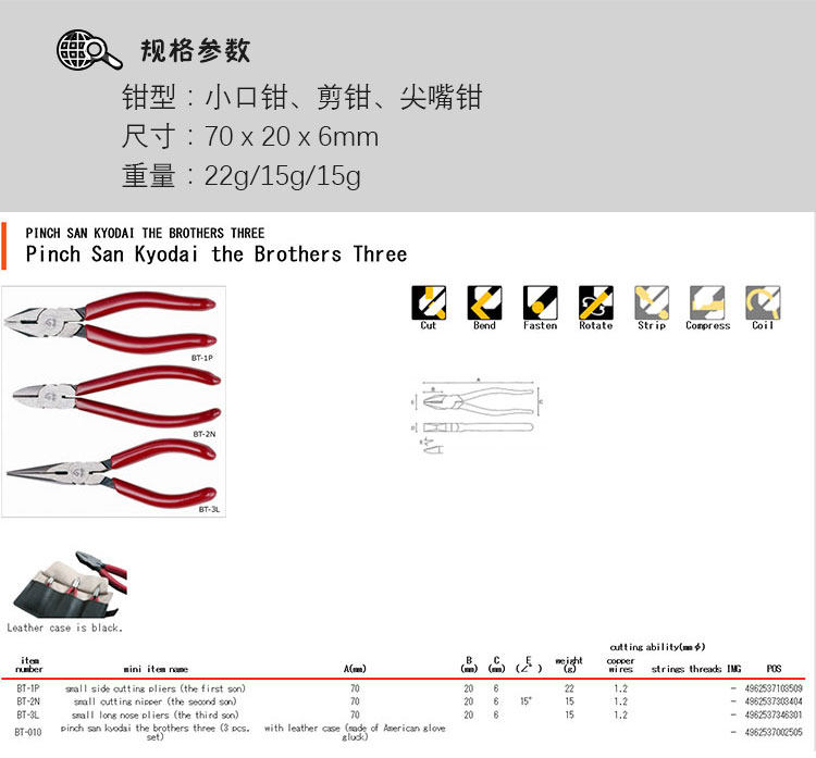顏色分類 三兄弟套裝,斜口鉗單把,皮套單個,迷你千斤頂