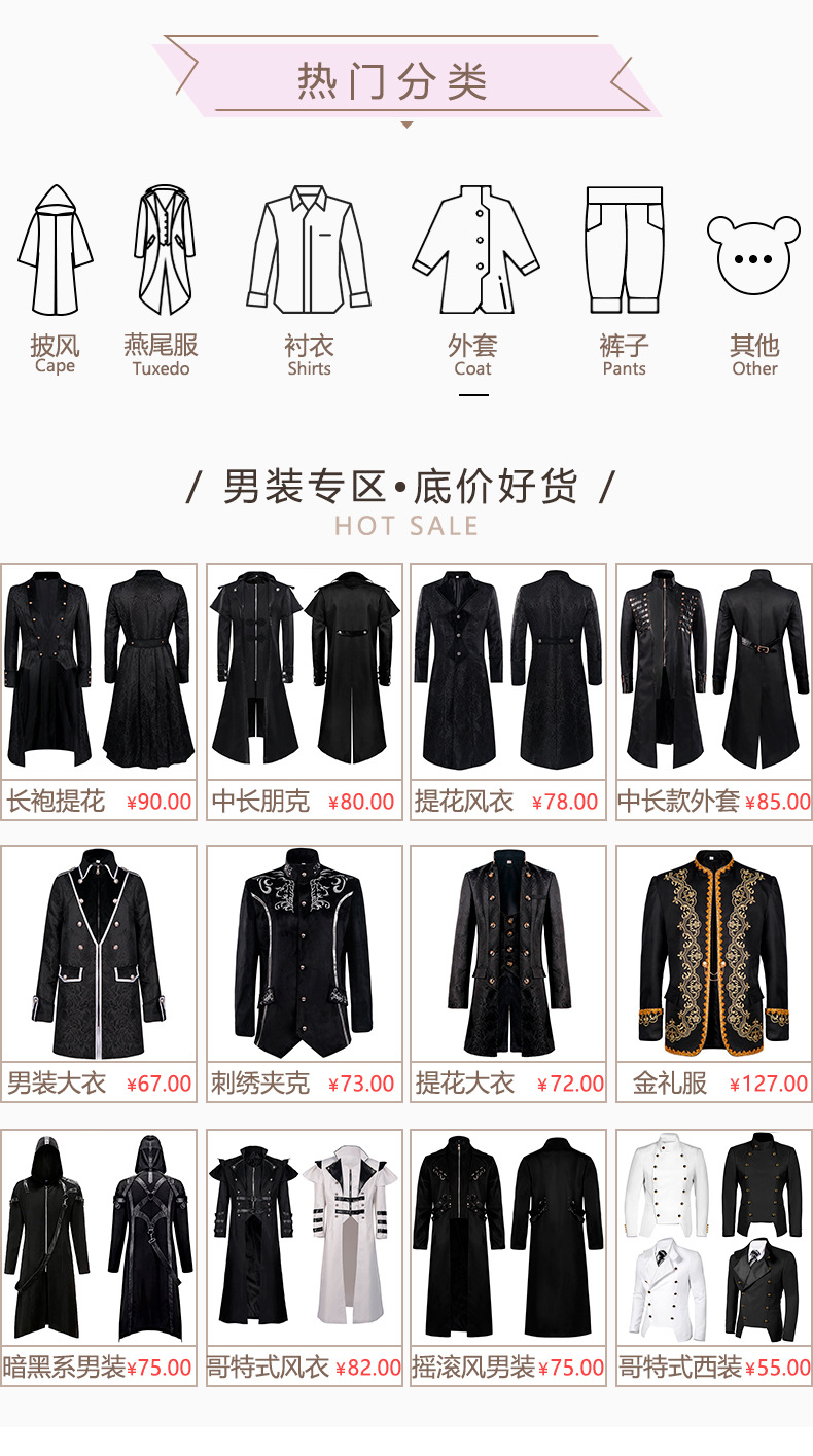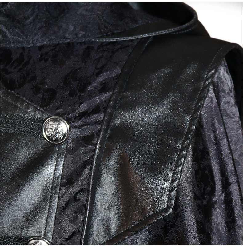 万圣诞节欧美男士蒸汽复古装制服立领黑色皮革朋克哥特式斗篷大衣
