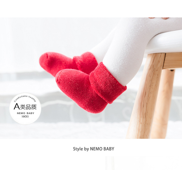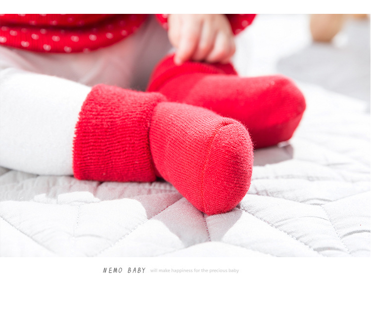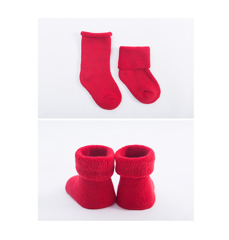 本命年加厚宝宝毛圈袜红色吉祥新年婴儿袜中筒毛巾保暖新生儿袜子