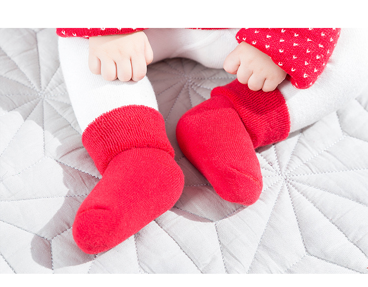 精梳棉加厚宝宝毛圈袜0-1-3岁大红色吉祥新年袜柔软中筒保暖袜子 2.60
