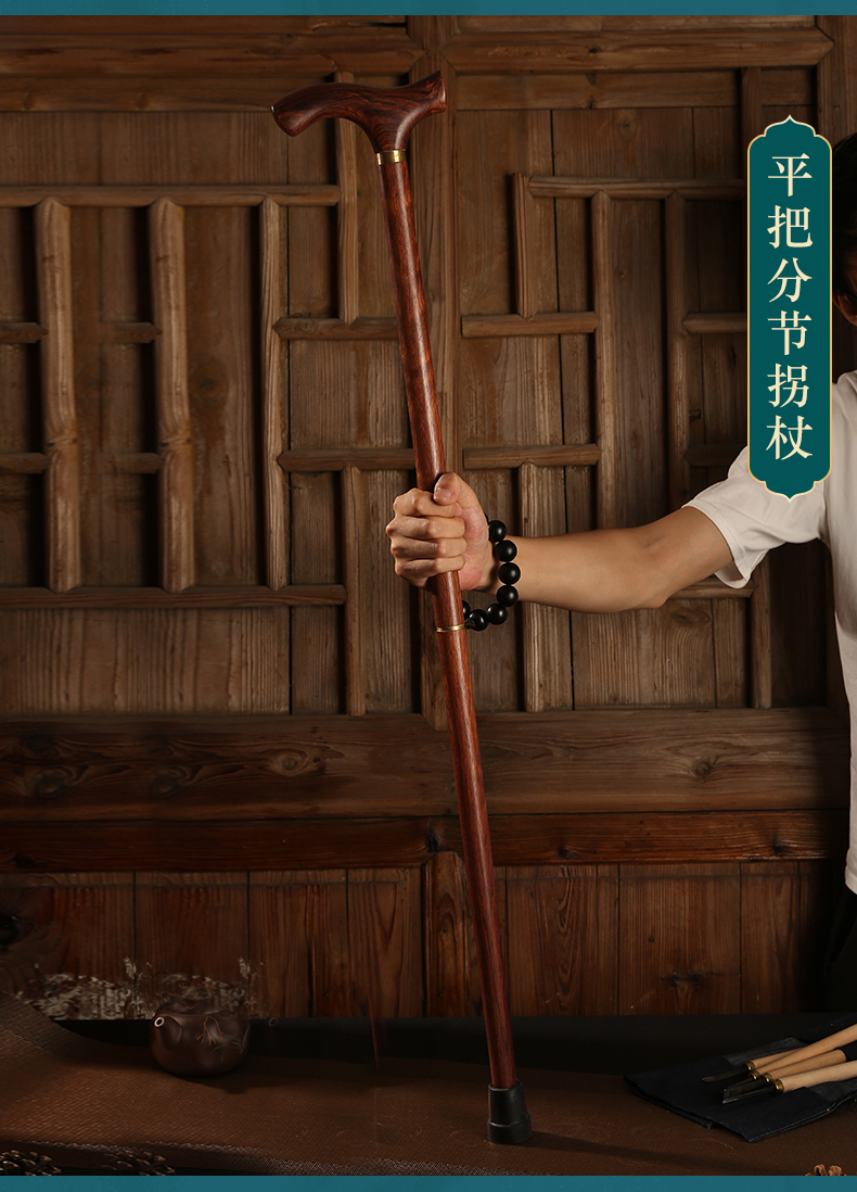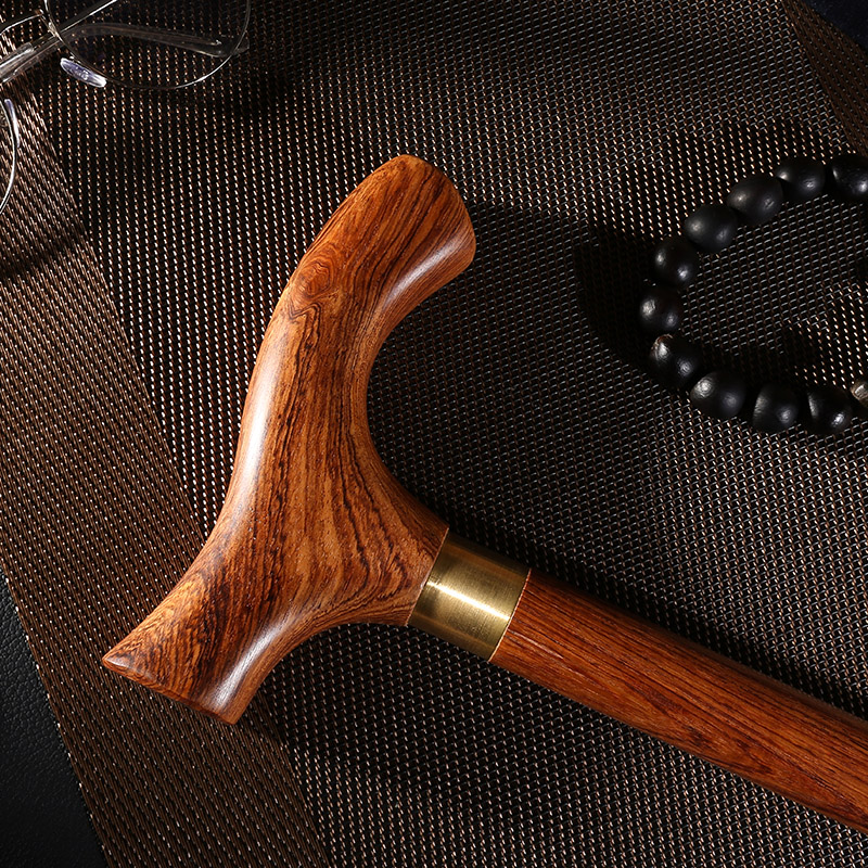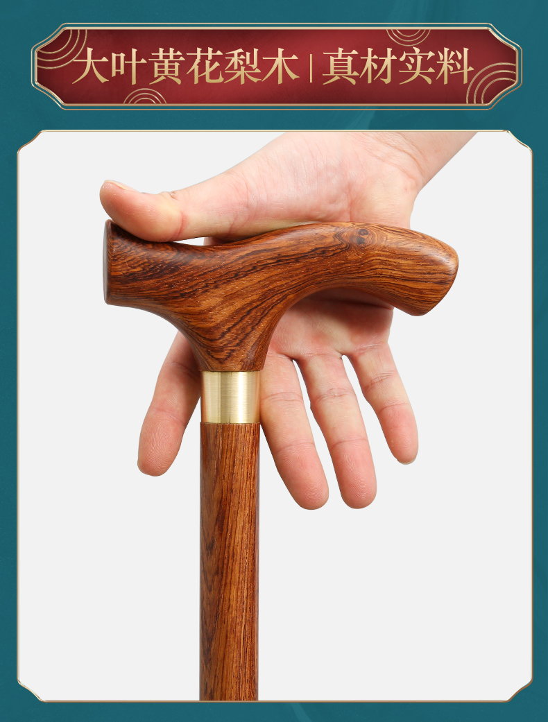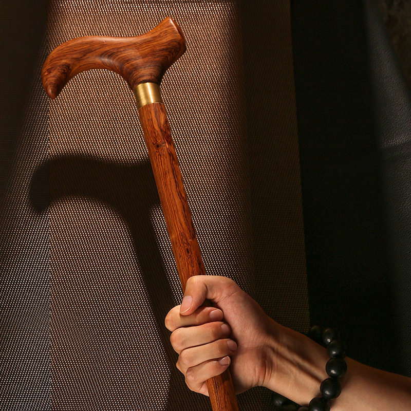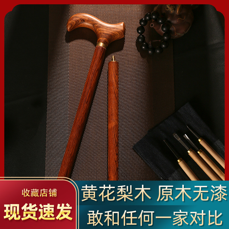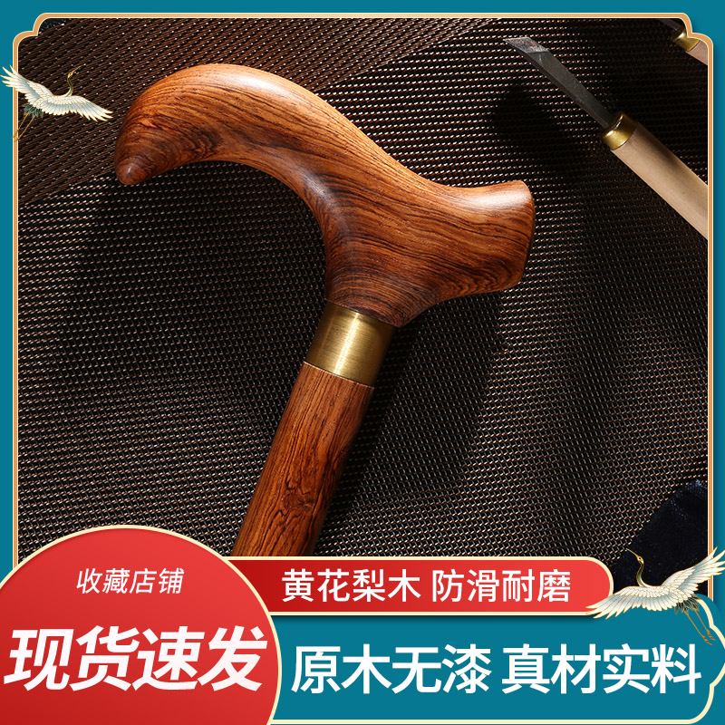 紅木老人柺杖防滑實木柺杖老年人手杖木質大葉黃花梨木柺杖柺棍