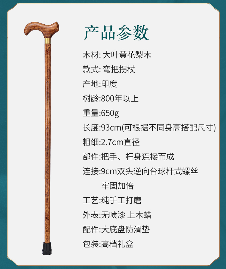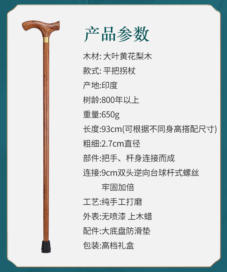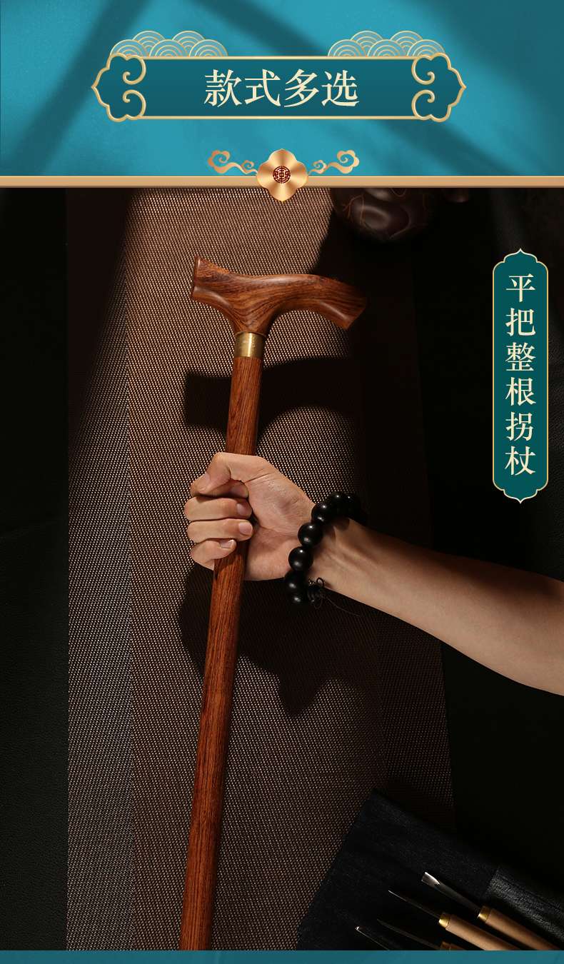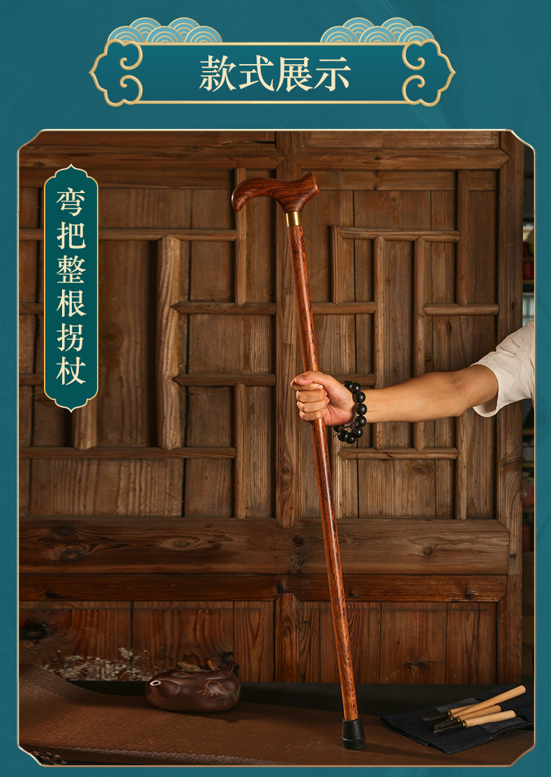 紅木老人柺杖防滑實木柺杖老年人手杖木質大葉黃花梨木柺杖柺棍