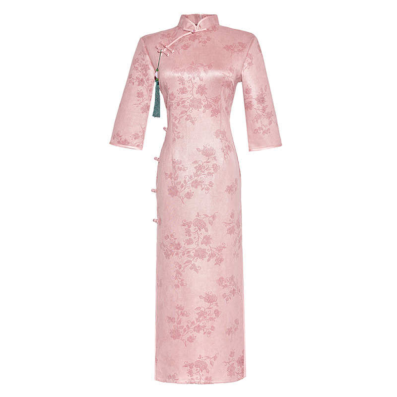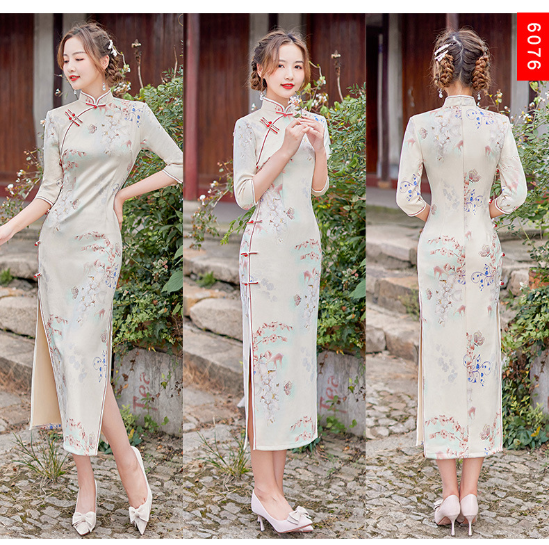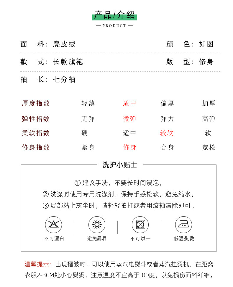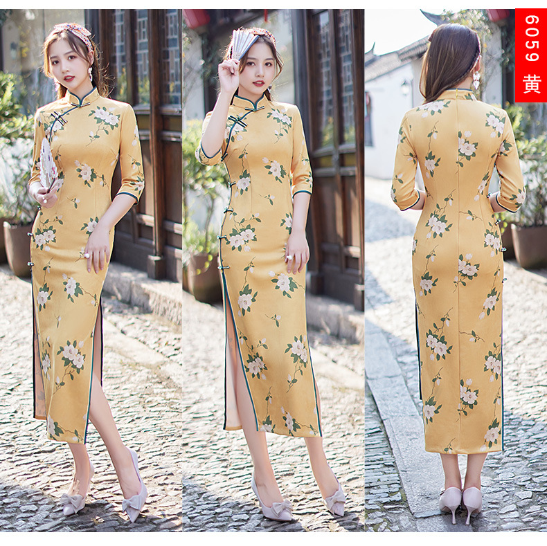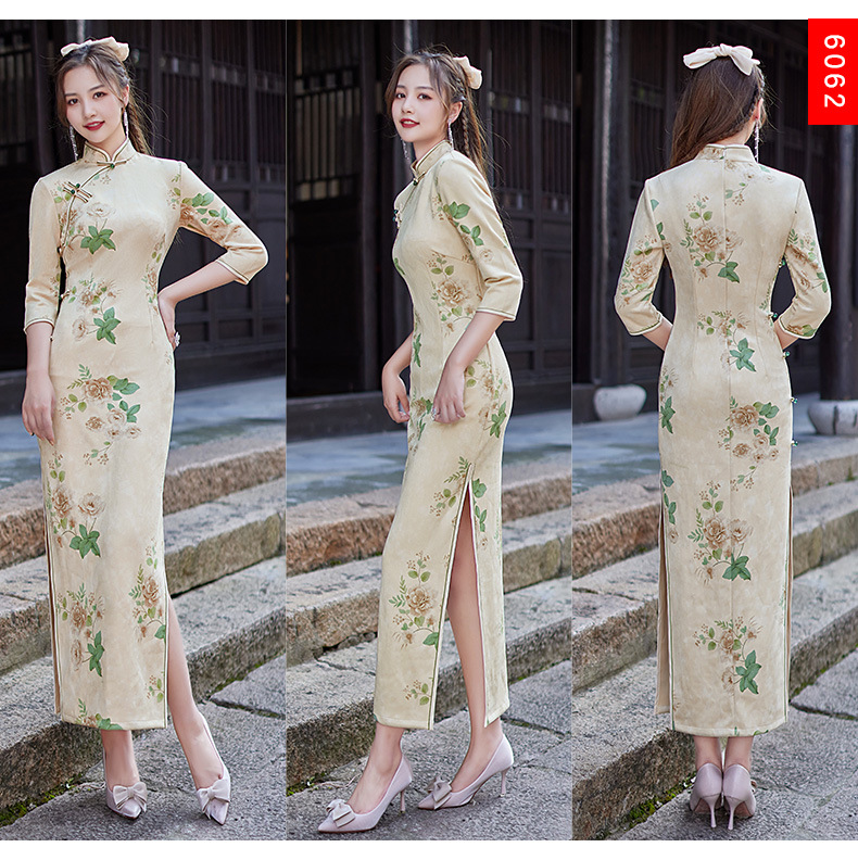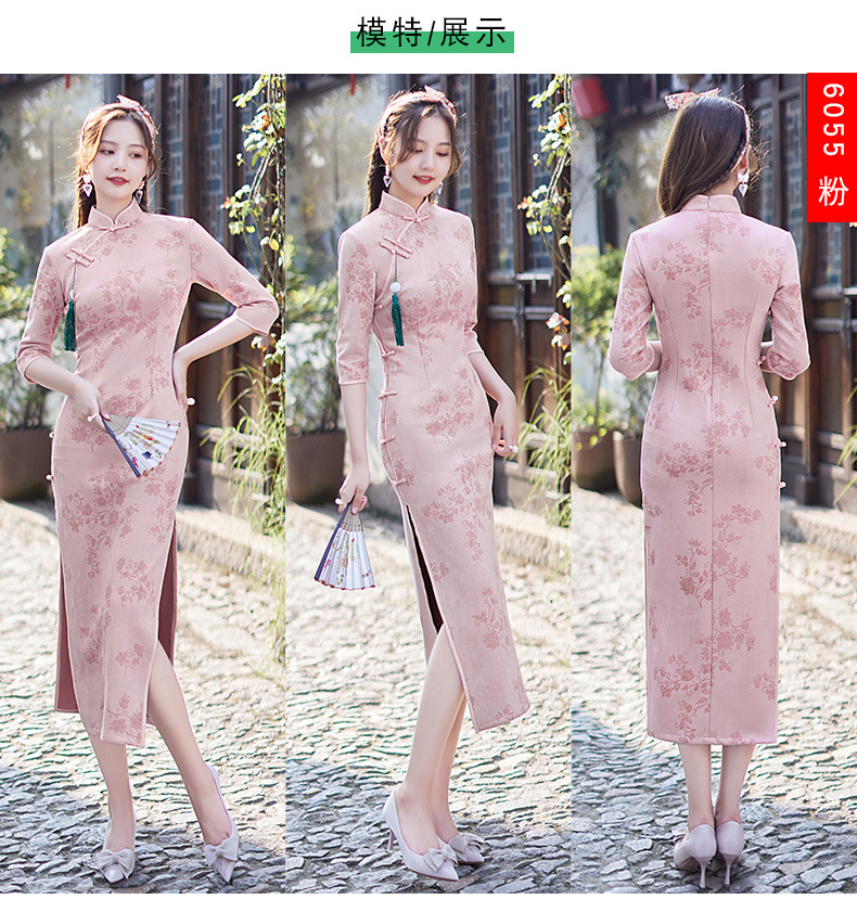 麂皮绒单层长款七分袖日常旗袍 新款改良秋冬装中国风连衣裙