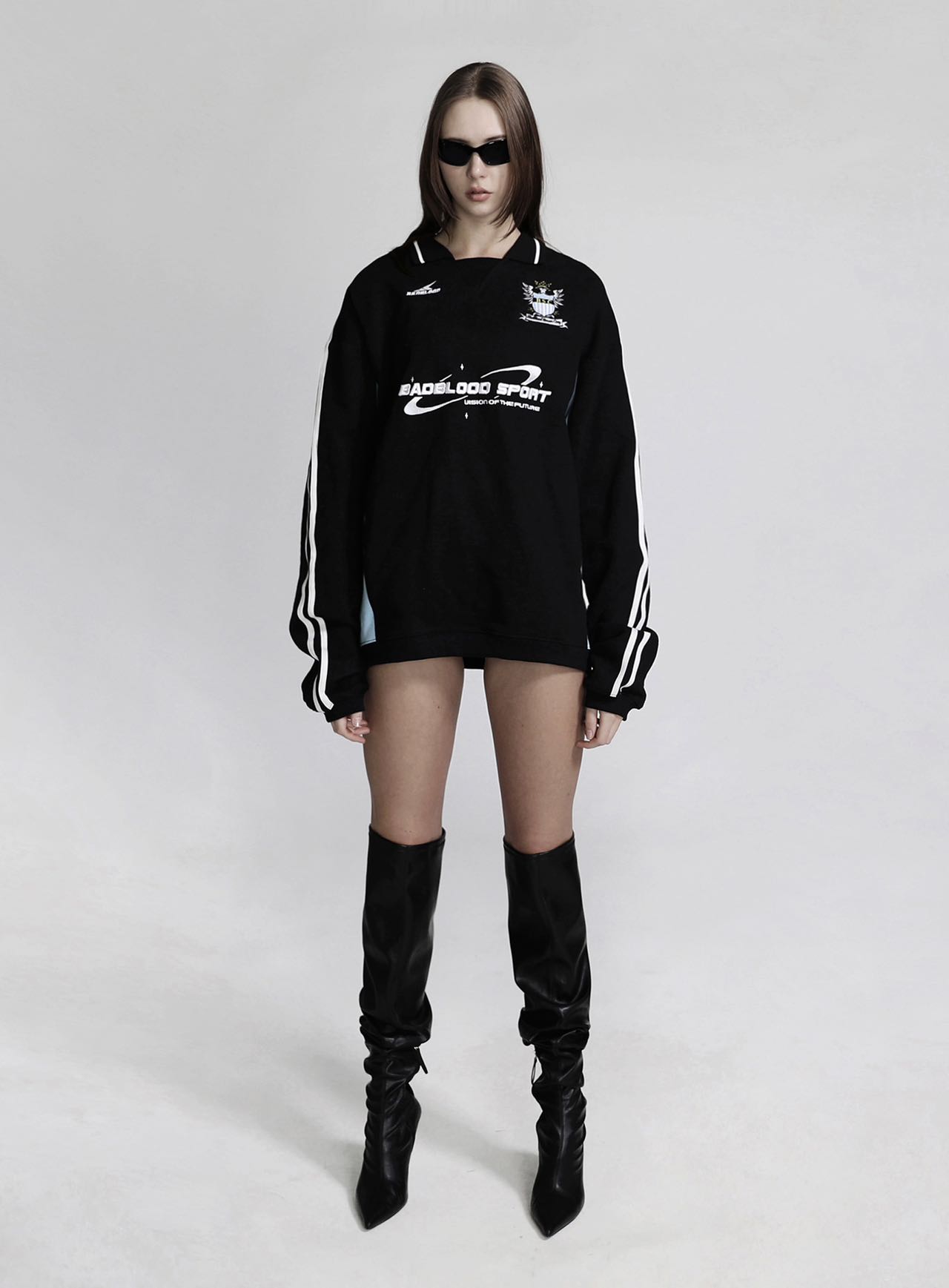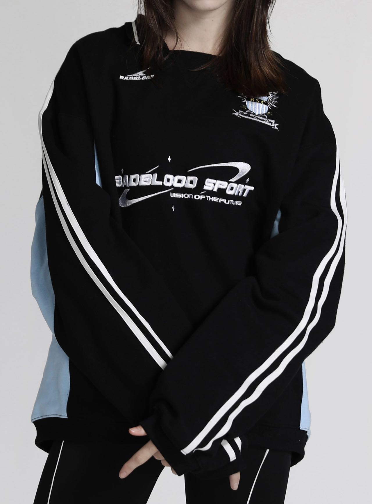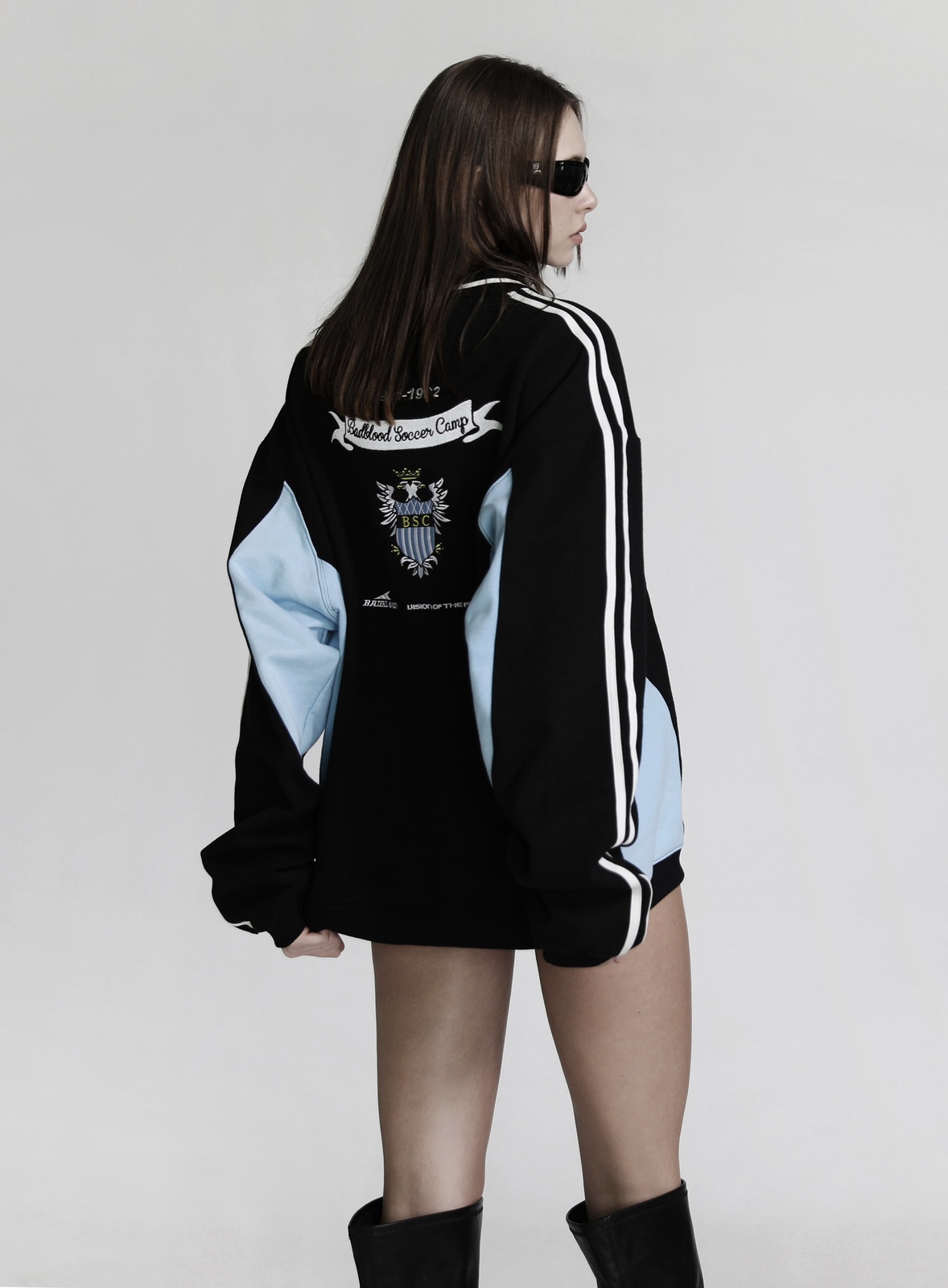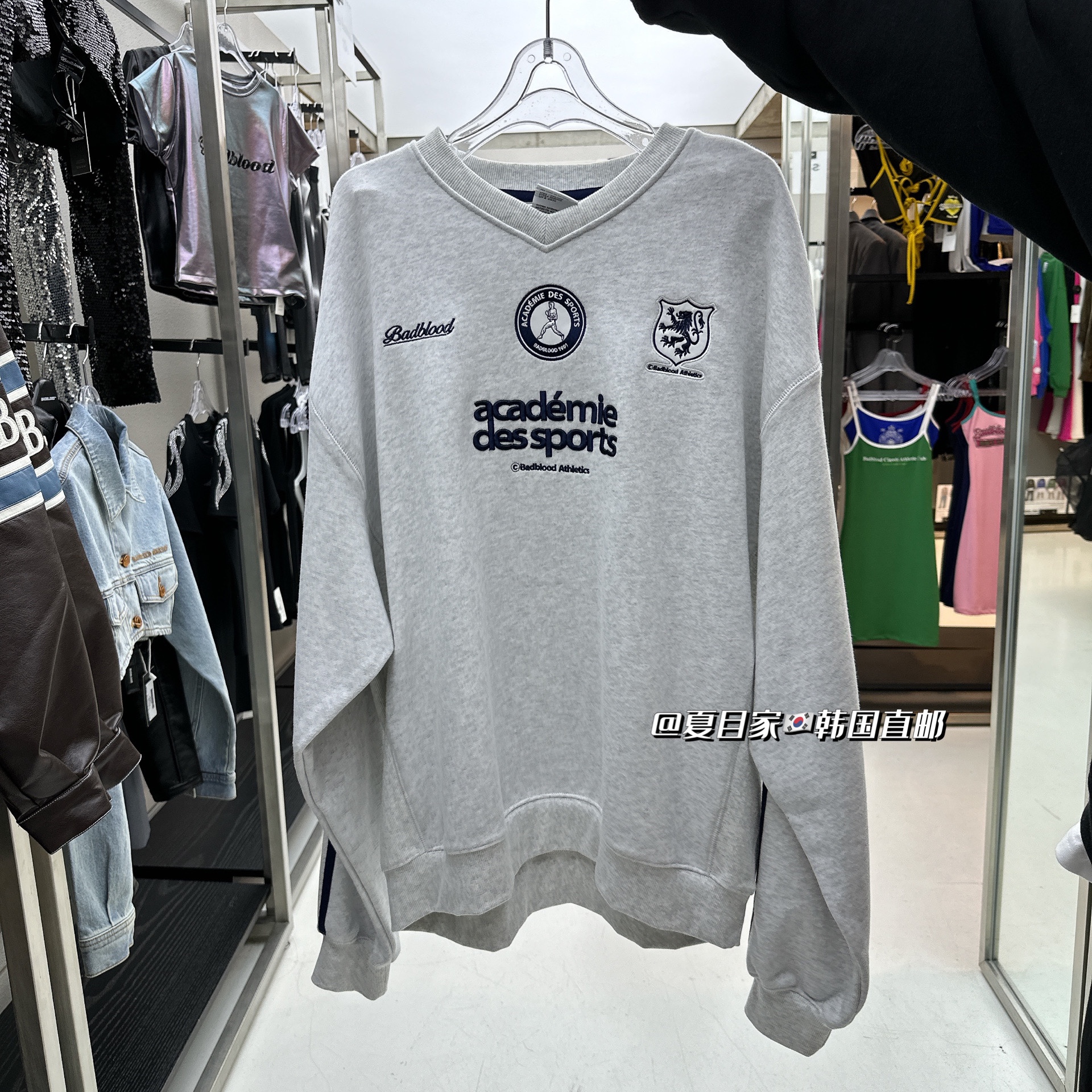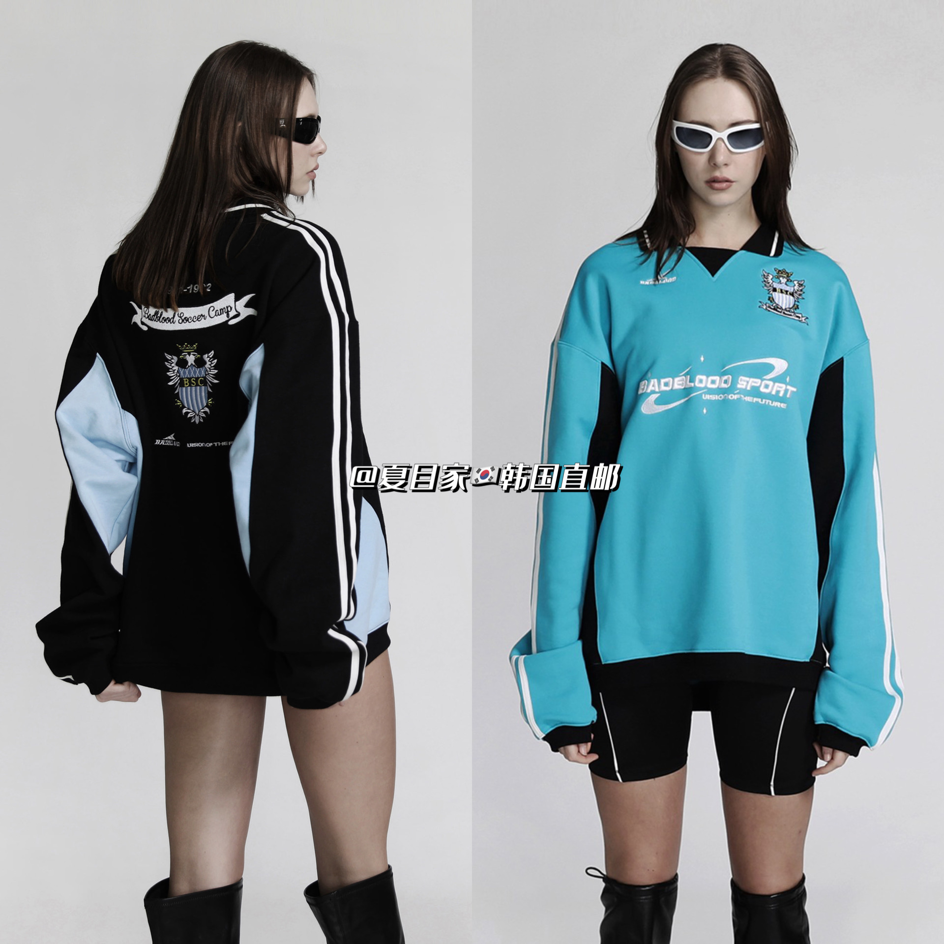 夏目家Badblood衛球衣拼接新款撞色復古刺繡女士上衣寬鬆刺繡秋冬