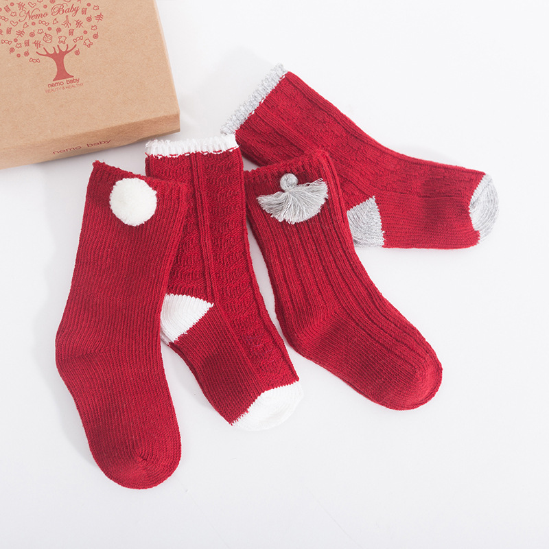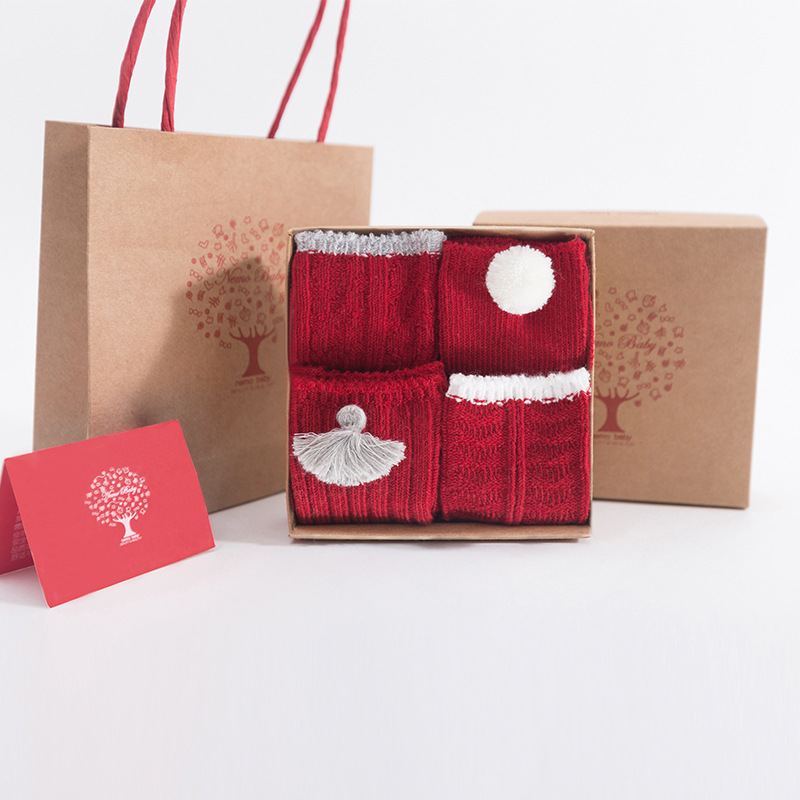 高端礼盒满月百天周岁送礼宝宝袜大红本命年加厚保暖儿童新年袜子