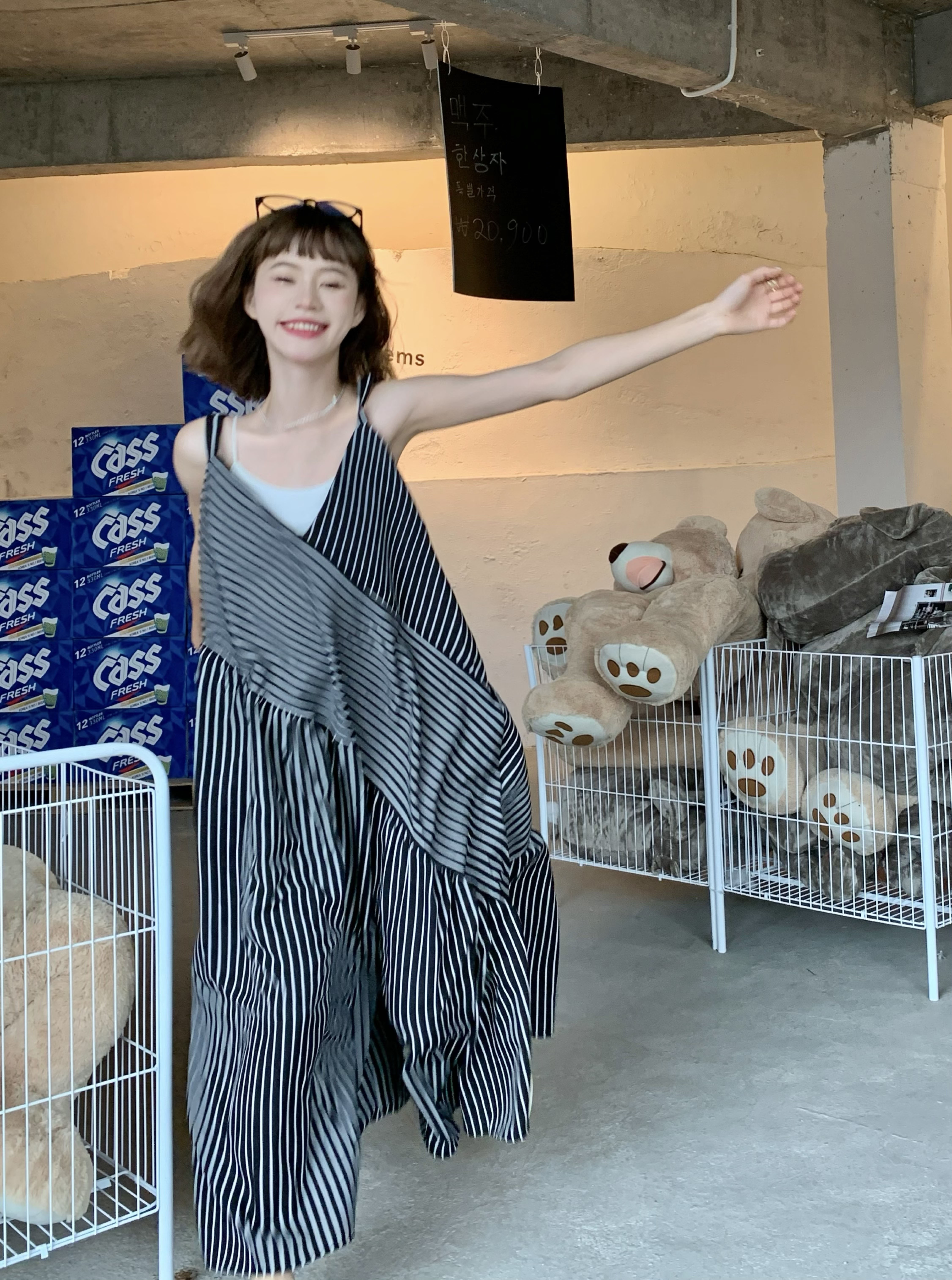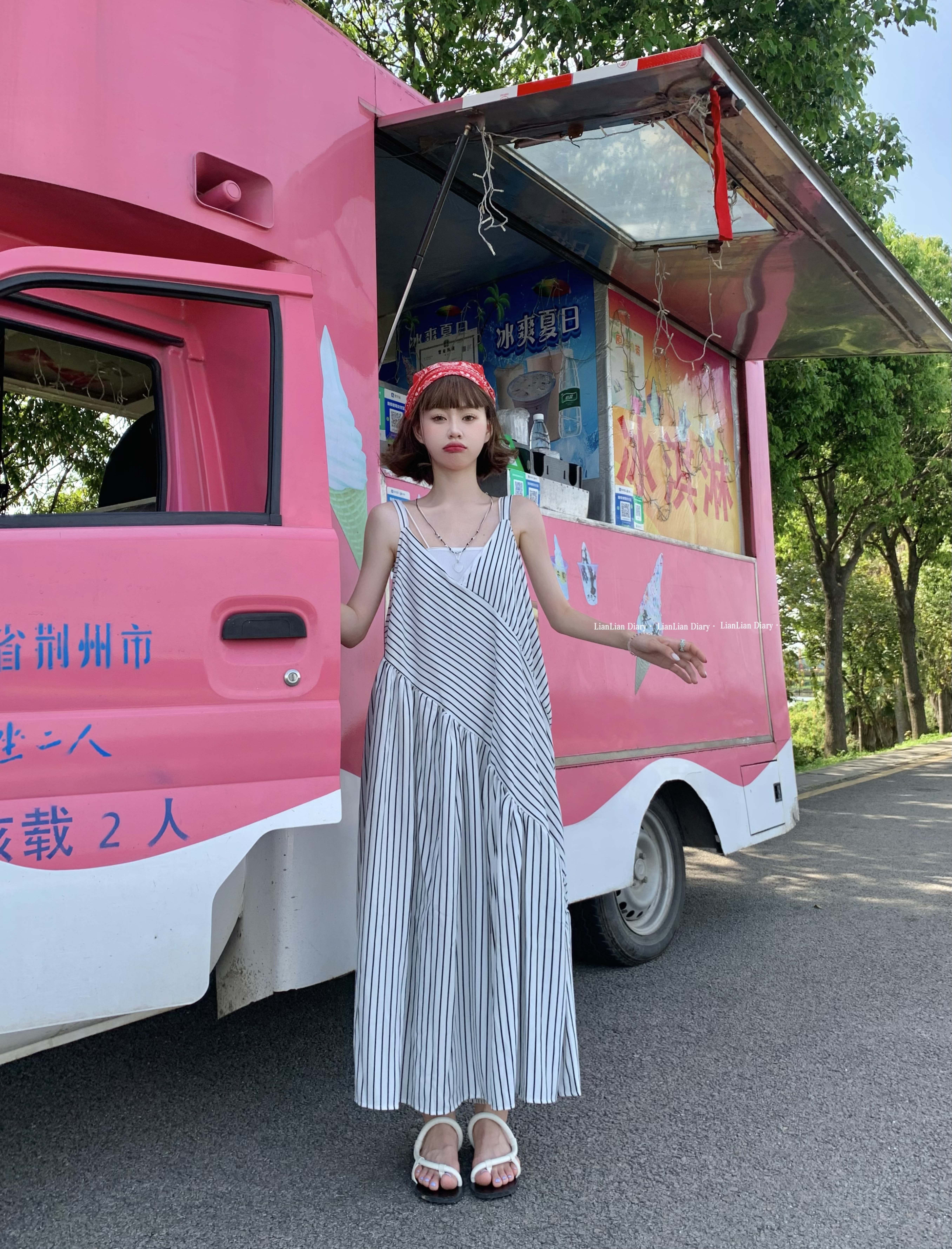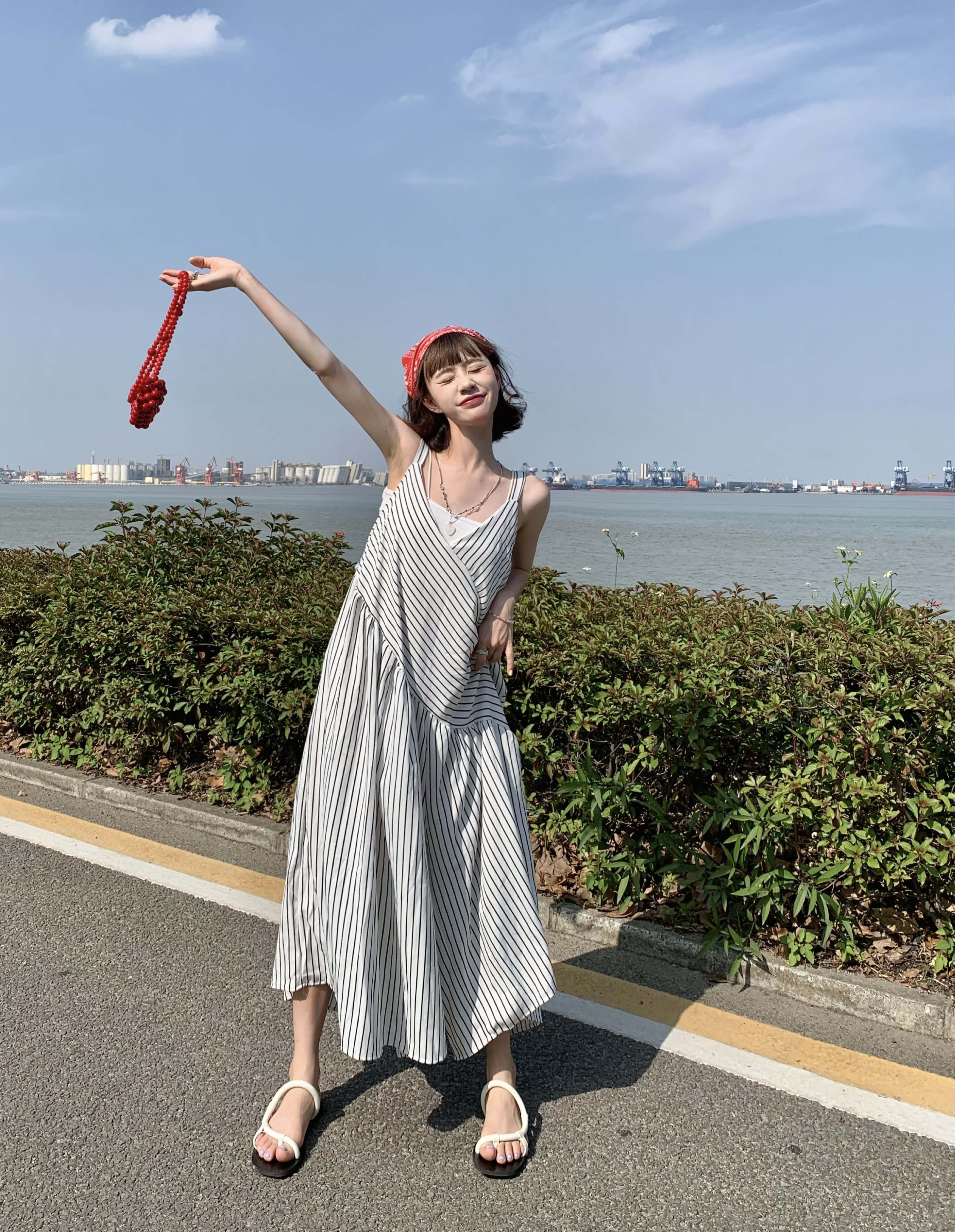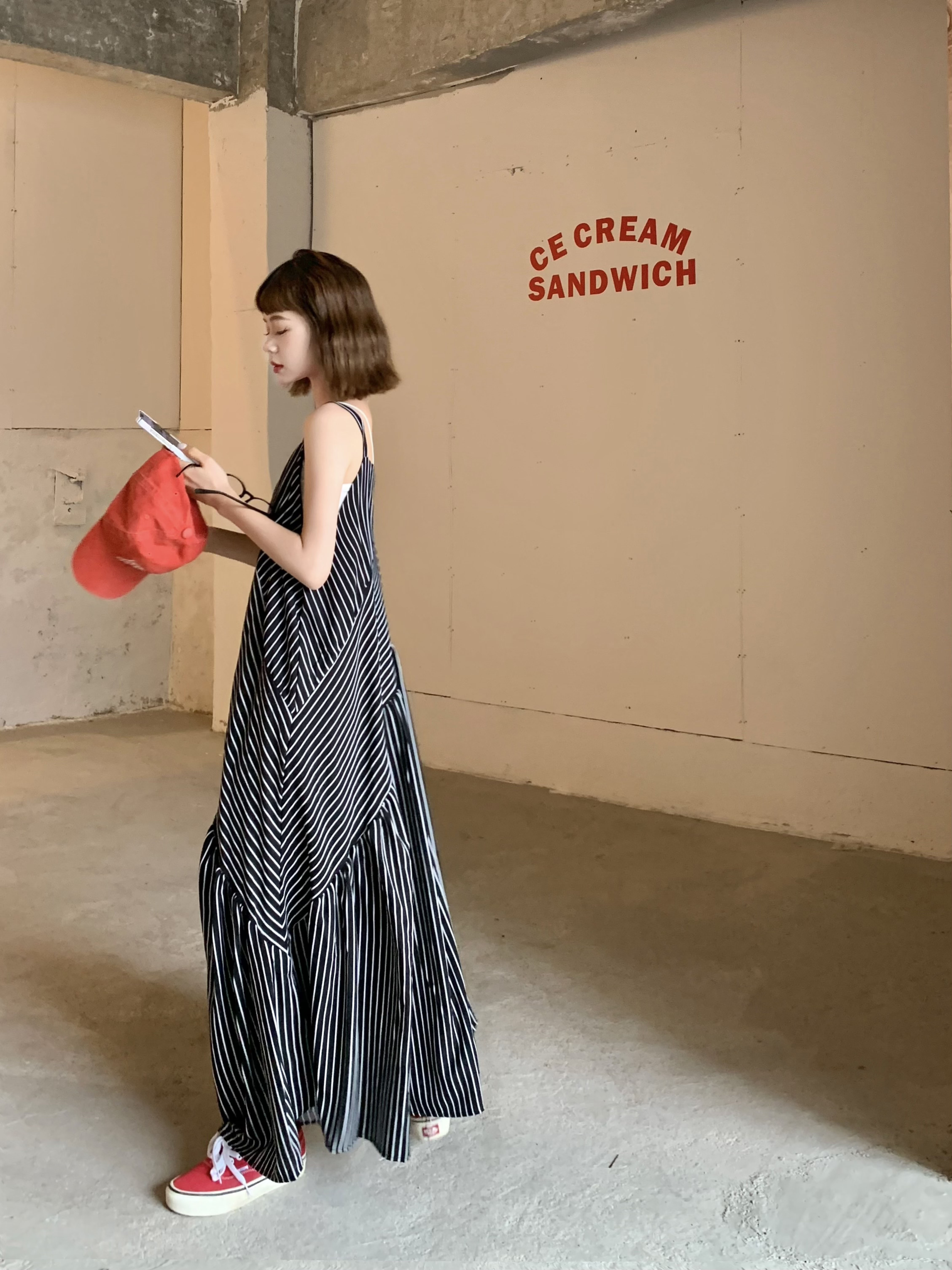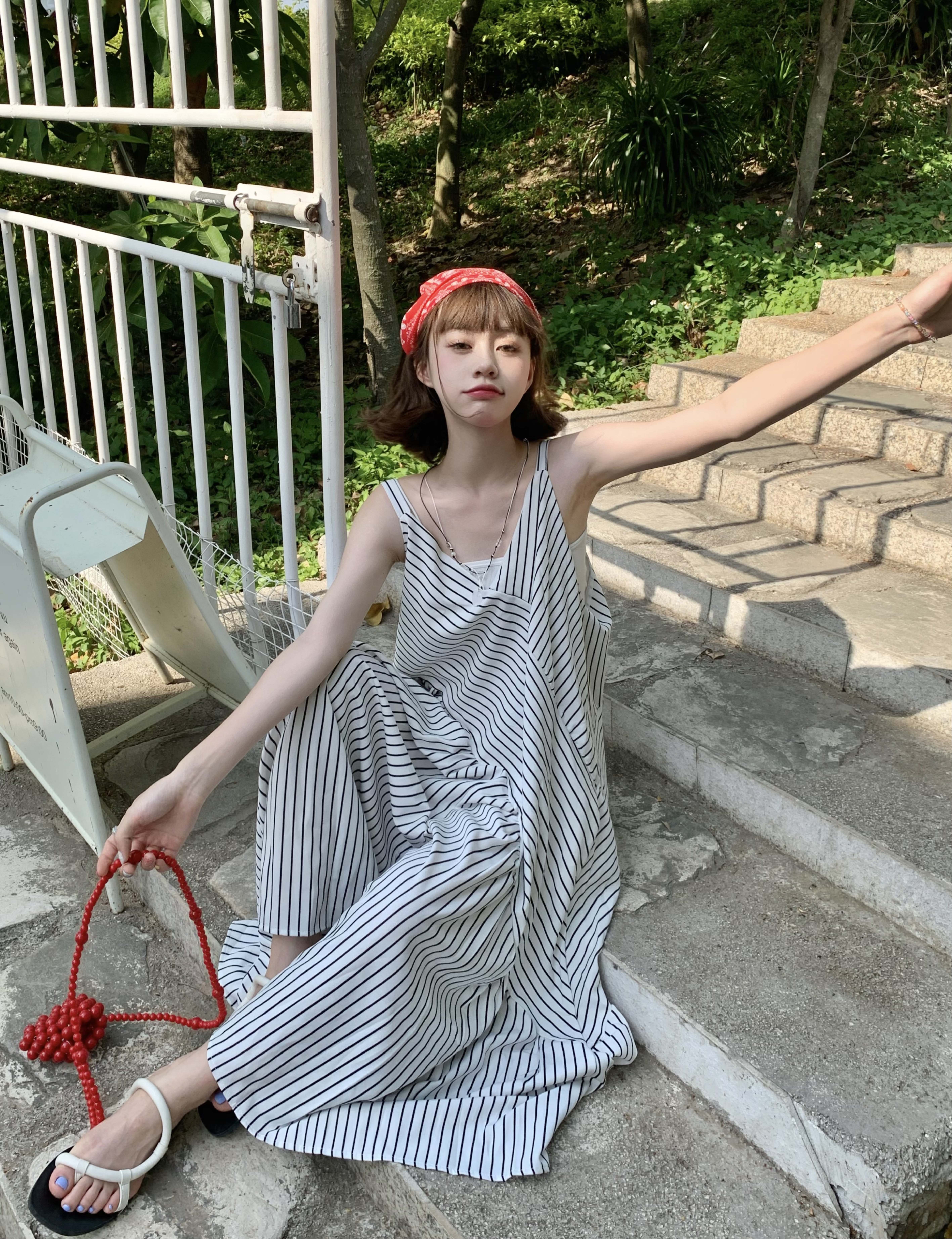 MZ原創/寬鬆休閒慵懶風oversize吊帶連身褲"女春夏條紋抱嬰袋闊腿褲