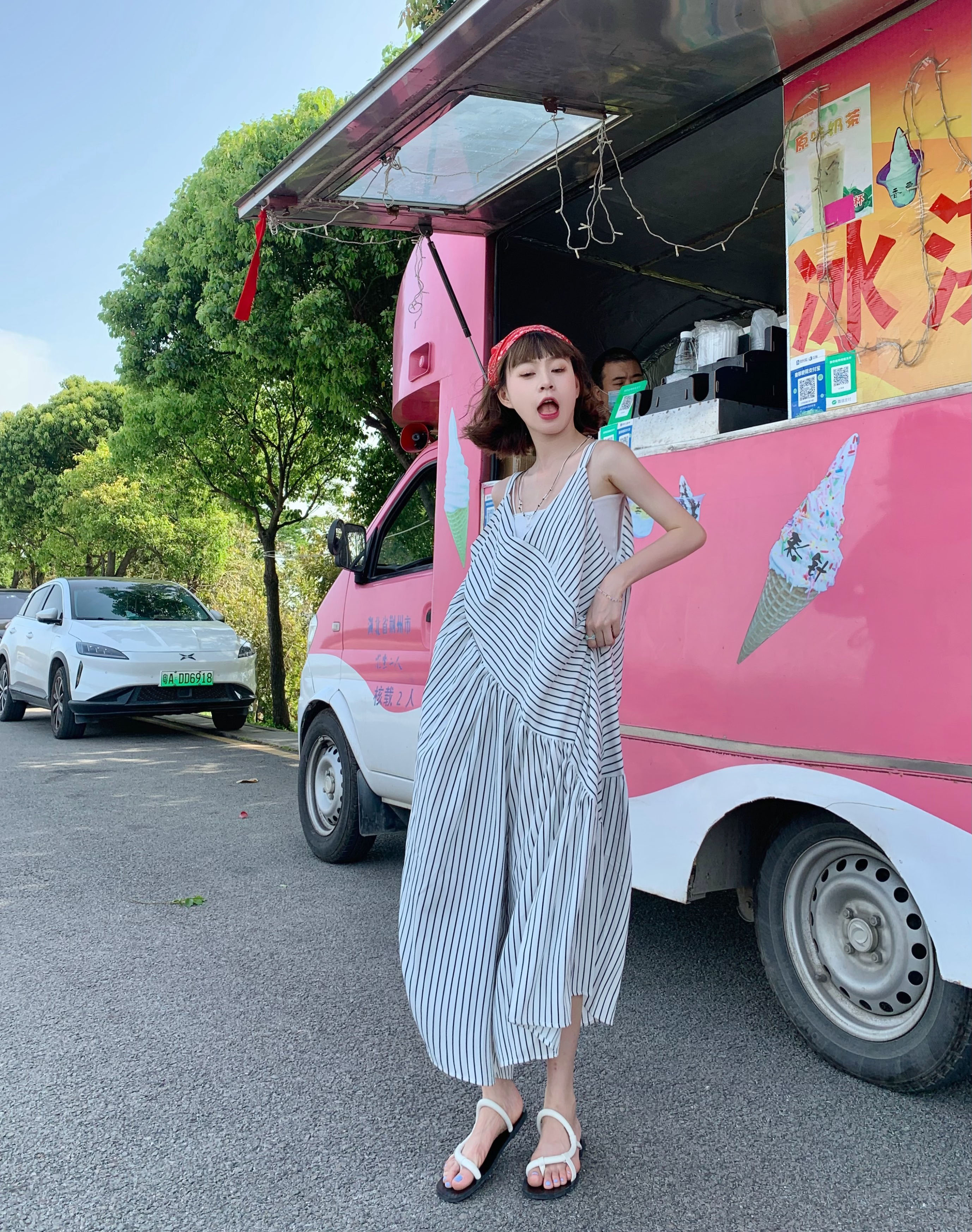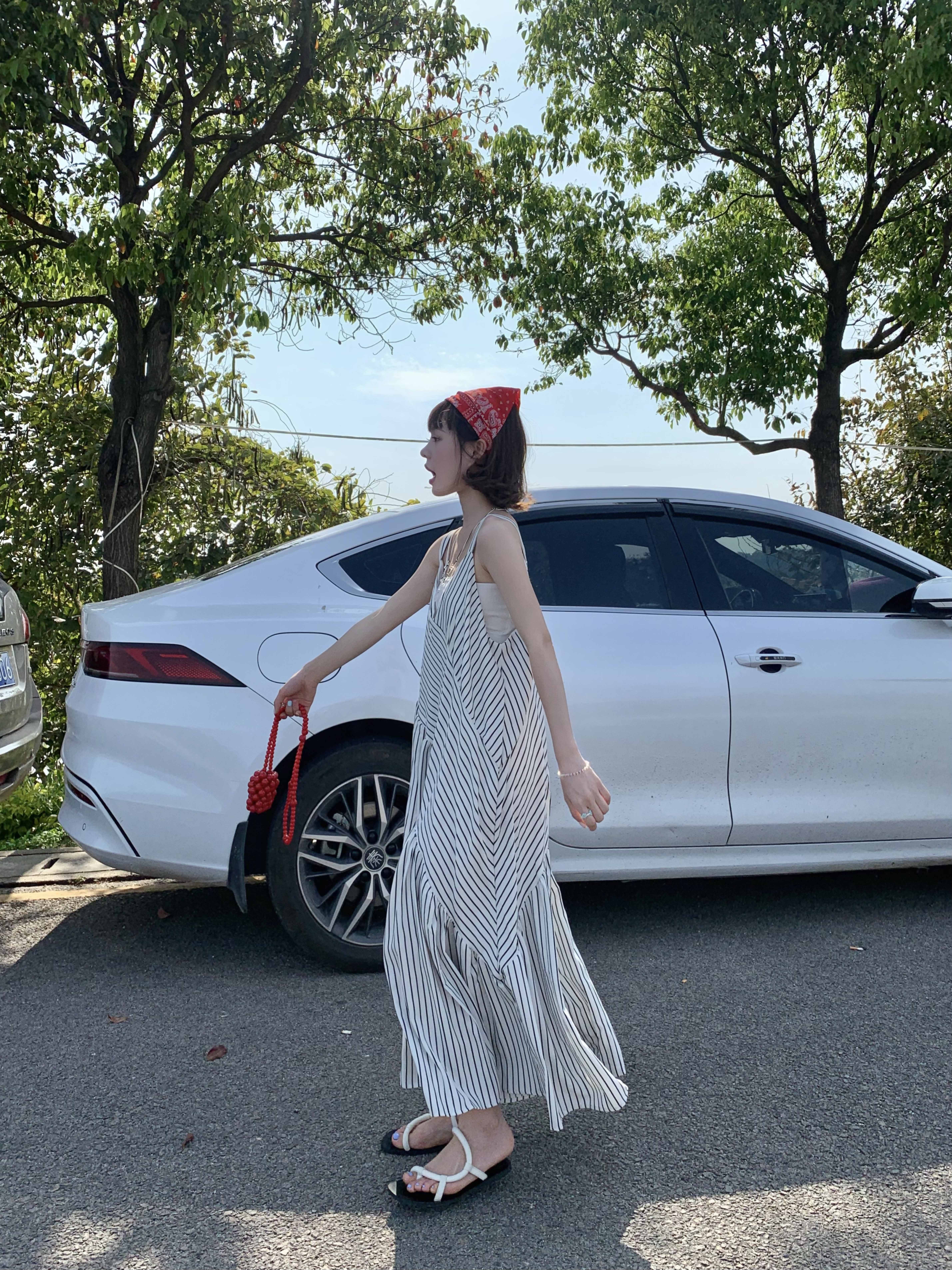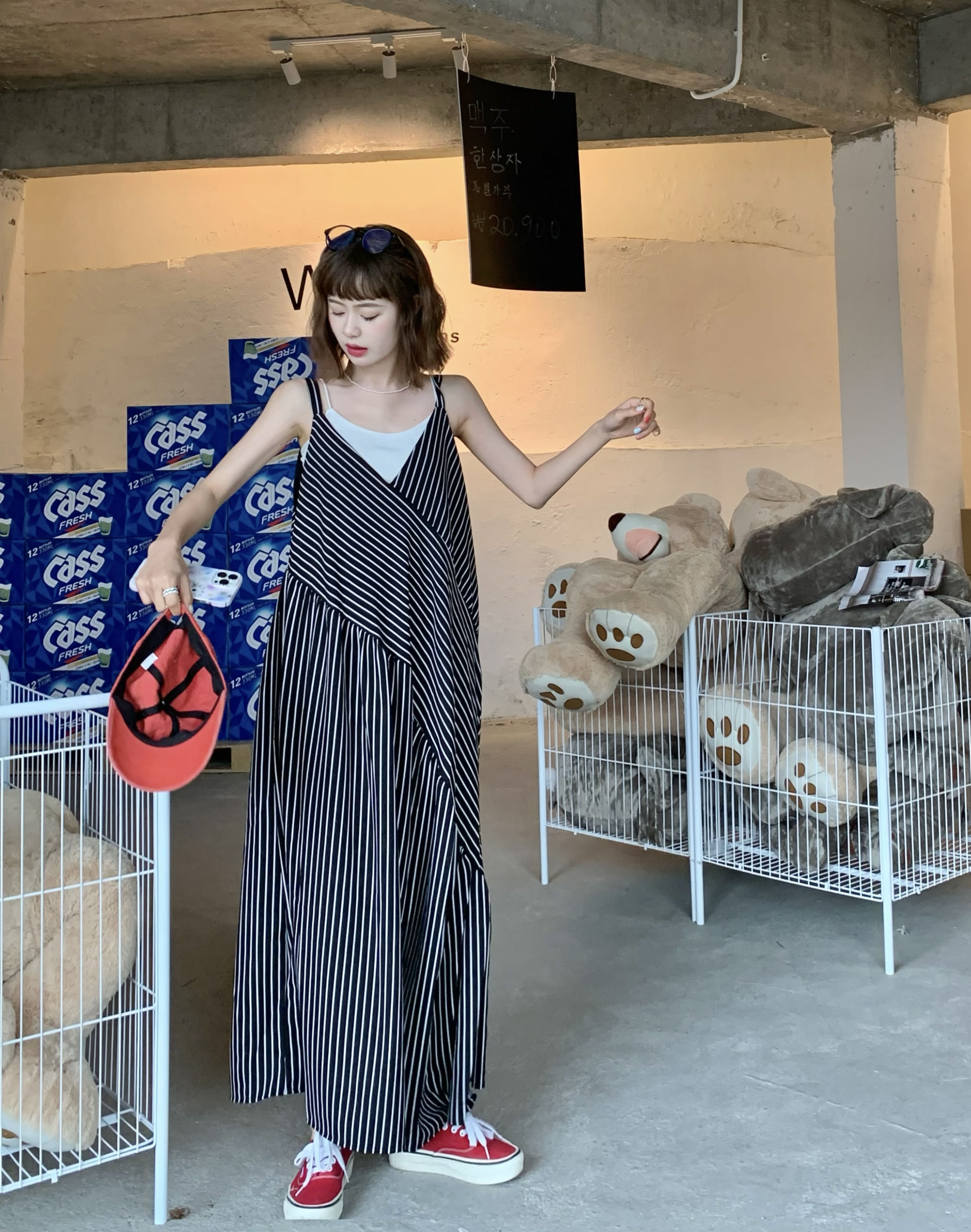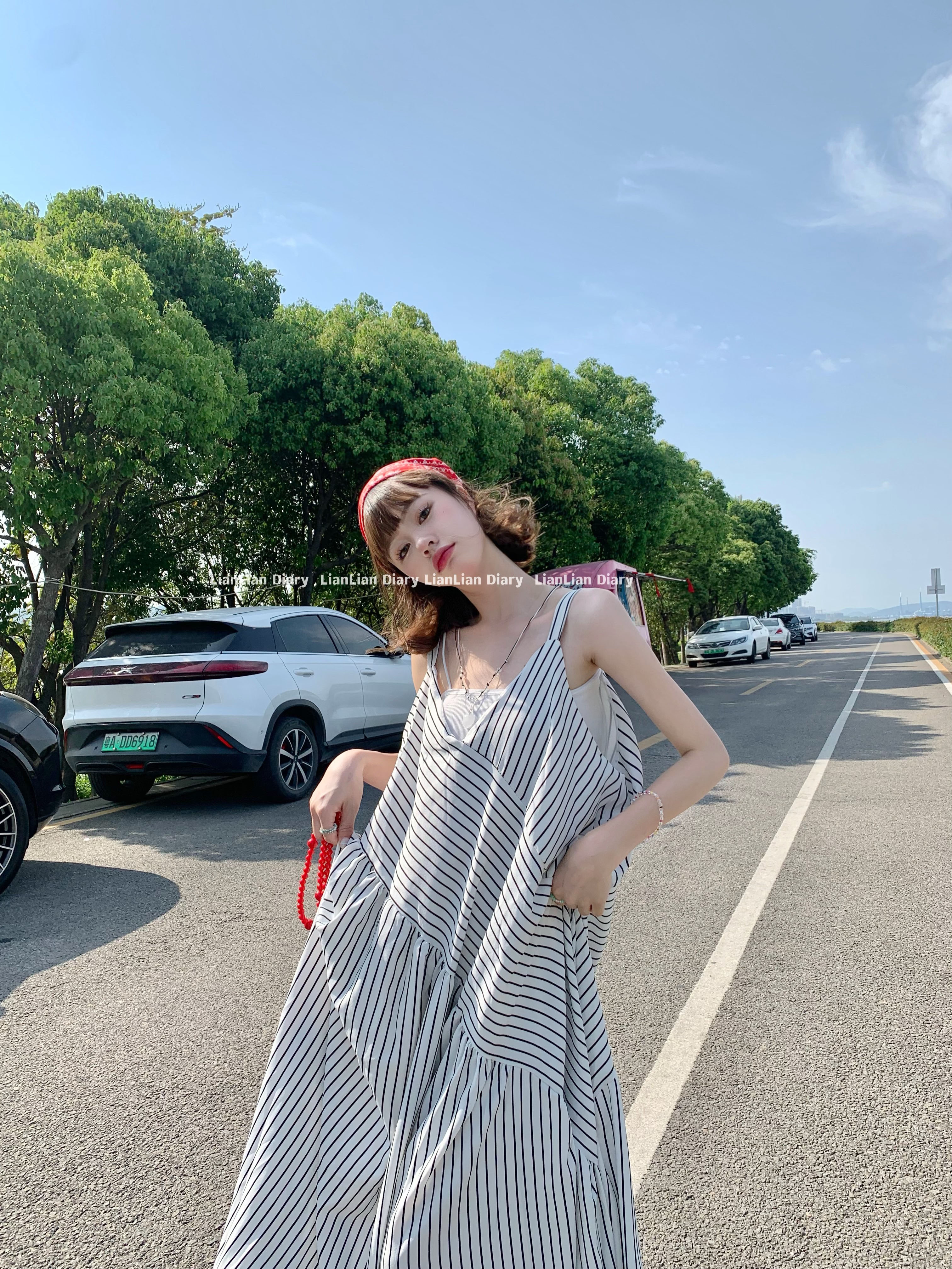 MZ原創/寬鬆休閒慵懶風oversize吊帶連身褲"女春夏條紋抱嬰袋闊腿褲