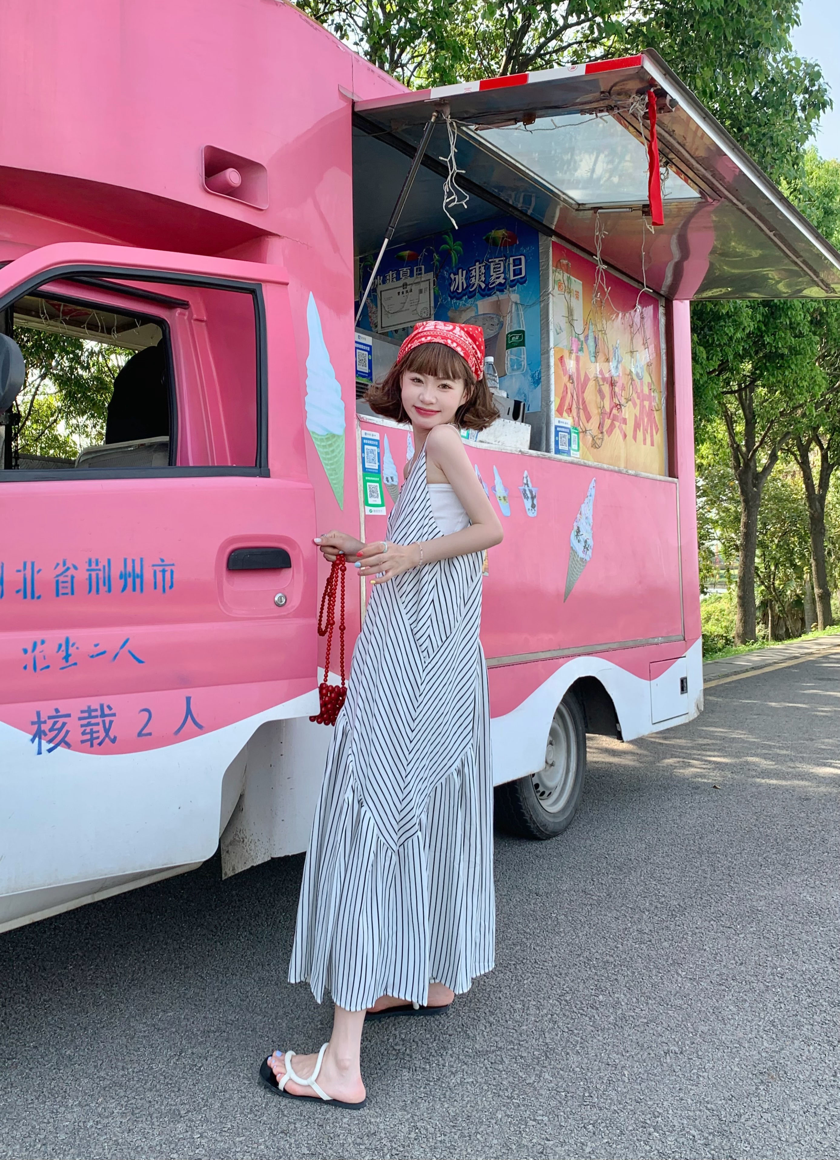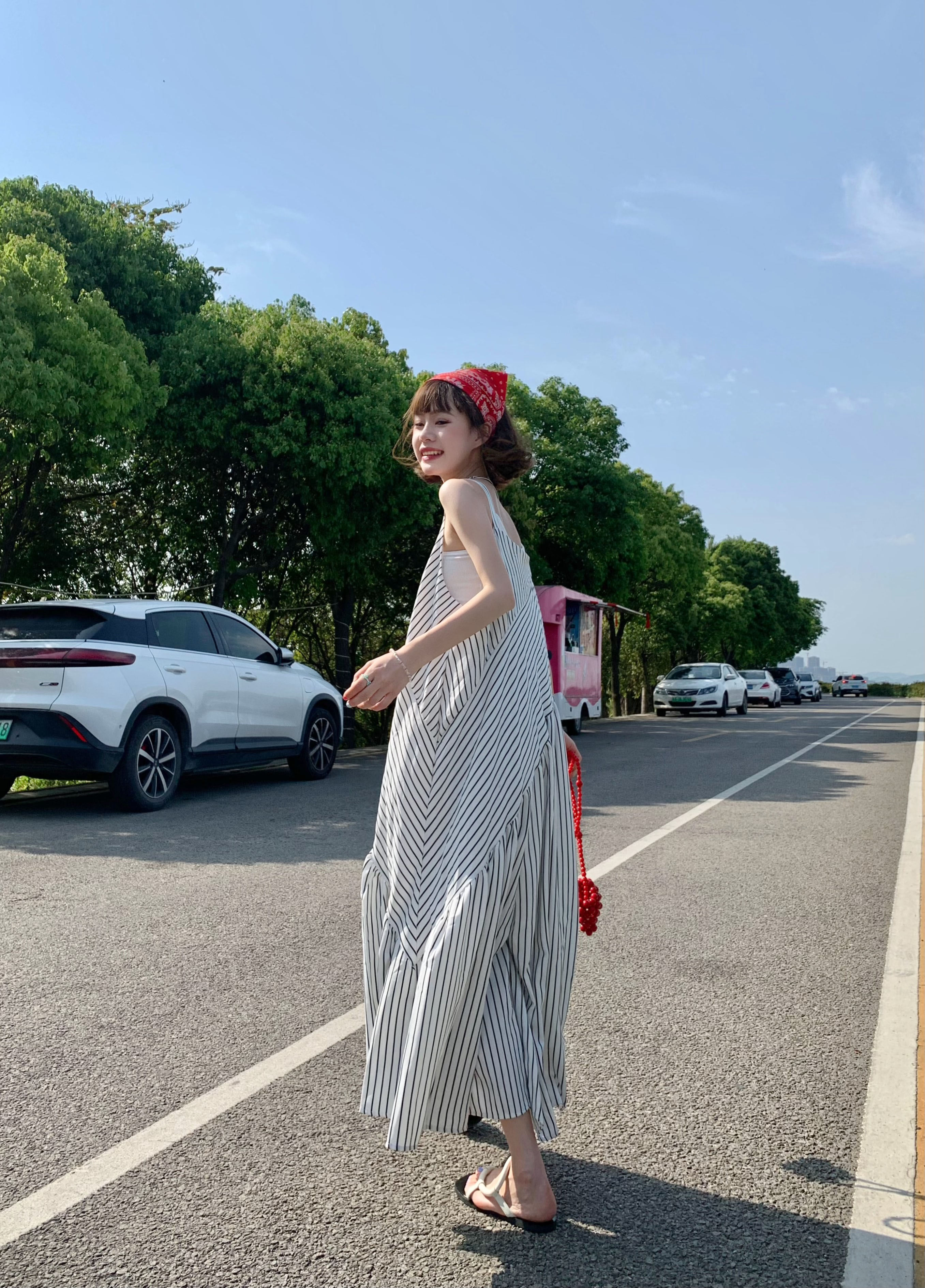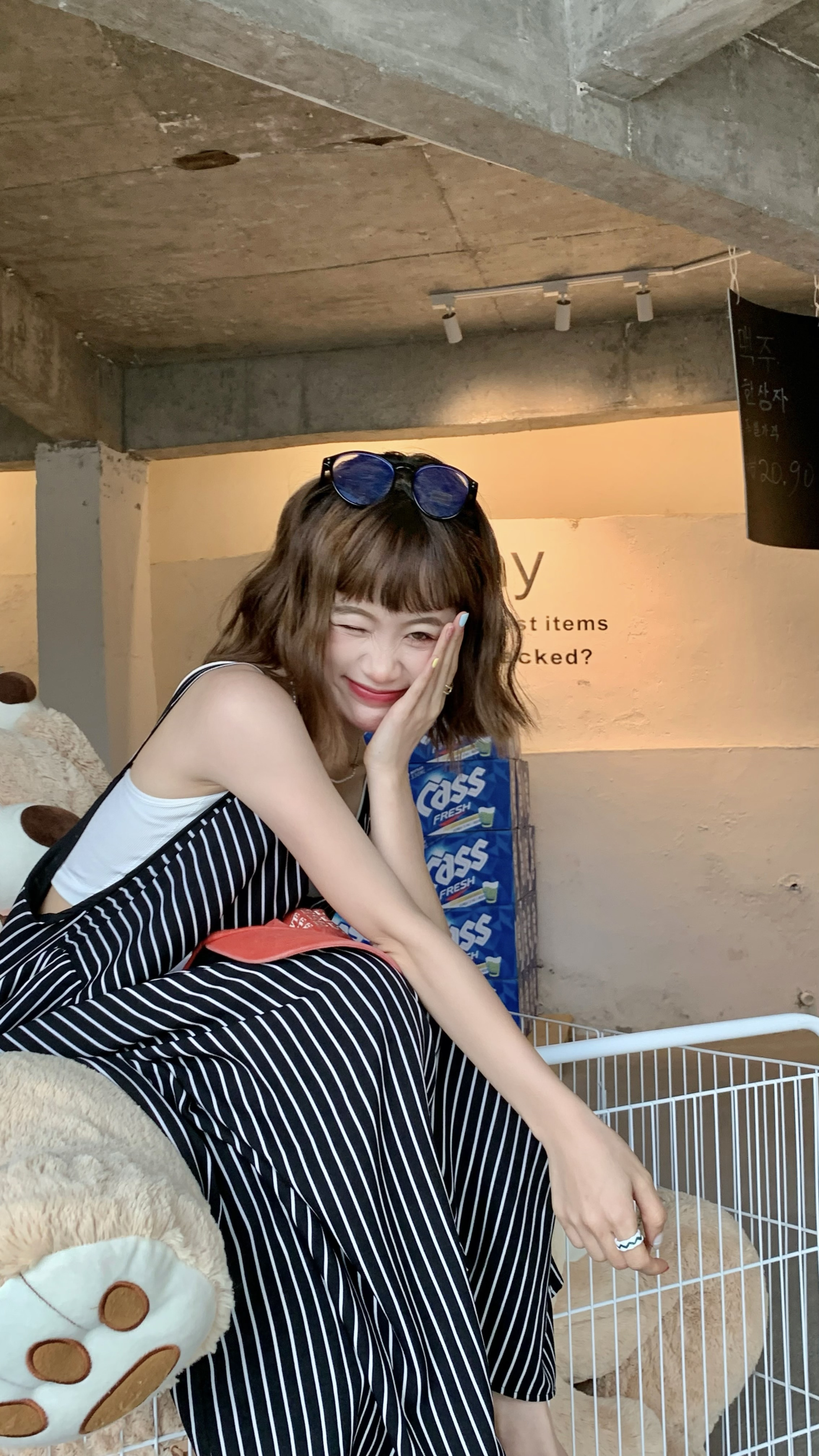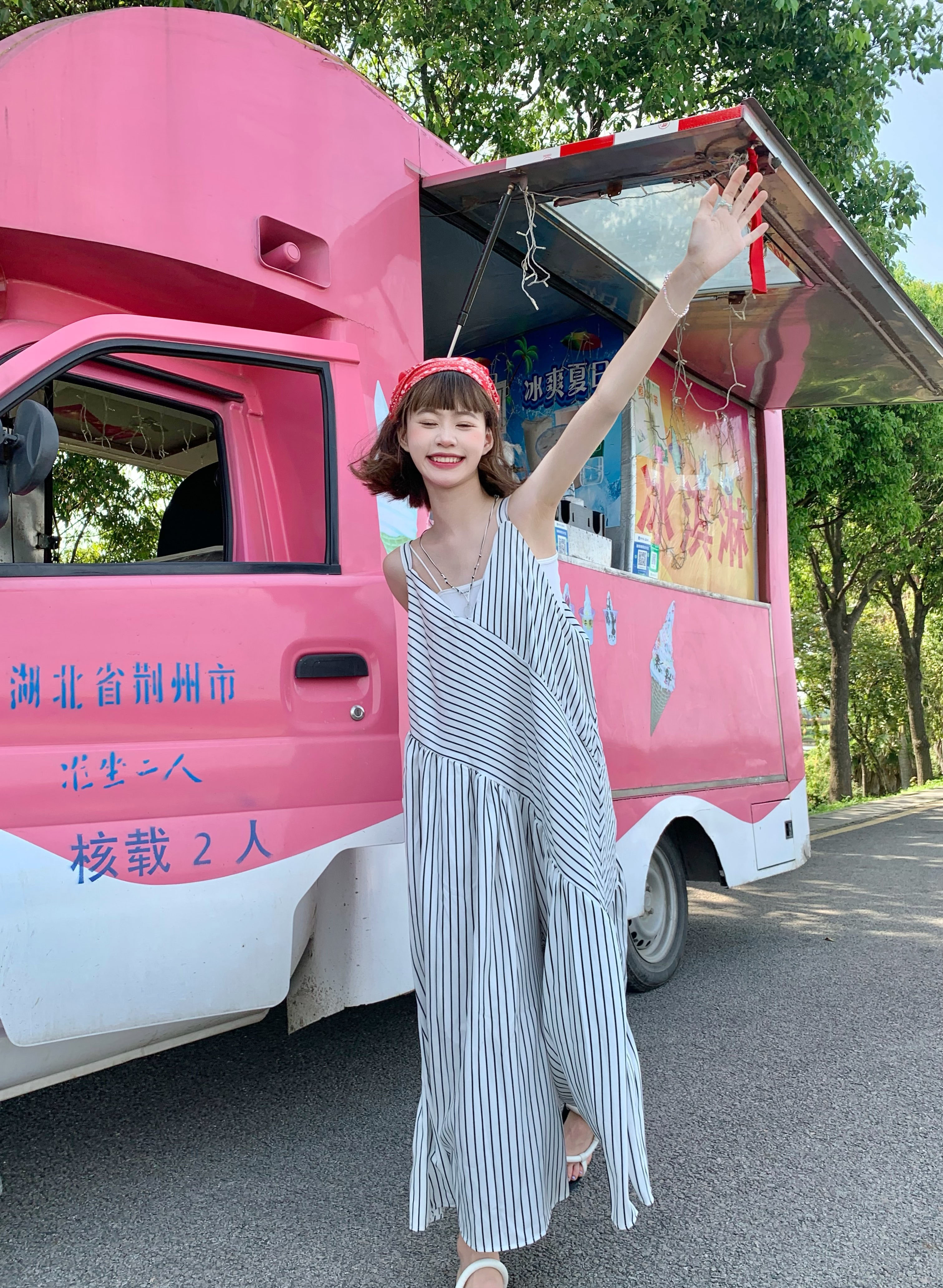 MZ原創/寬鬆休閒慵懶風oversize吊帶連身褲"女春夏條紋抱嬰袋闊腿褲